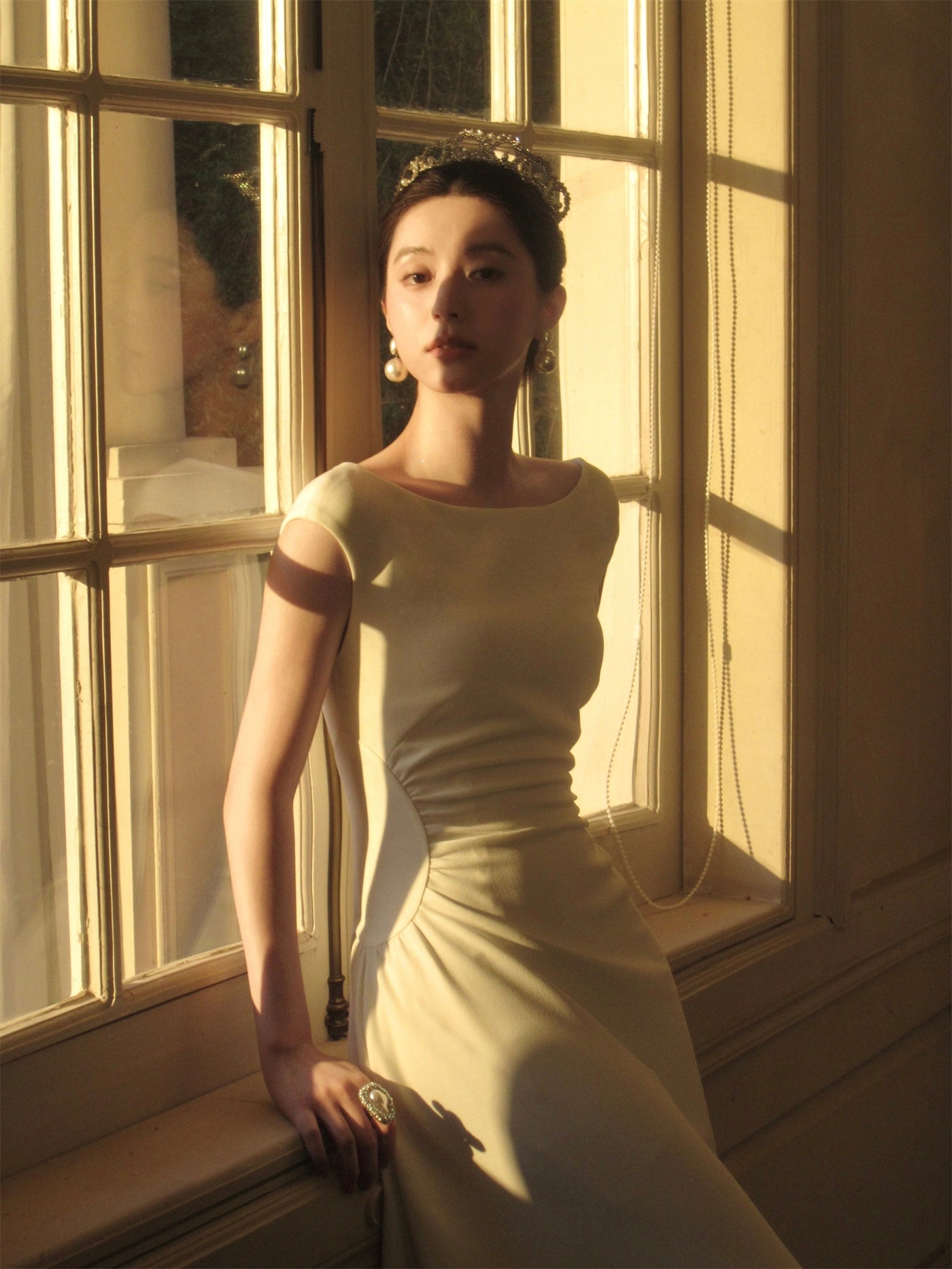 We designed ‘Darlene’ in two equally flattering silhouettes: a sleeveless version that highlights your neckline and shoulders with effortless minimalism, and a sculpted cap-sleeve option with a 15° angled cut and elevated shoulder rise that brings soft volume and graceful structure.