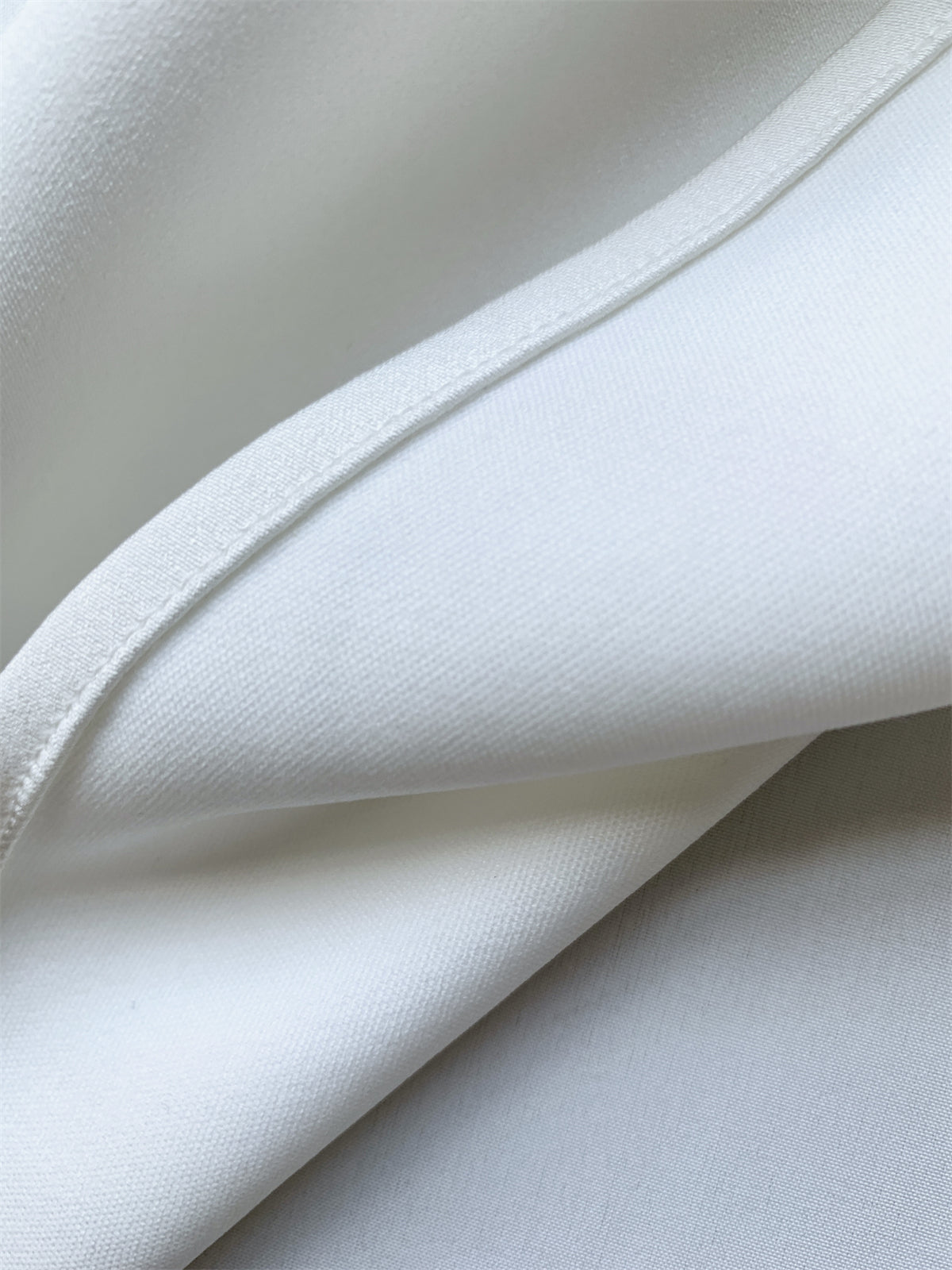 We crafted ‘Lindsay’ in a custom-developed high-black fabric that absorbs light like a dream — 30% deeper than standard black thanks to triple-dyed German matte yarns, reaching a rare 0.9-level depth. In daylight, it shimmers like velvet satin; under direct light, it stays pure, inky, and bold — no gray cast in sight.