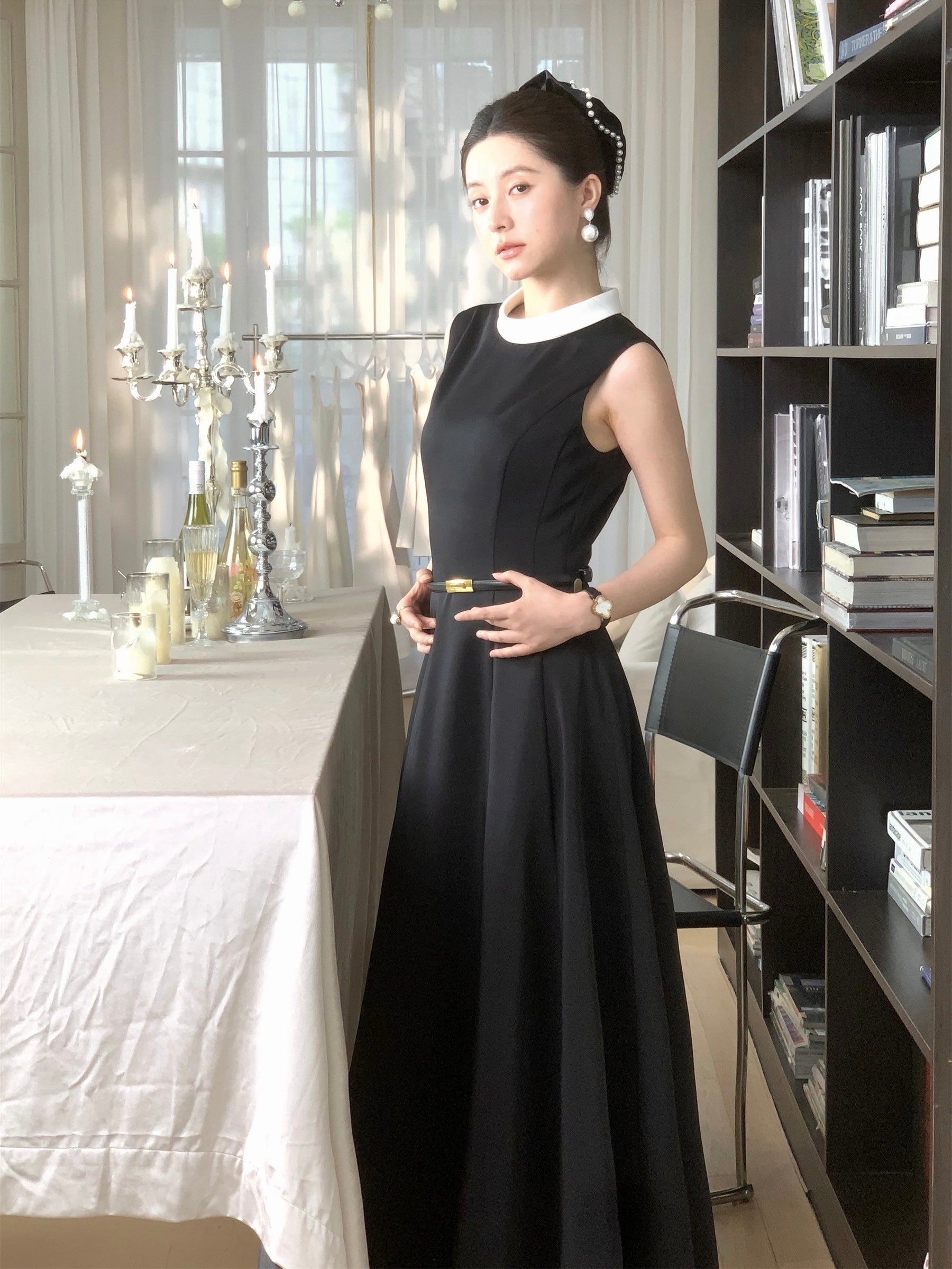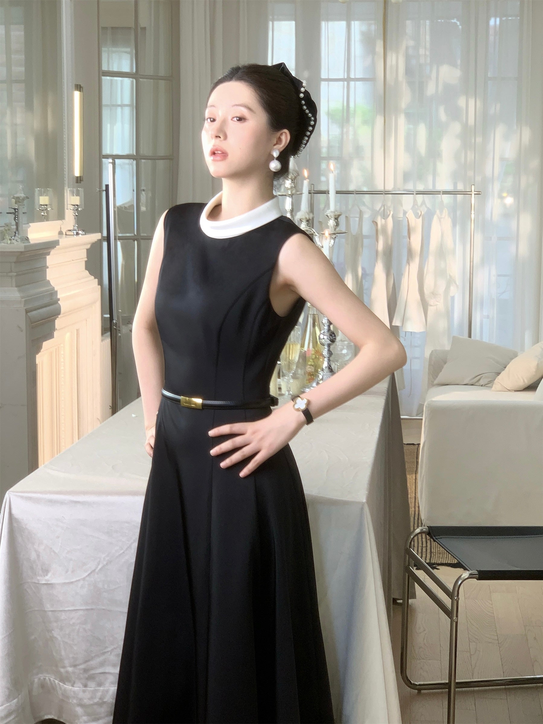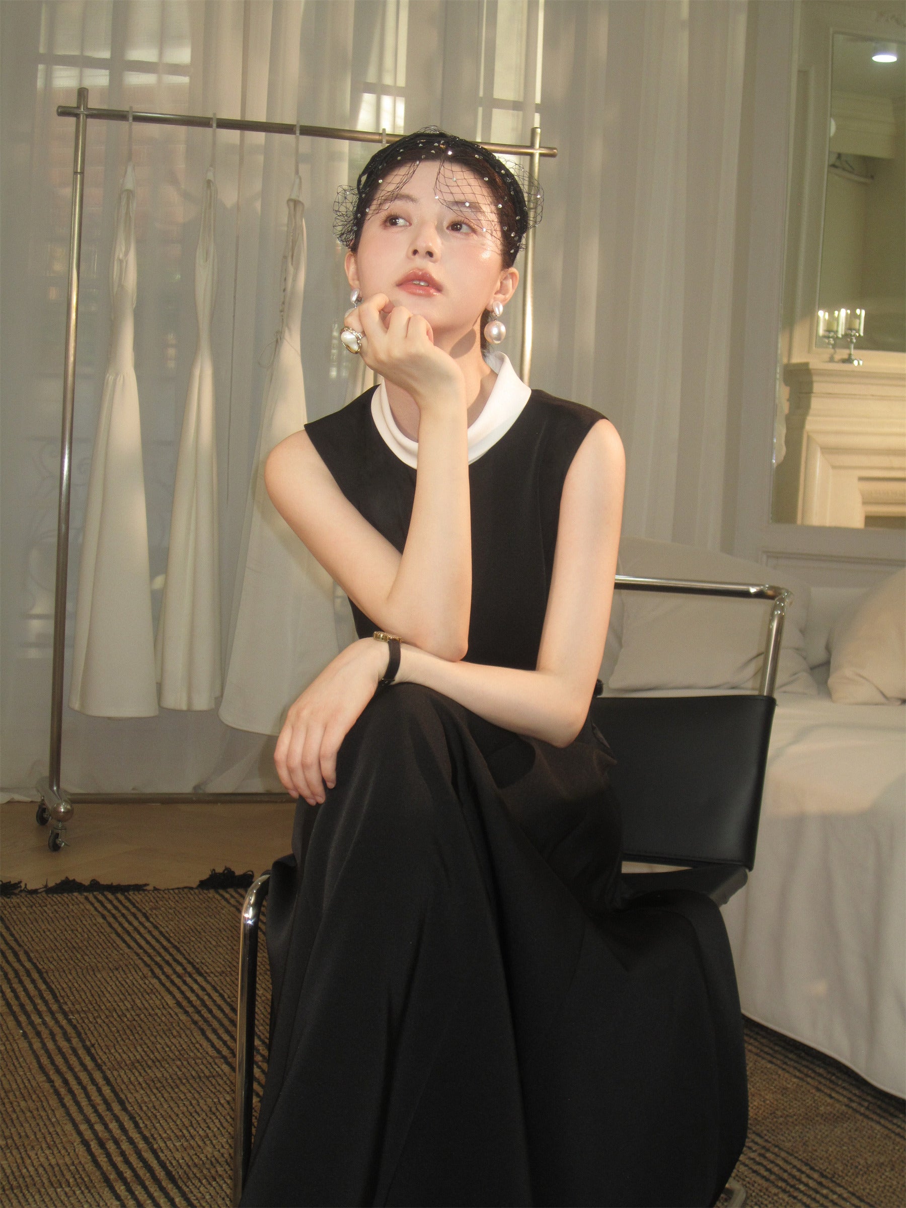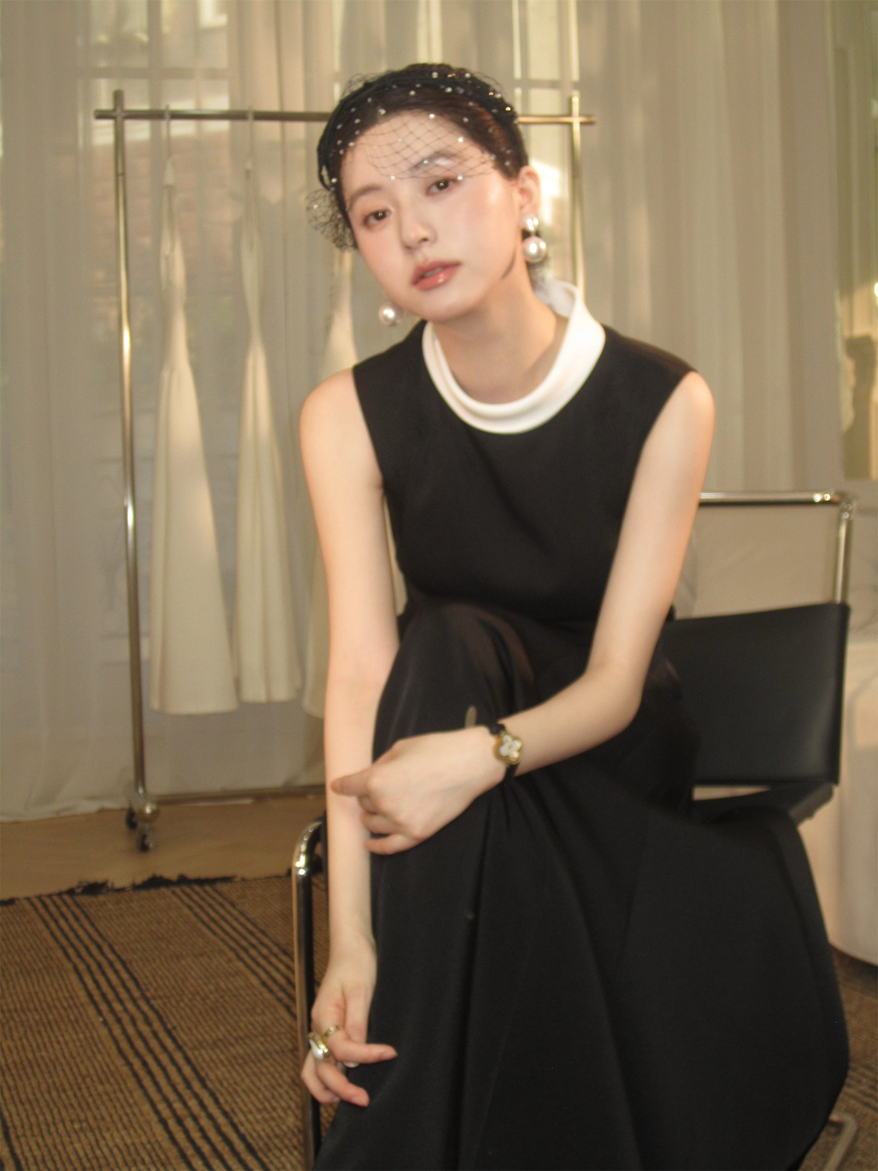 Our 50D stretch-fused construction gives the dress a crisp, sculpted silhouette. The neat mini collar sits right at the perfect point between collarbone and jawline — a subtle nod to Breakfast at Tiffany’s and the timeless poise of Audrey. And that clean A-line skirt? It flares from the waist in a precise, smooth sweep, with hidden dart shaping that subtly smooths the tummy. We didn’t forget practicality either — the concealed zipper makes dressing effortless.
