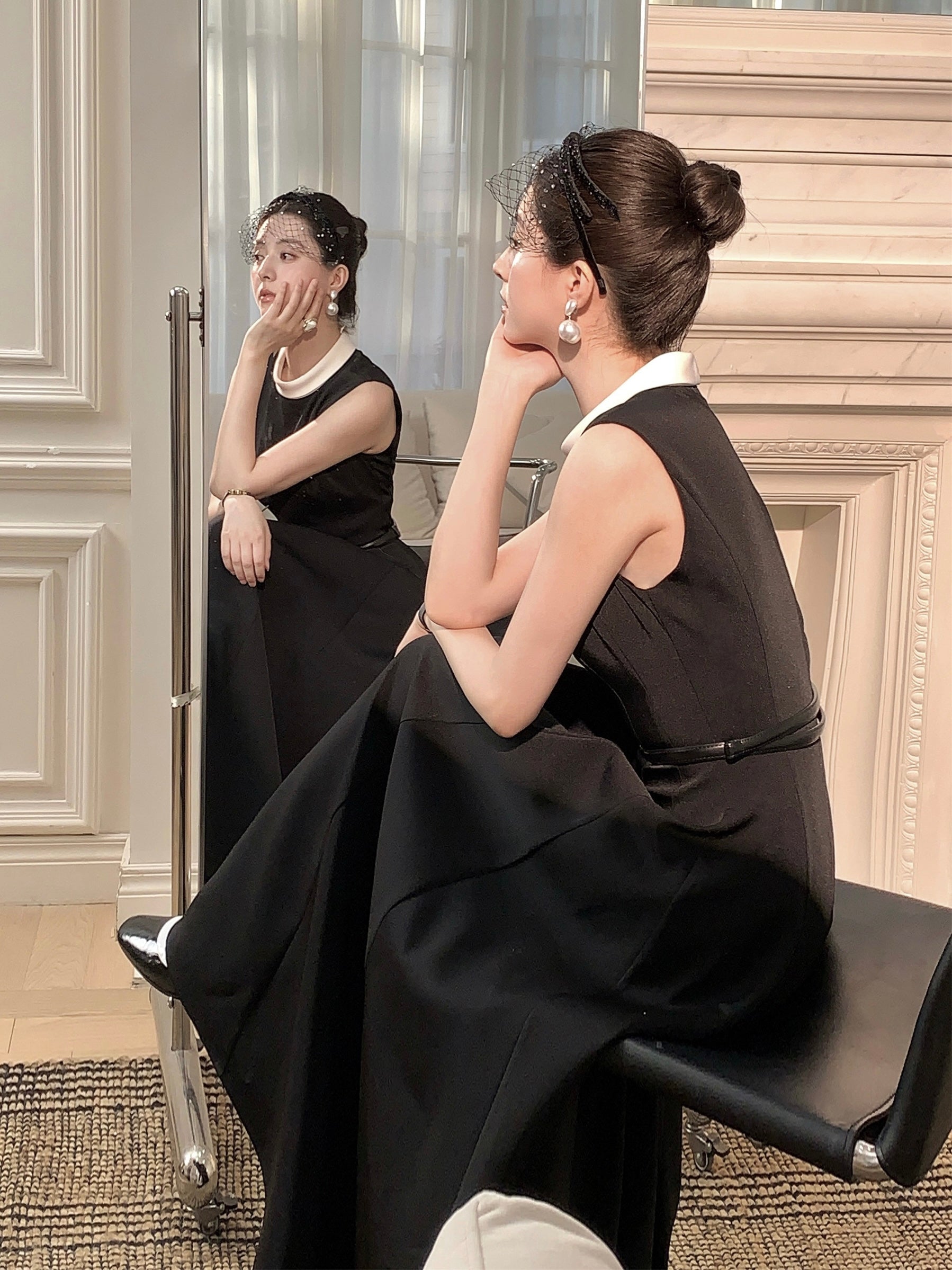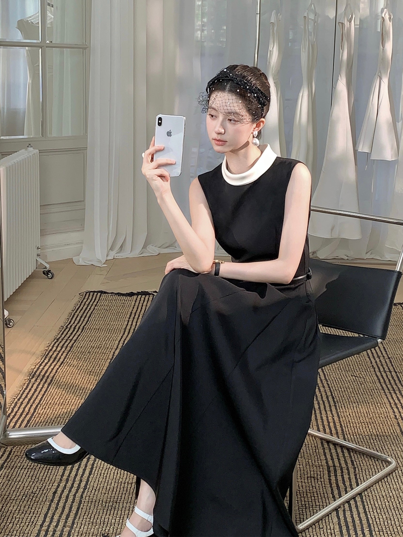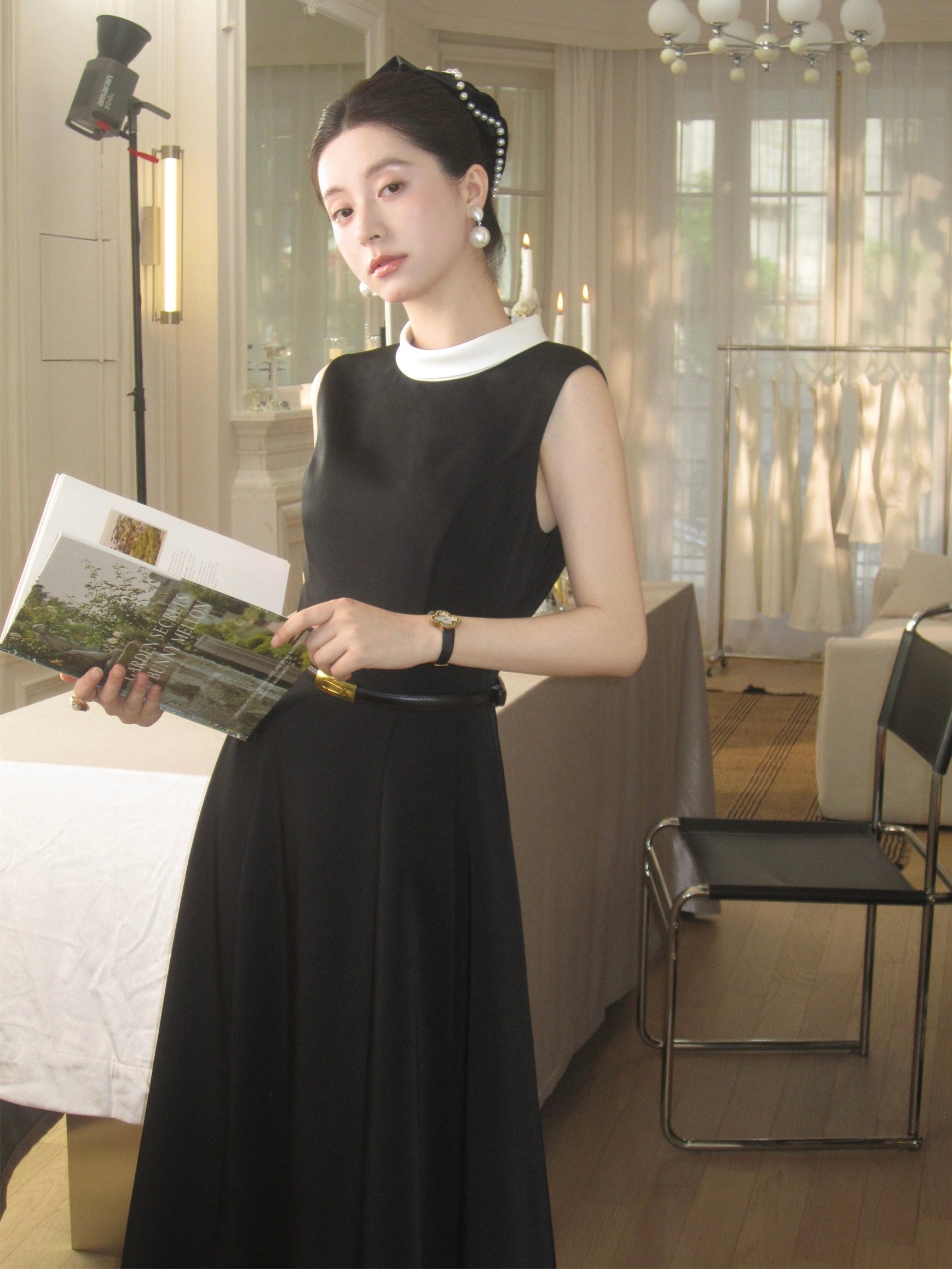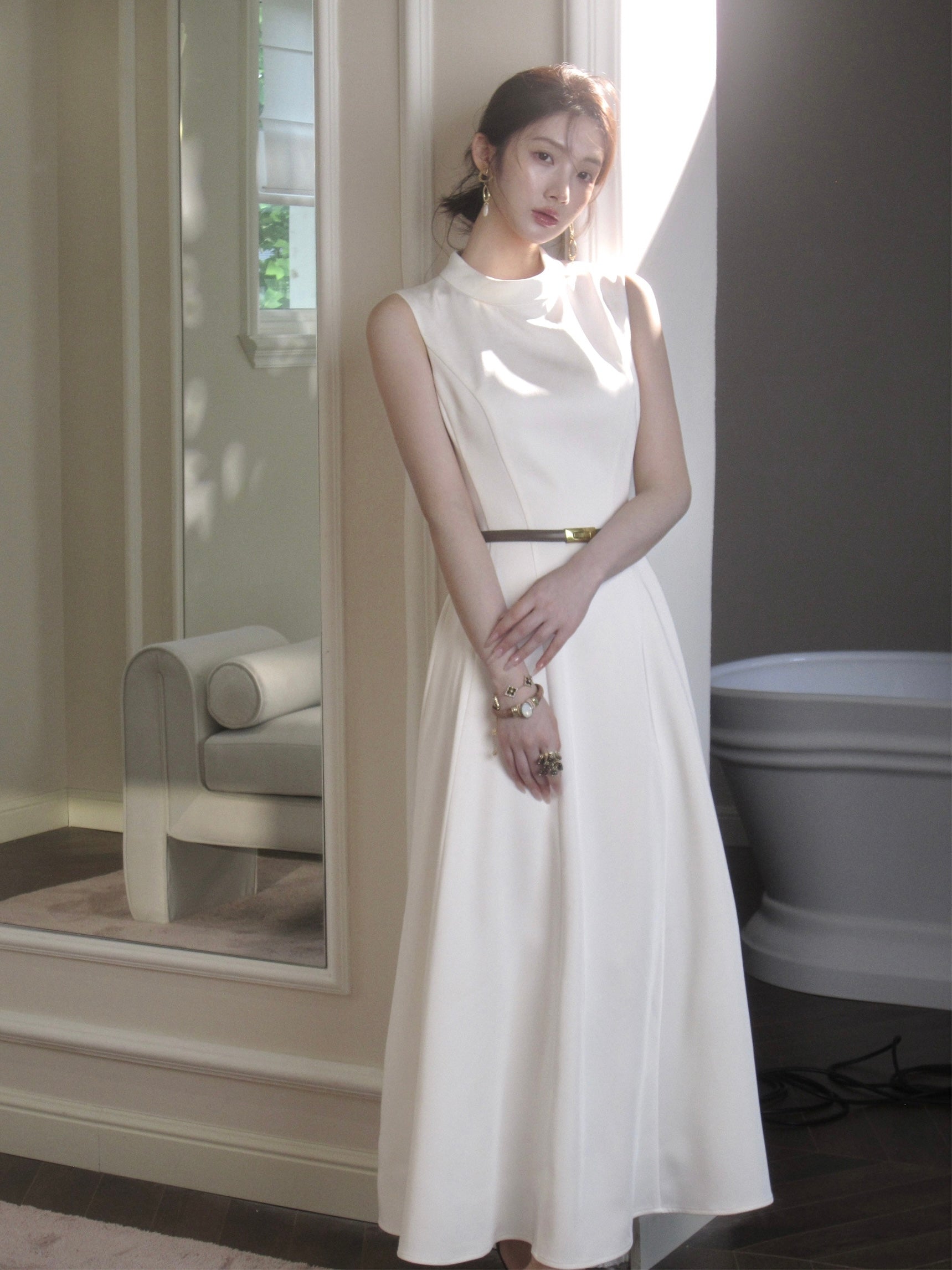 Our 50D stretch-fused construction gives the dress a crisp, sculpted silhouette. The neat mini collar sits right at the perfect point between collarbone and jawline — a subtle nod to Breakfast at Tiffany’s and the timeless poise of Audrey. And that clean A-line skirt? It flares from the waist in a precise, smooth sweep, with hidden dart shaping that subtly smooths the tummy. We didn’t forget practicality either — the concealed zipper makes dressing effortless.