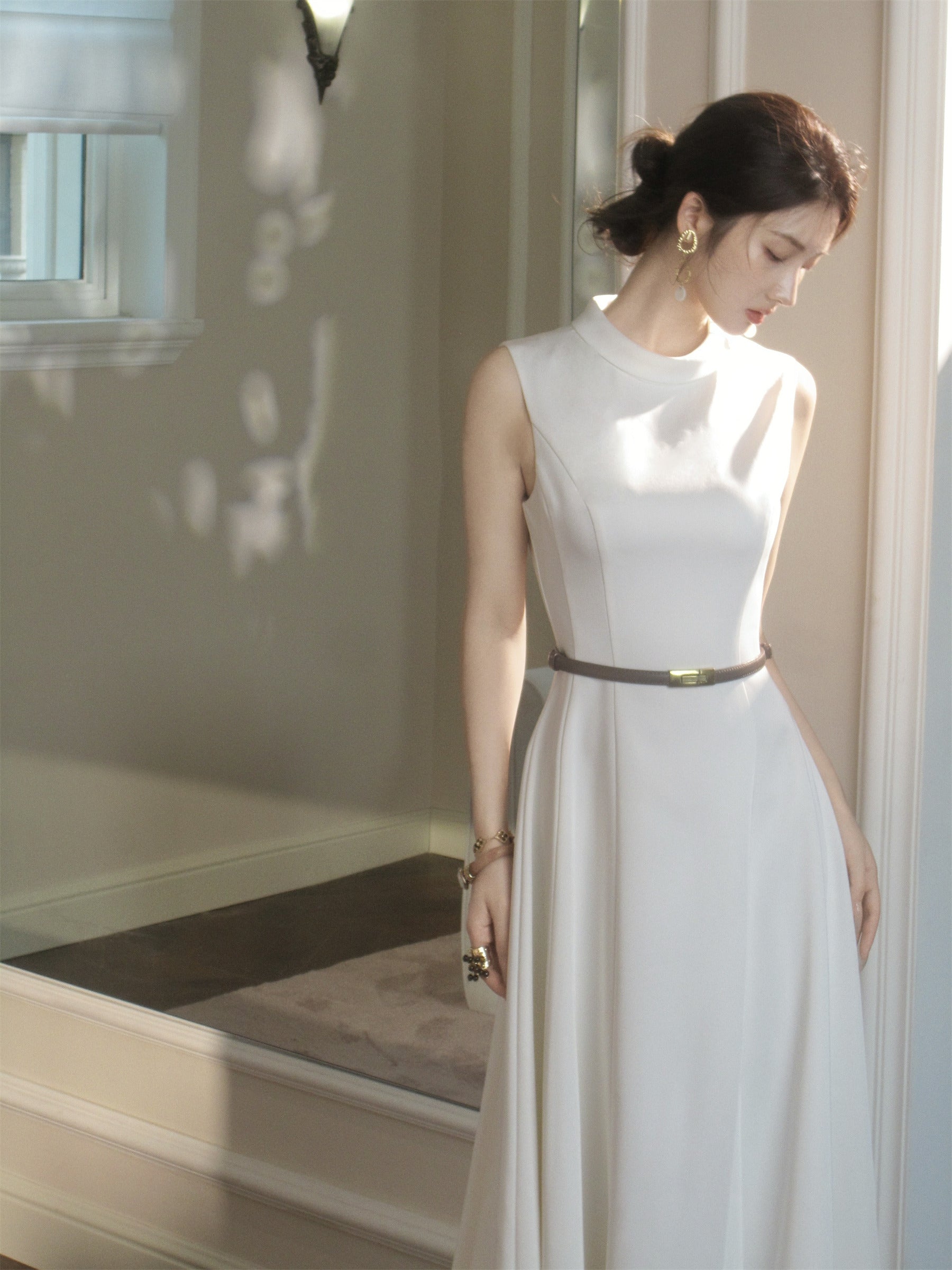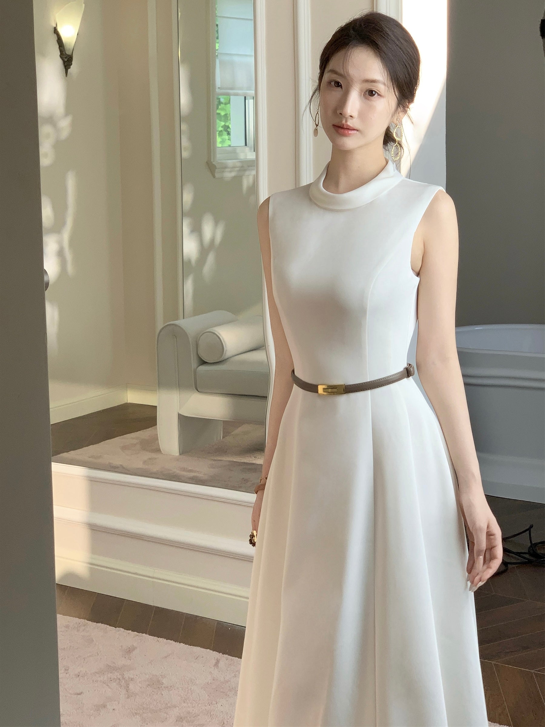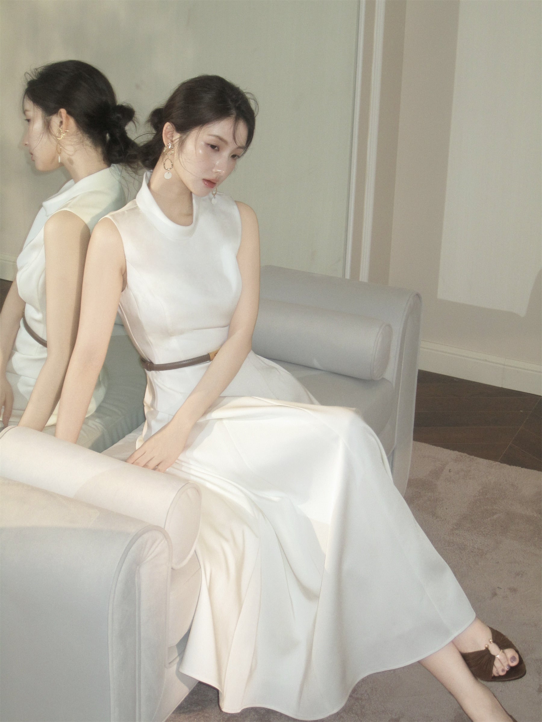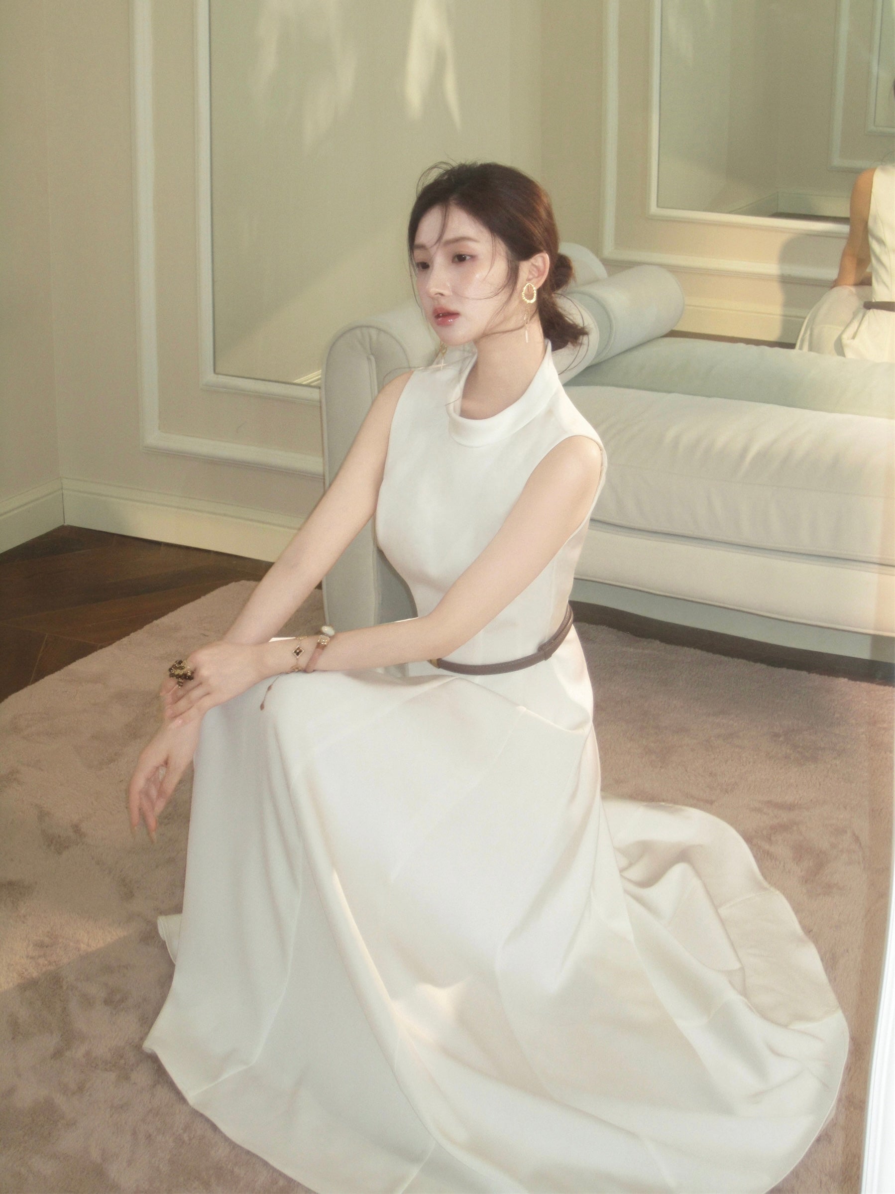 Our 50D stretch-fused construction gives the dress a crisp, sculpted silhouette. The neat mini collar sits right at the perfect point between collarbone and jawline — a subtle nod to Breakfast at Tiffany’s and the timeless poise of Audrey. And that clean A-line skirt? It flares from the waist in a precise, smooth sweep, with hidden dart shaping that subtly smooths the tummy. We didn’t forget practicality either — the concealed zipper makes dressing effortless.