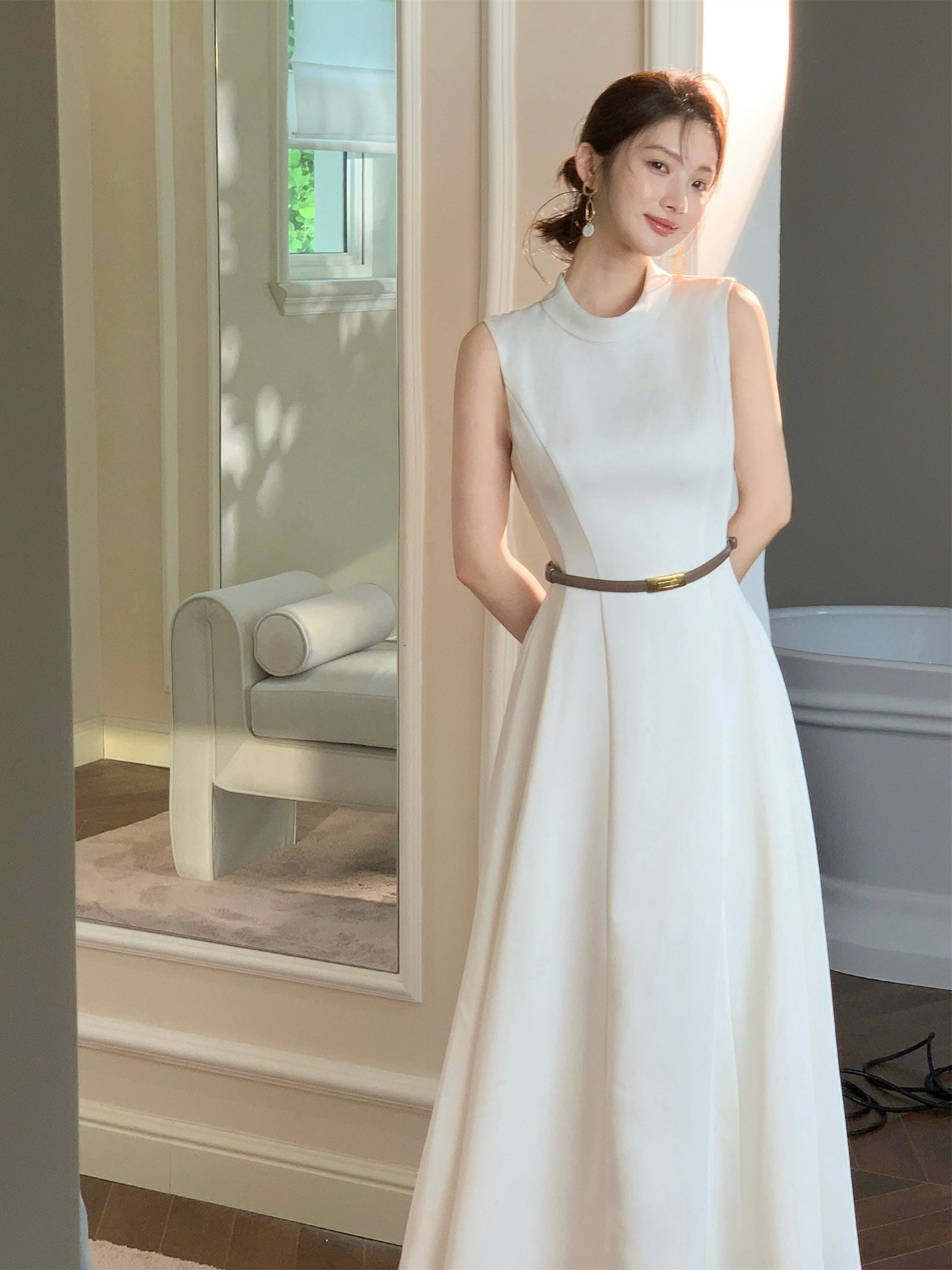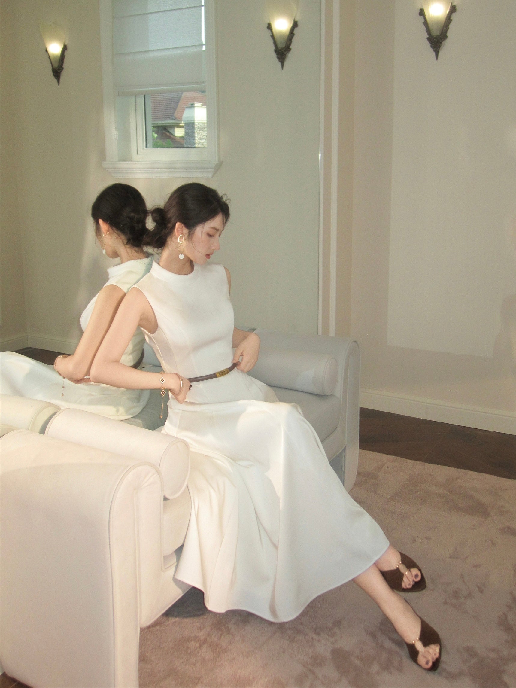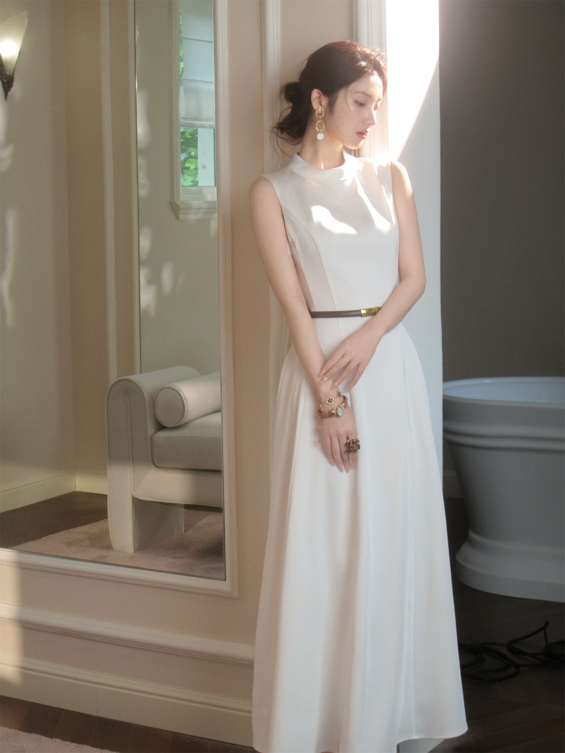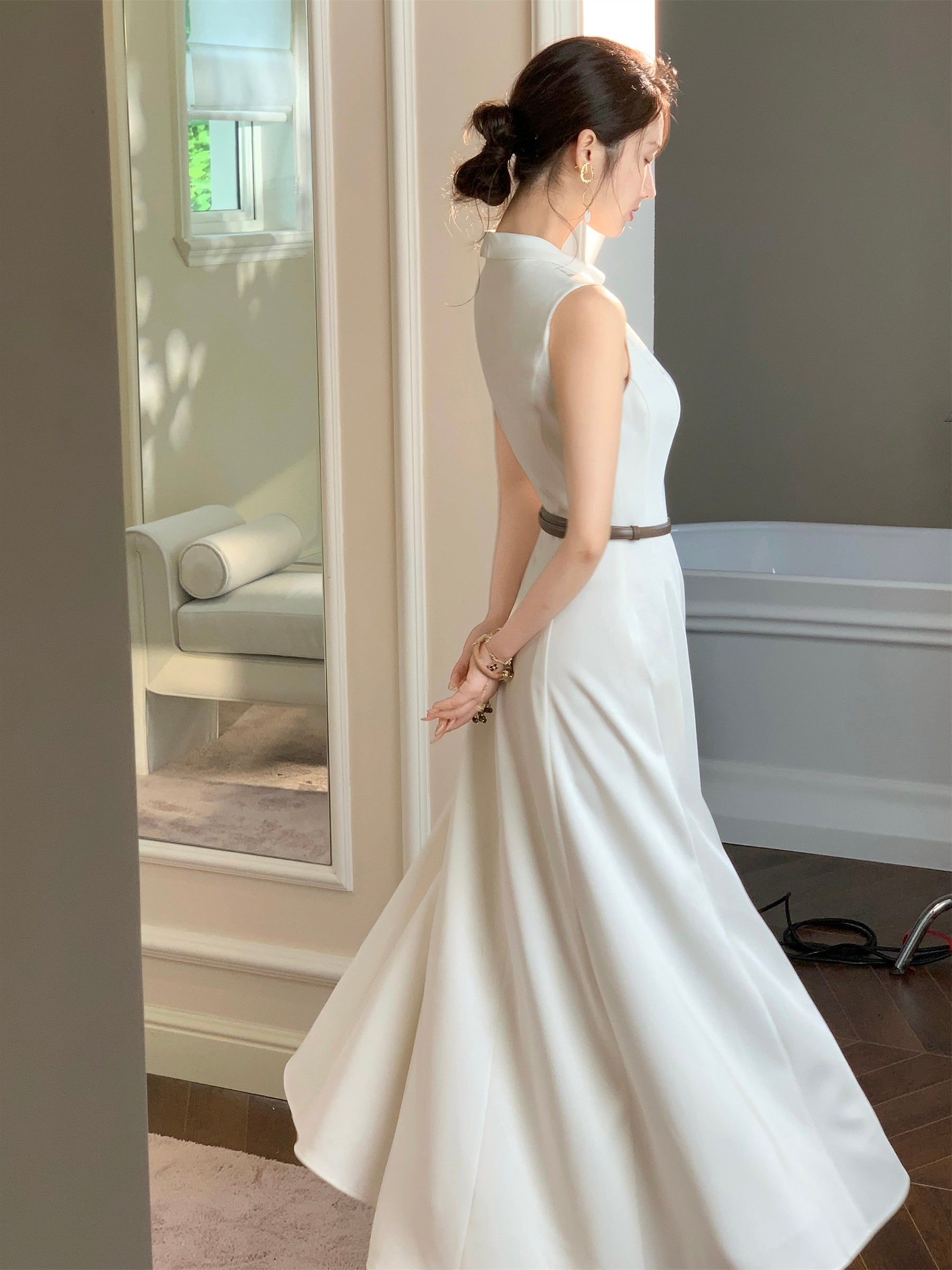 Our 50D stretch-fused construction gives the dress a crisp, sculpted silhouette. The neat mini collar sits right at the perfect point between collarbone and jawline — a subtle nod to Breakfast at Tiffany’s and the timeless poise of Audrey. And that clean A-line skirt? It flares from the waist in a precise, smooth sweep, with hidden dart shaping that subtly smooths the tummy. We didn’t forget practicality either — the concealed zipper makes dressing effortless.