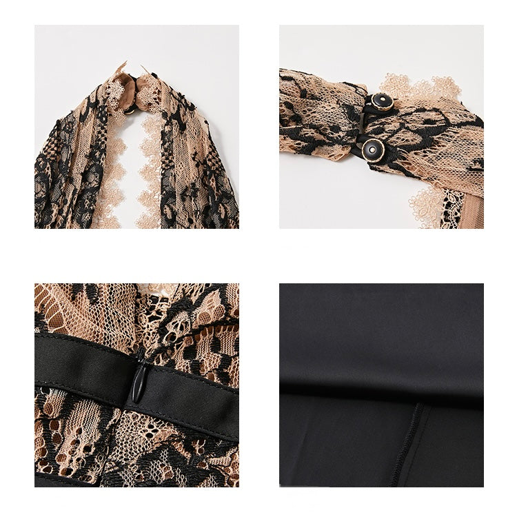 The prettiest mix of sultry lace and smooth satin? Meet ‘Melania’. The bodice is crafted from sheer lace with intricate floral patterns, creating a beautifully delicate look that feels both romantic and subtly seductive. We love how the semi-sheer finish offers a soft peek of skin, adding just the right touch of mystery. The skirt contrasts with smooth black satin that drapes like a dream, flowing with a silky sheen that’s every bit as luxurious as it looks.