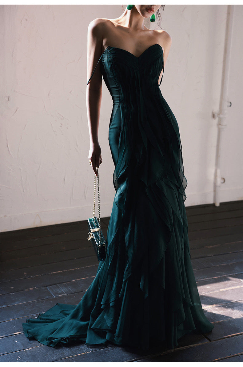 To enhance your comfort, we've added built-in padded cups and non-slip strips along the inner neckline, ensuring everything stays perfectly in place. The structured bodice features hidden boning for support, creating a stunning hourglass shape.