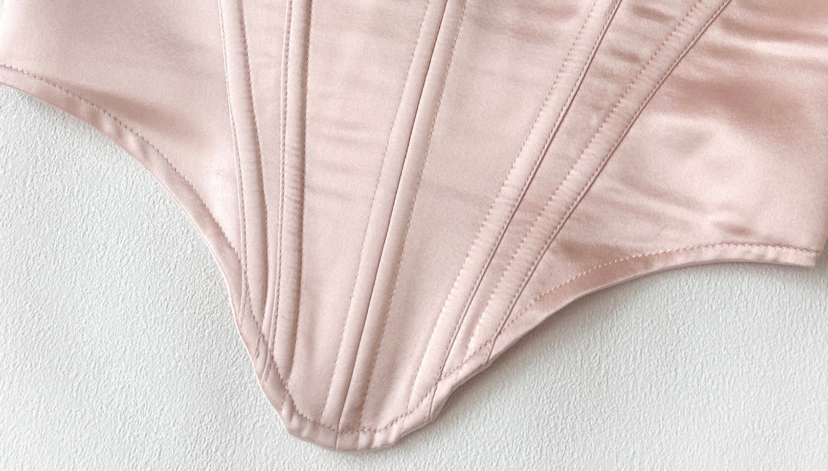 We picked a glossy fabric that looks luxe and feels even better, thanks to the soft satin lining underneath. The silhouette is crafted with 11 internal fishbones to cinch, shape, and support without the need for cups – it’s built to hold you beautifully, with a flattering curved waistline that defines your figure from every angle.
