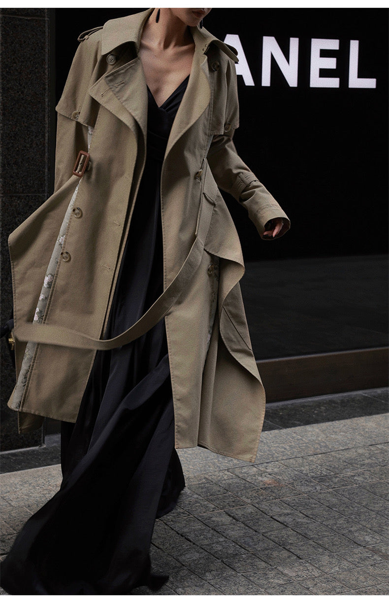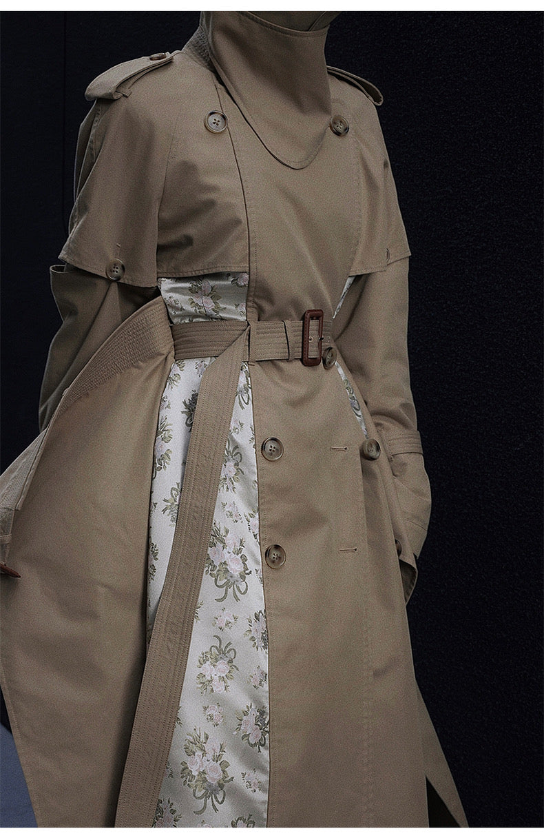 We constructed the silhouette in three rich layers: a breathable, soft twill lining for comfort; a satin jacquard middle layer that adds subtle gloss and softness; and an outer shell in high-density twill trench fabric that opens to reveal the inner gleam. The result? A trench that blends timeless tailoring with fashion-forward volume and dimensional detail.