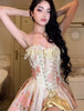 Its silhouette is straight from a European court — a sculpted corset-style bodice with boning for structure, paired with a flared skirt that twirls just right.