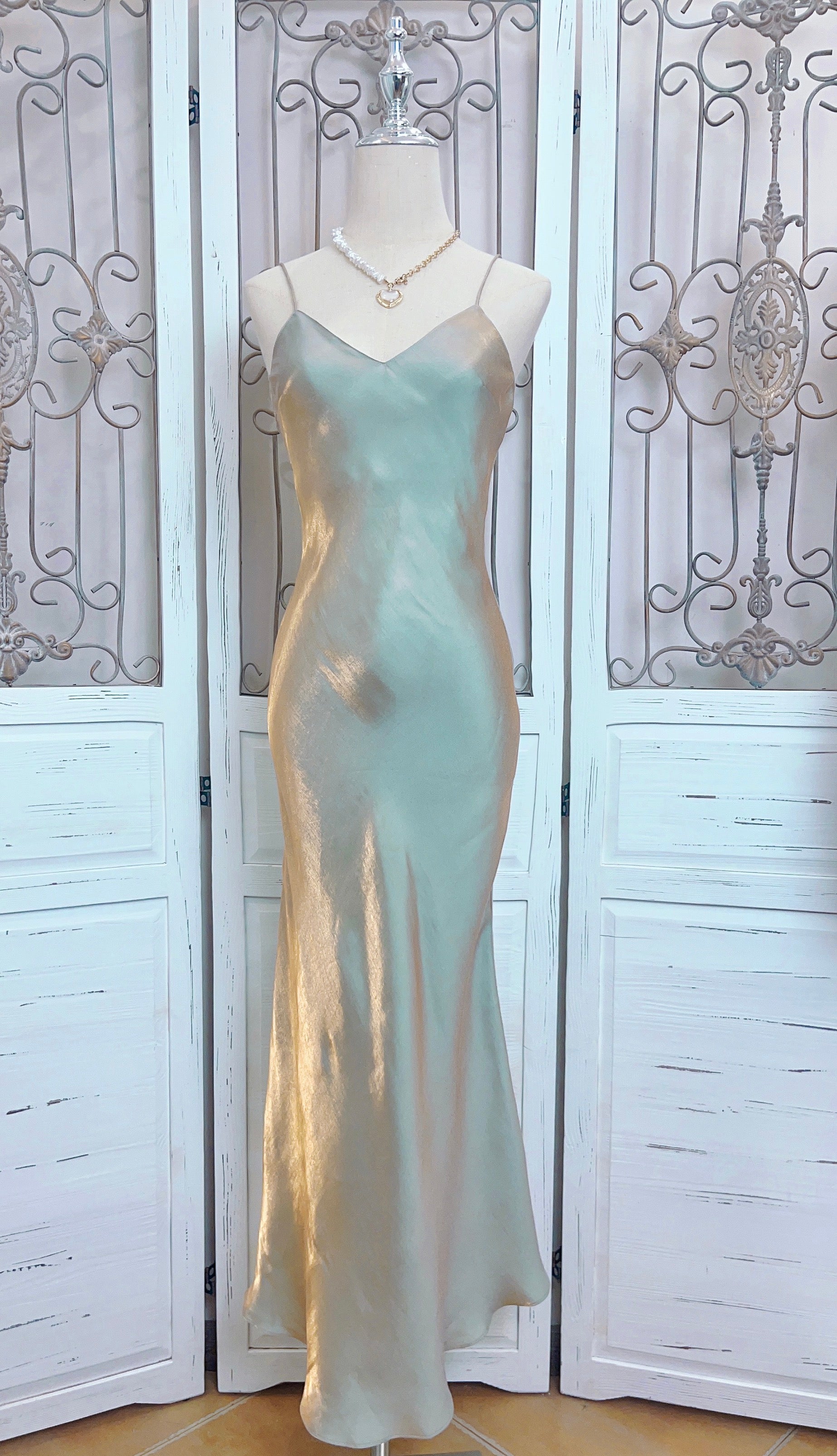 Crafted from a luminous cotton-silk blend woven with metallic threads, the fabric catches light in all the right ways while staying breathable and luxe. We chose a bias-cut construction to bring out that natural drape—it hugs where it should, releases where it needs to, and flatters a variety of body shapes with ease.