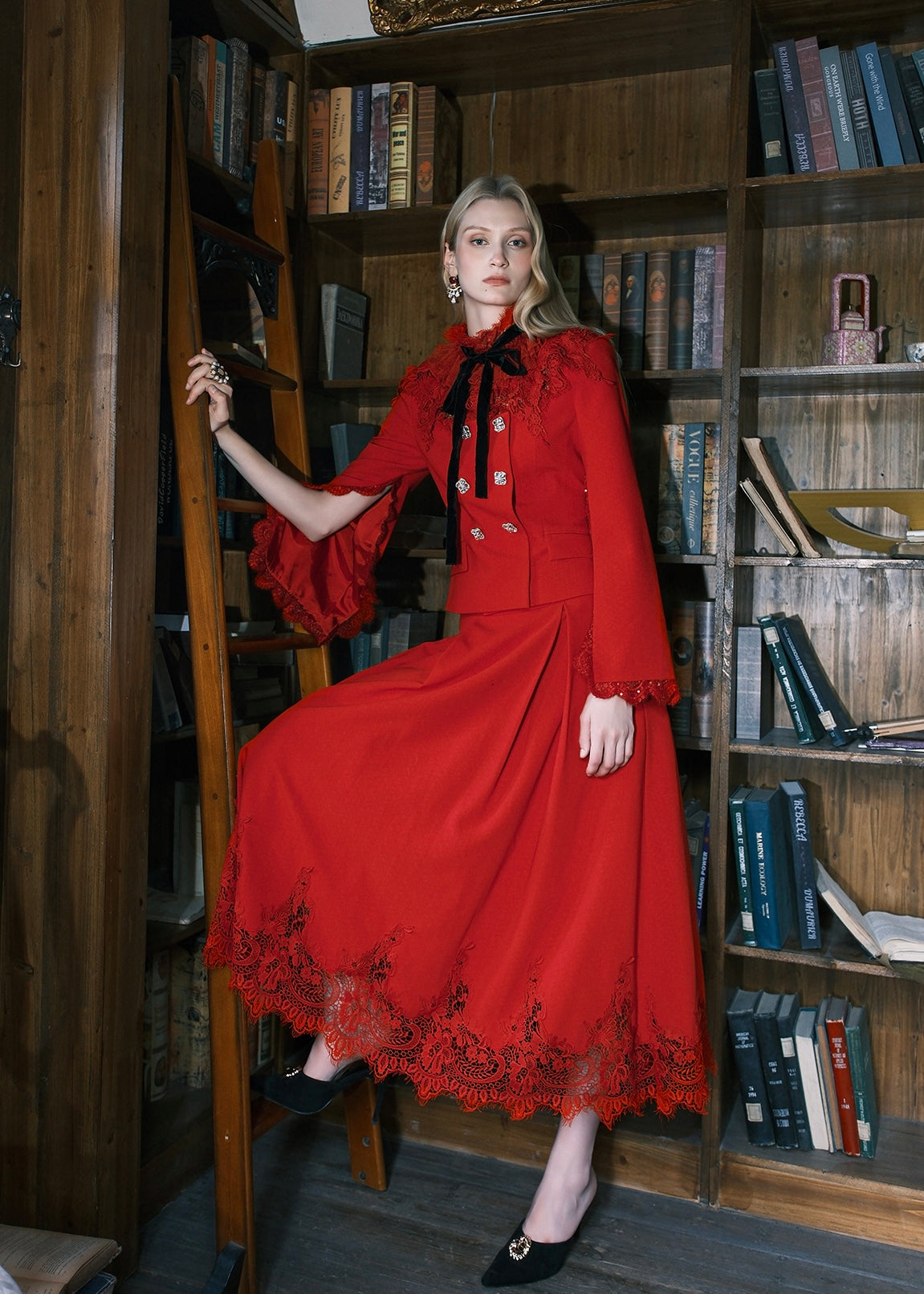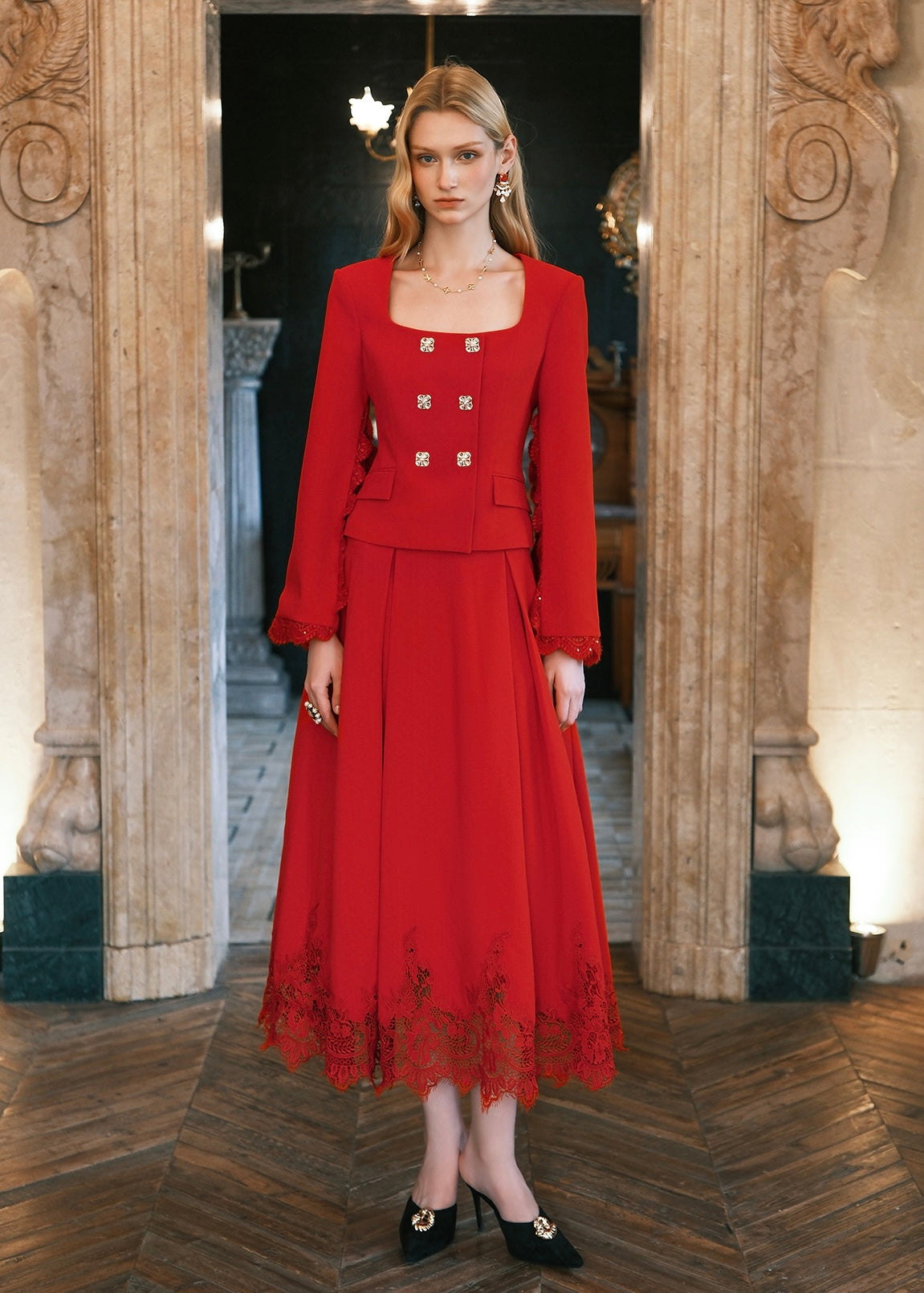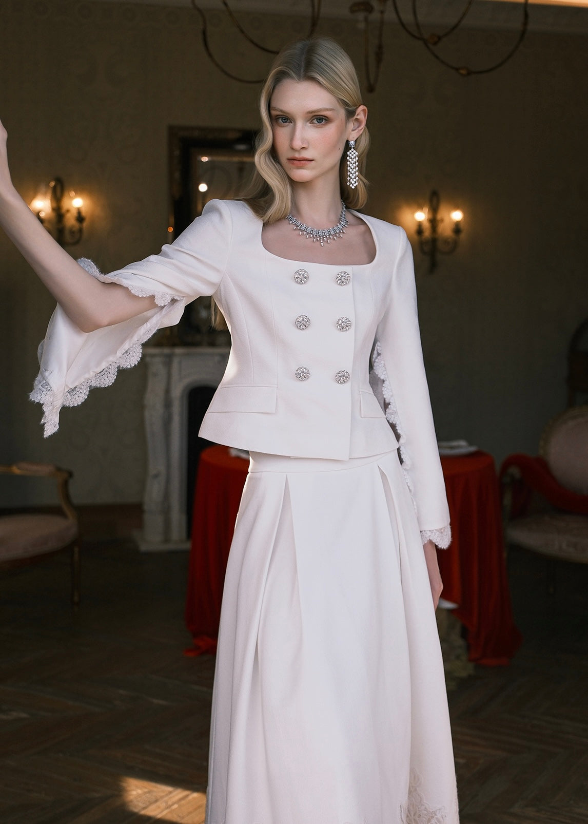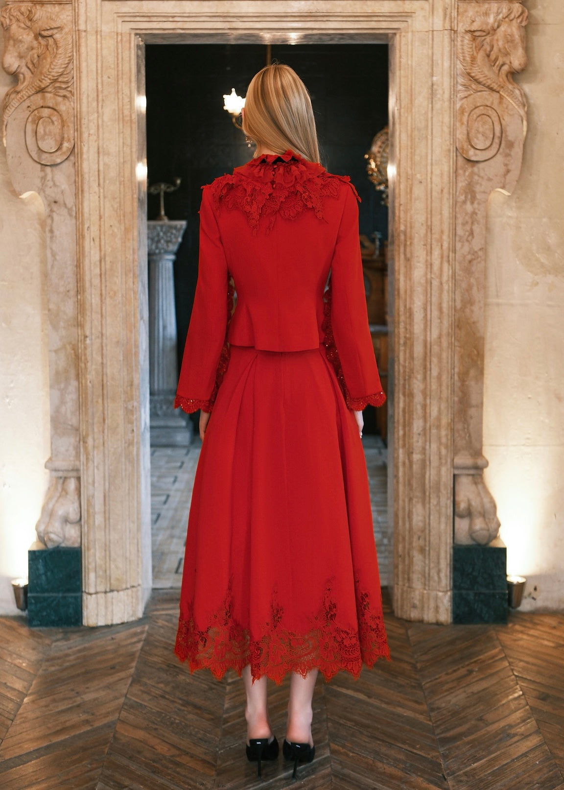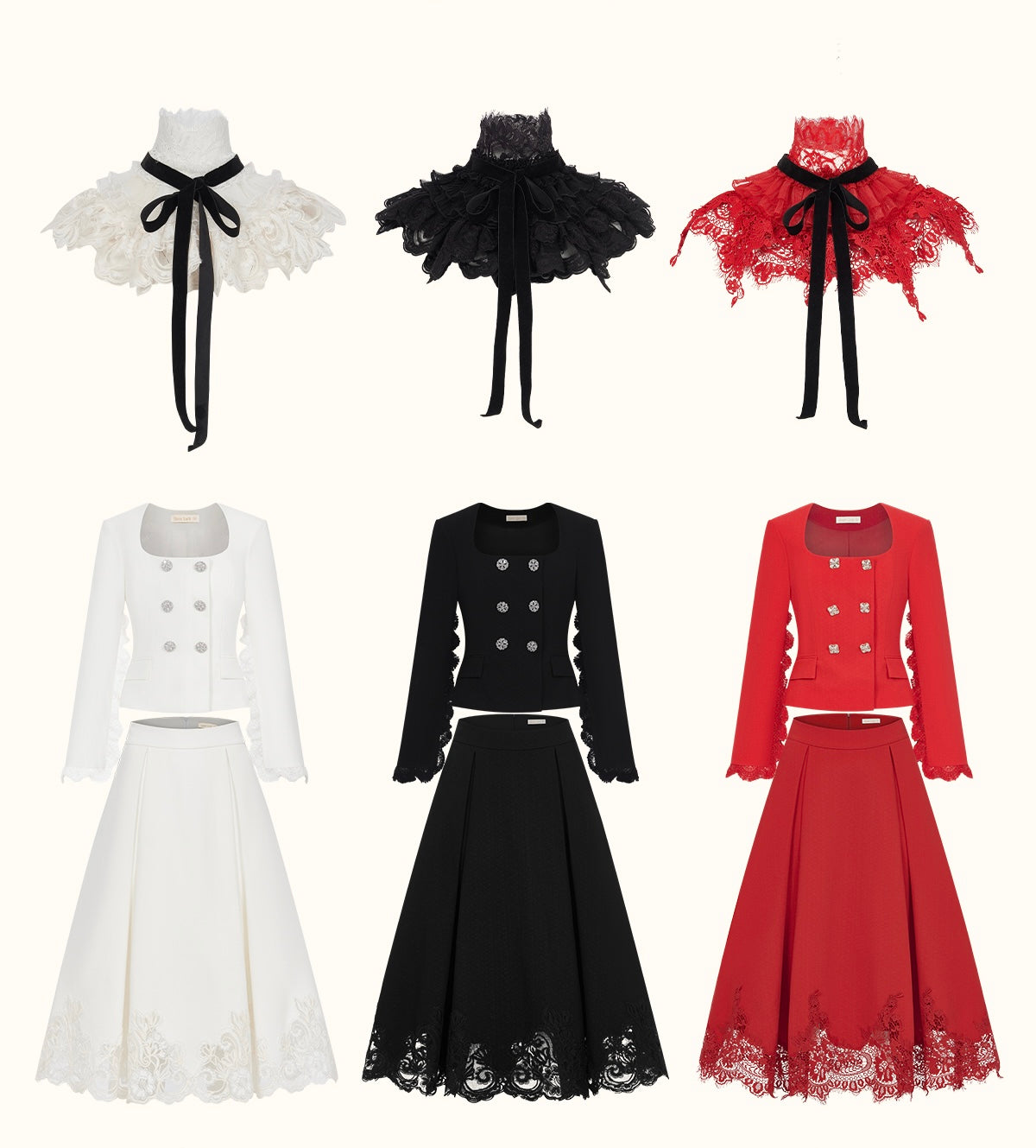 Choose your spotlight shade: luminous Pearl White for modern romance, enigmatic Phantom Black for midnight intrigue, or fervent Rhapsody Red for a statement encore. Wear the full set for museum galas and winter weddings, or mix the jacket with high-waist denim and let the skirt steal the spotlight with a slim knit - versatility is the secret jewel here.
