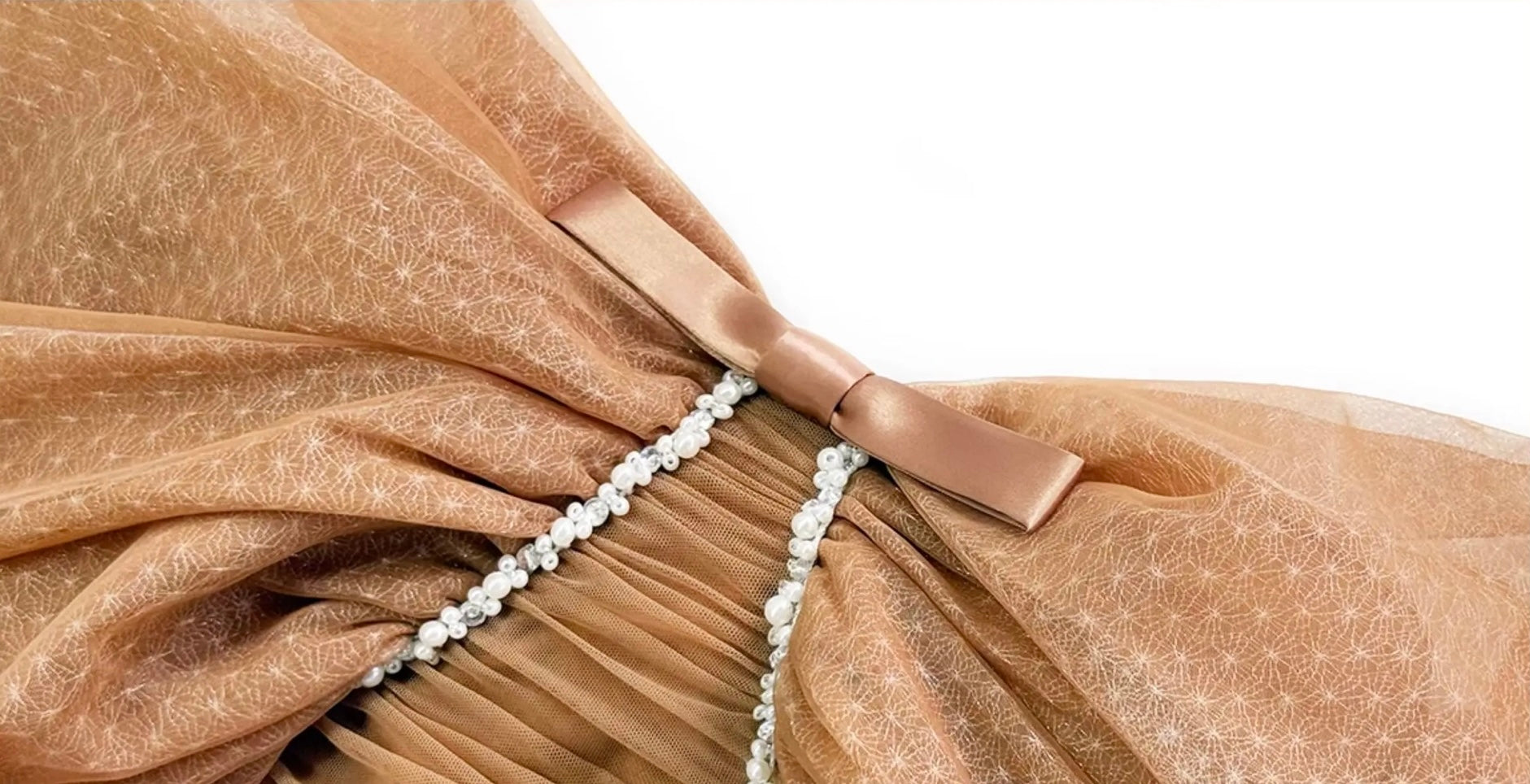 We’ve crafted ‘Keren’ in a dreamy soft mesh that’s smooth to the touch, feather-light, and just stretchy enough to sculpt and flatter without ever feeling tight. The structured bustier bodice is adorned with a statement front bow and delicate pearl fringe that adds just the right amount of romantic drama.