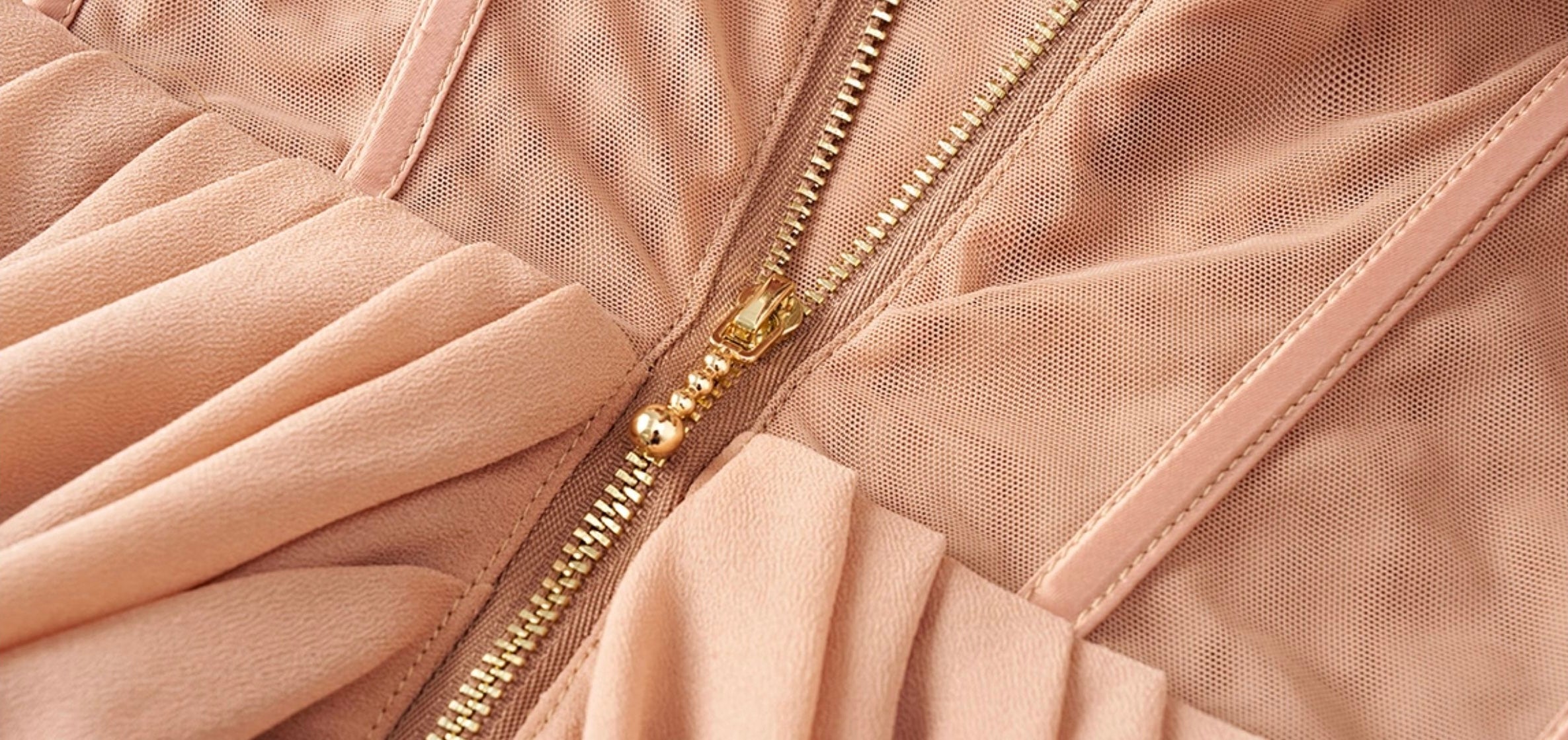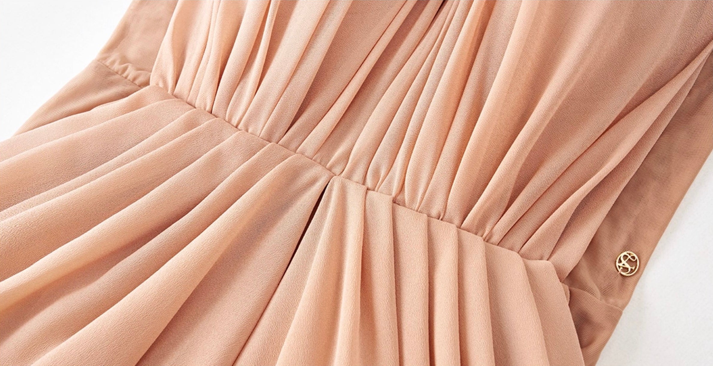 Inside, the high-density chiffon has a whisper of stretch, so ‘Vedette’ feels feather-light and never clingy (think air-conditioning on skin). A concealed zip glides up the back for speedy changes, because lateness is never part of the look.