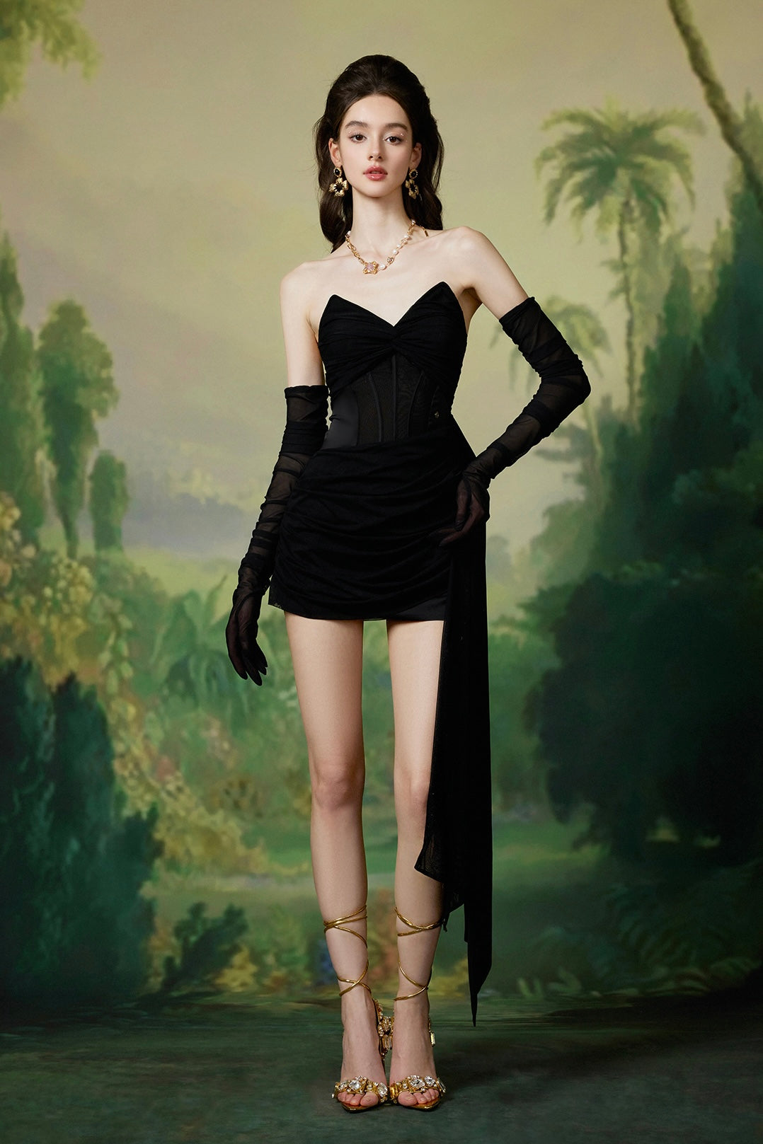 ‘Ysella’ comes with two long gloves and a detachable draped sash, giving you the freedom to style her your way — wear them for evening glamour or go bare for a softer, contemporary look.