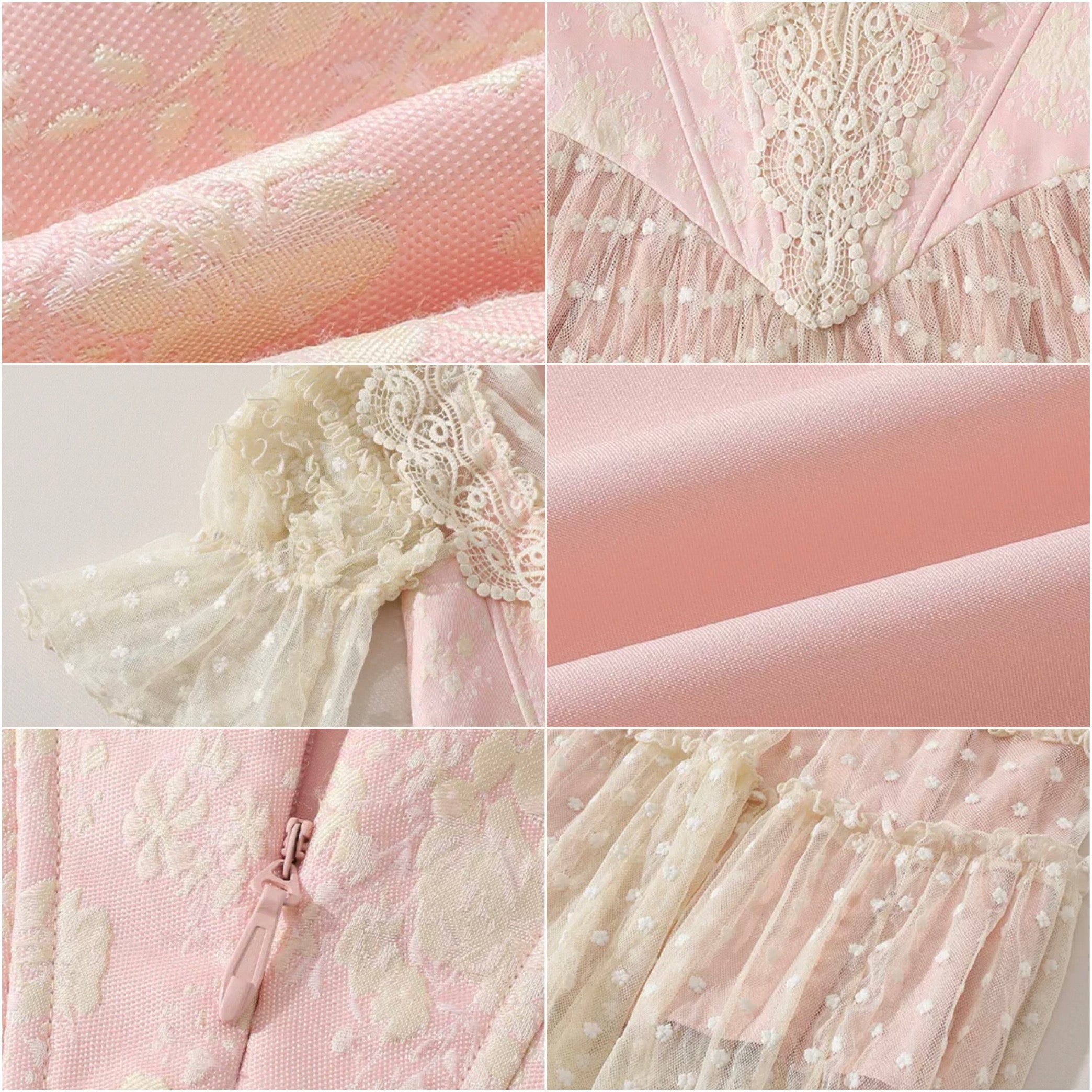 Vintage-inspired lace panels trace the neckline, sweep across the bodice and fall into tiered ruffles that flutter as you walk, letting the full skirt drift in a soft, flattering line. A concealed back zip makes slipping in and out effortless. ‘Blush Rhapsody’ moves beautifully, and feels even better.