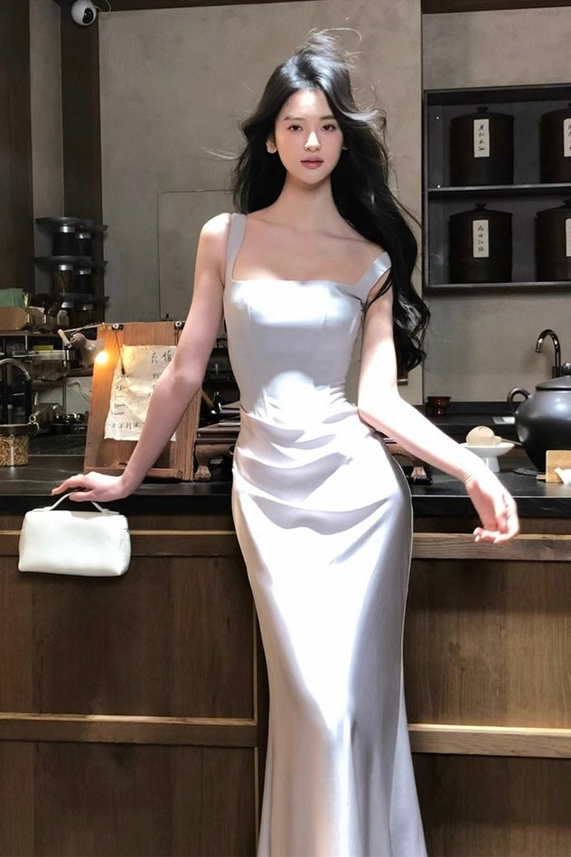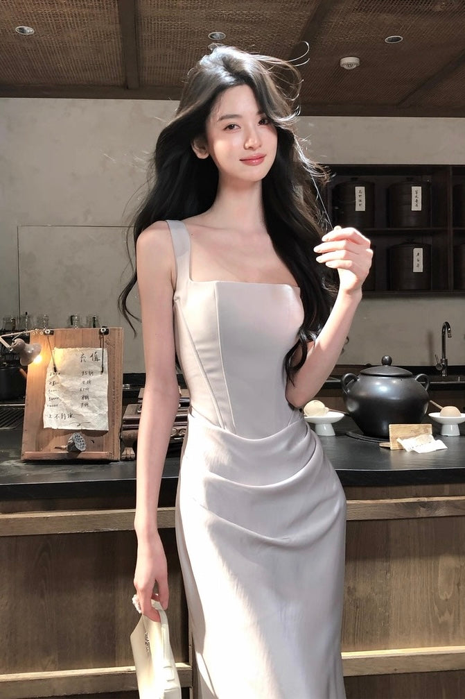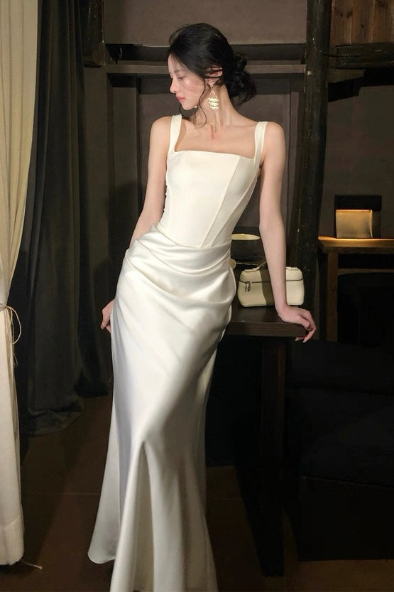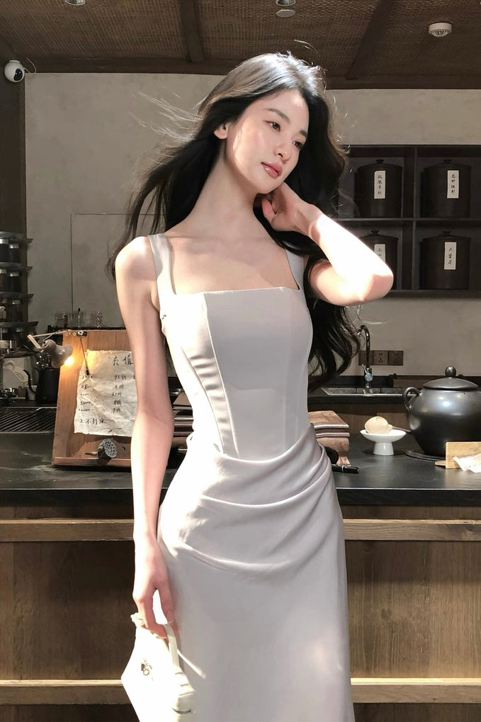 Our square neckline was refined again and again until it framed the collarbone just right, with integrated straps that flow seamlessly from bodice to shoulder in a softly curved line. The skin reveal is subtle, intentional, and incredibly flattering. It’s giving poised heiress energy… and we’re not mad about it.
