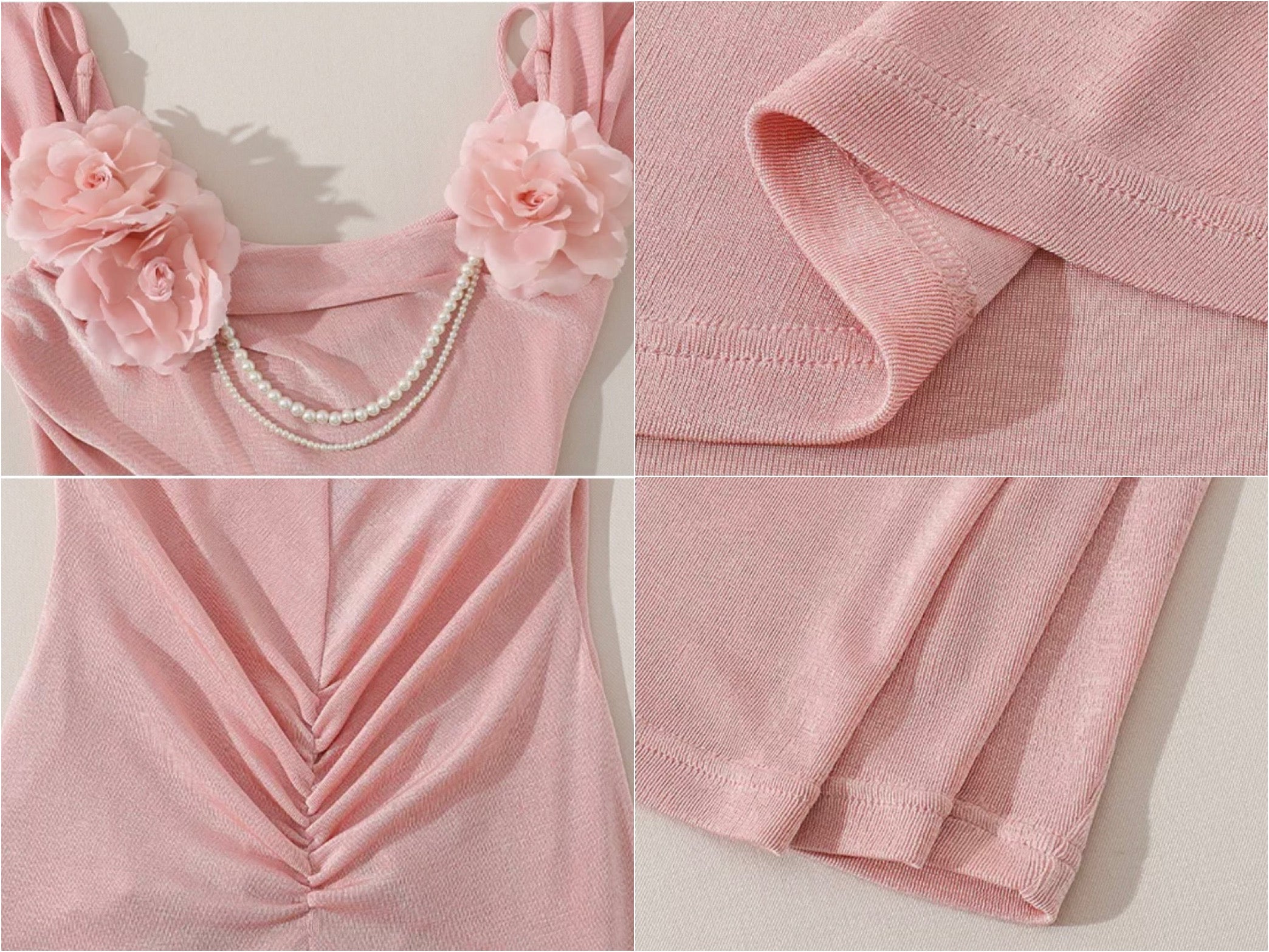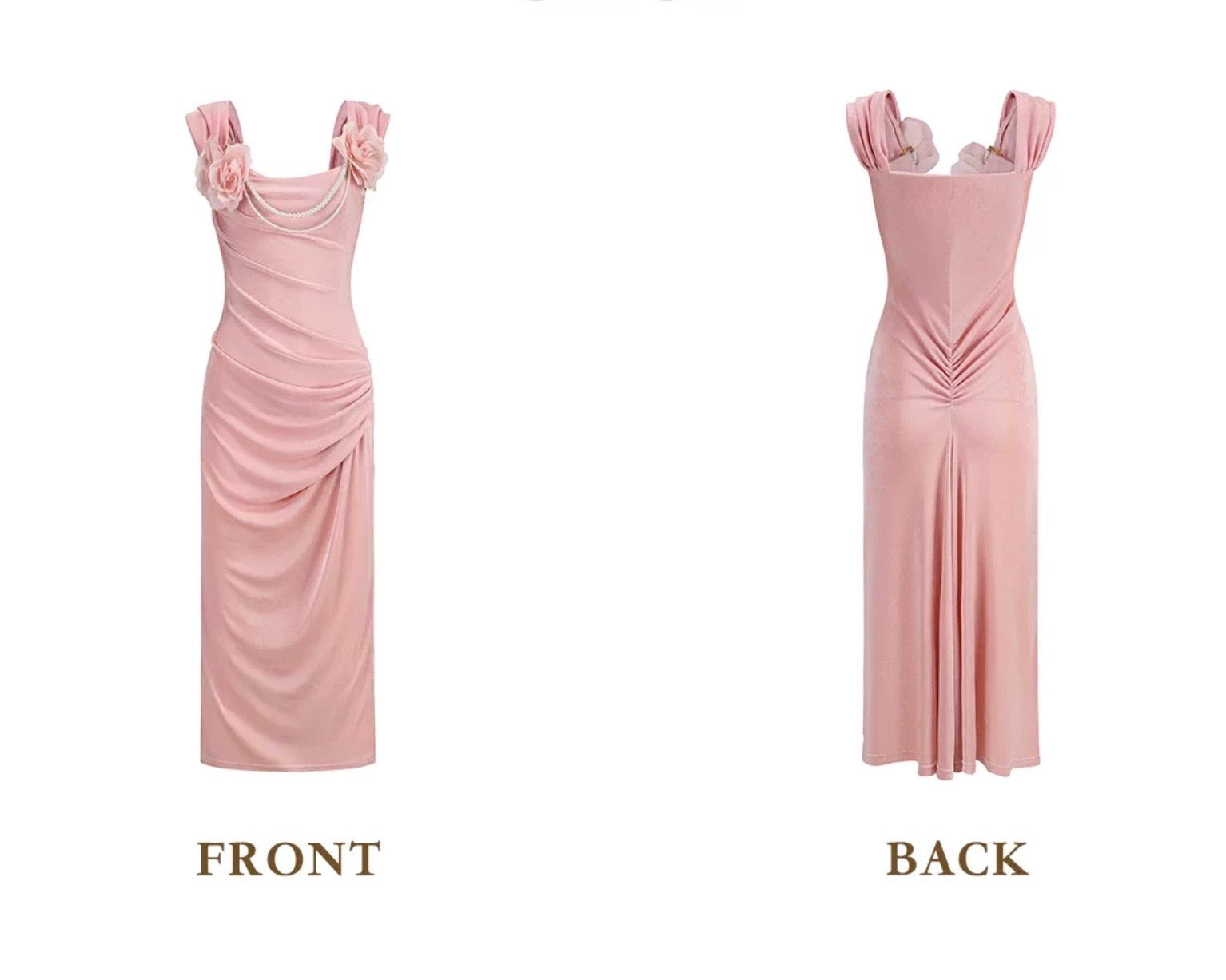 Our signature attention to detail shines through the positioned floral appliqués at the neckline, paired with a detachable pearl chain drape that adds a delicate layered finish. You can wear ‘Lacewood Blush’ with the pearls for a romantic statement, or remove them for a cleaner, sweeter look depending on your mood. We love a dress that gives you options.
