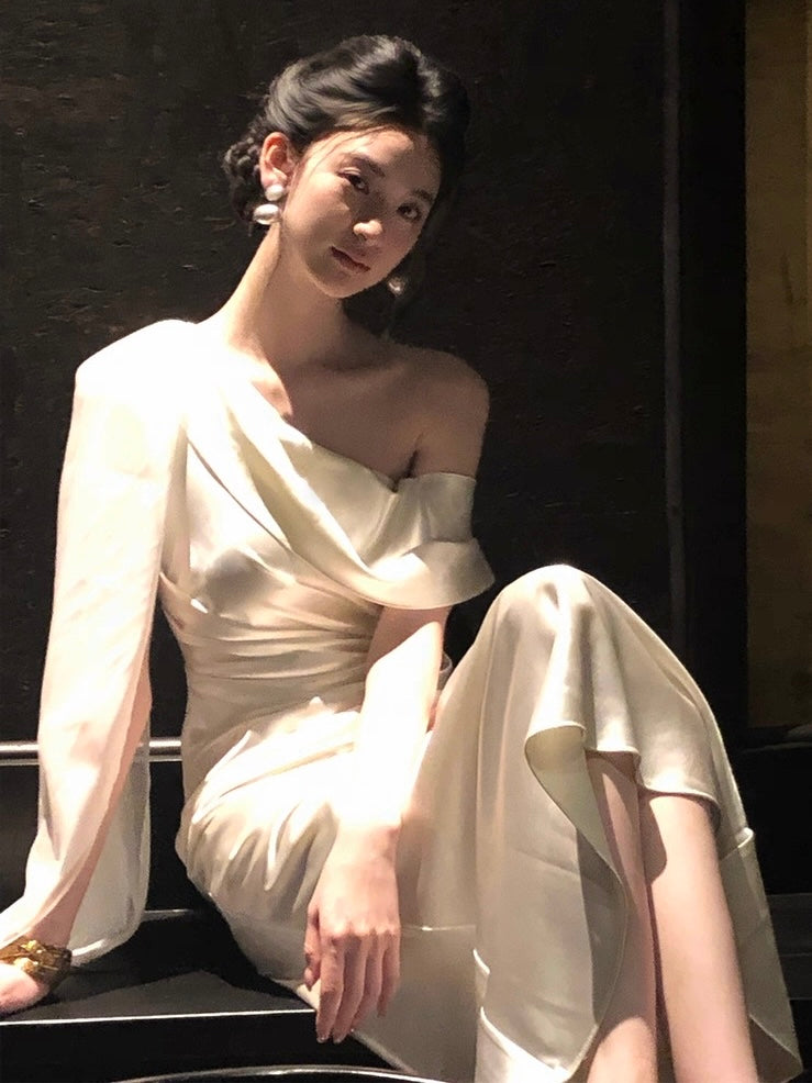 Turn around and you’ll understand. The softly draped pleats at the back refine the silhouette and enhance the waistline, creating that “back view goddess” effect that lingers long after you’ve walked away.