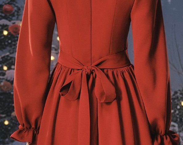 Our favourite detail is the long sash at the back: tie it in a bow or knot it low for a custom fit and an elegant rear view. Dress ‘Cabernet’ up with velvet heels for soirées, or slip on ankle boots and let that rich colour steal the coffee-date spotlight.