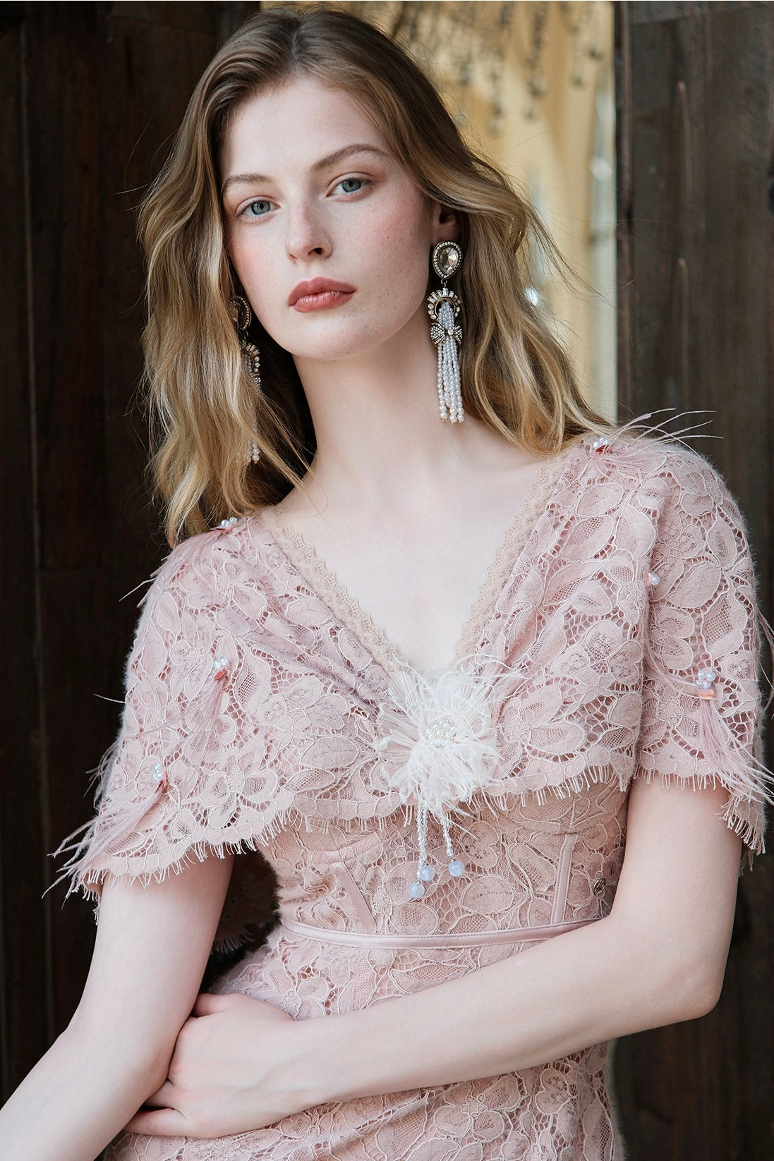 Choose Pearl White for bridal showers and moonlit vows, or blush ‘Lotus Pink’ for garden weddings, high-tea dates, and every photo-worthy moment in between (because why limit lace to just one occasion?). We see you styling ‘Cynara’ with crystal earrings and sling-back heels, then swapping to barely-there sandals when the dance floor calls.
