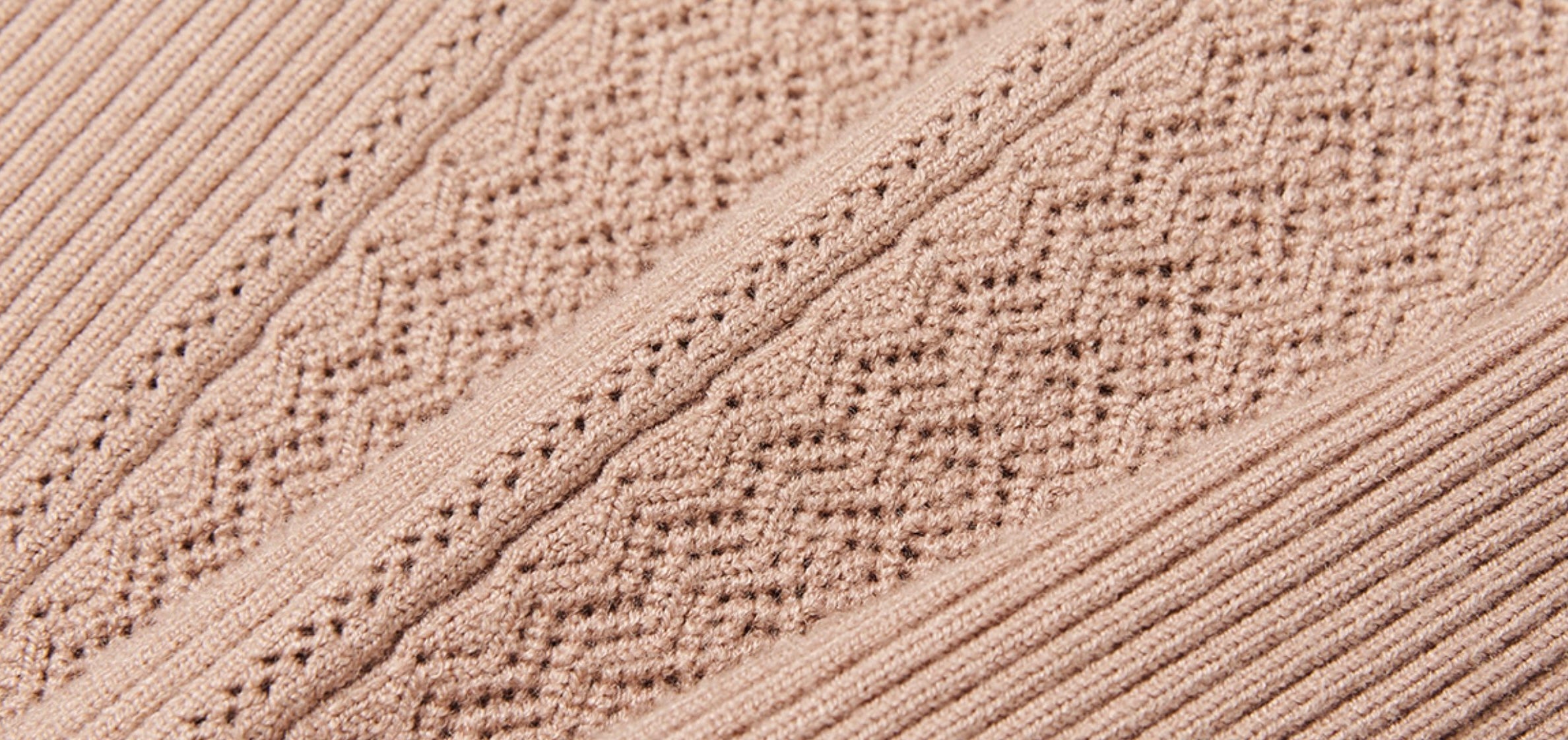 Even sweeter, those pretty zig-zag textures you see in the close-ups are knitted right in, lending depth without bulk. Long sleeves finish in a subtle flare to balance the figure-hugging midi skirt.