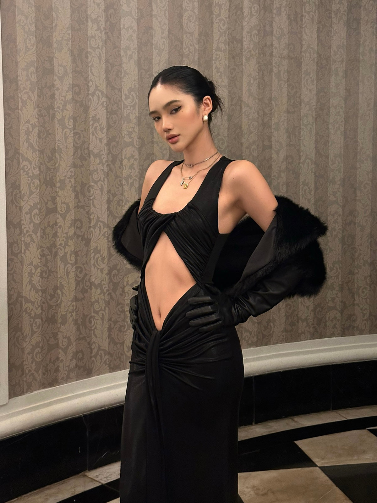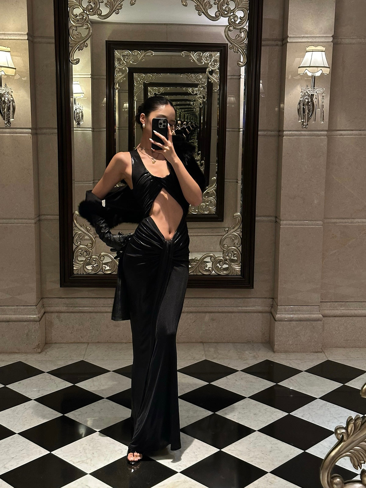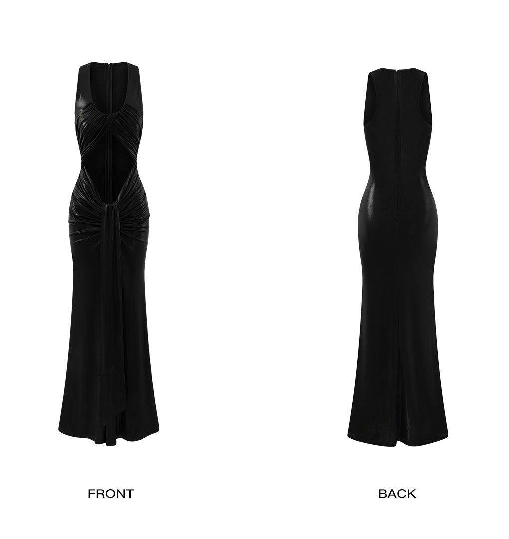 We added a flirt of trailing ties at the waist cut-out because movement matters, and the way they sway with every step? Completely mesmerising. You’ll love how the sleek, curve-carving silhouette creates that coveted paper-thin profile without ever feeling restrictive.