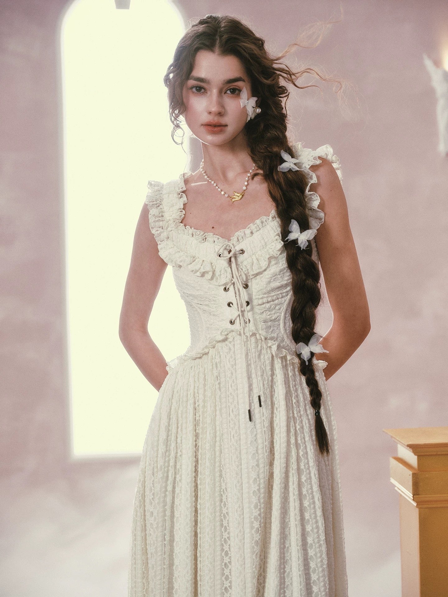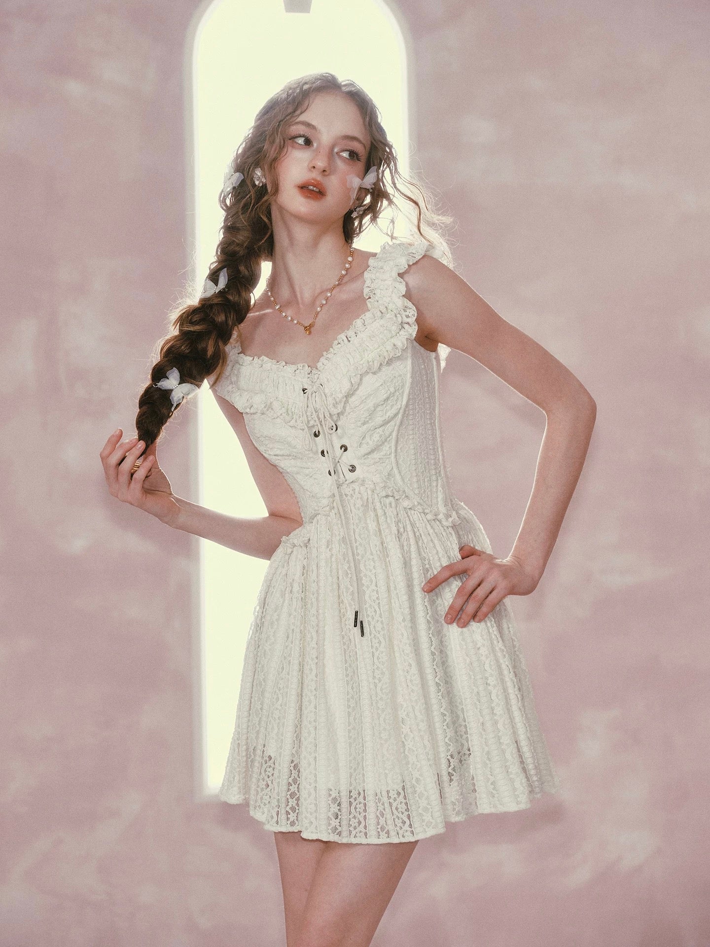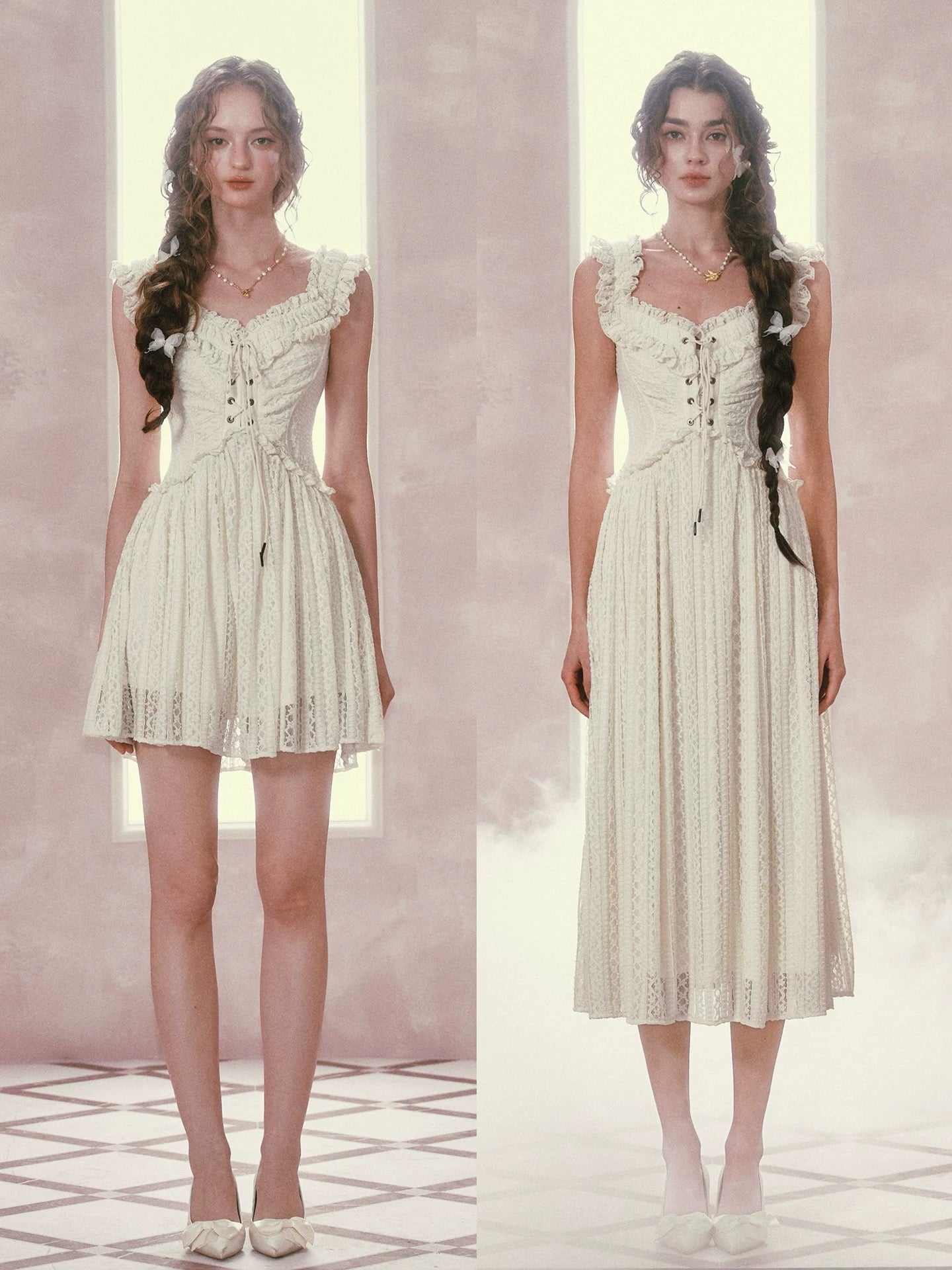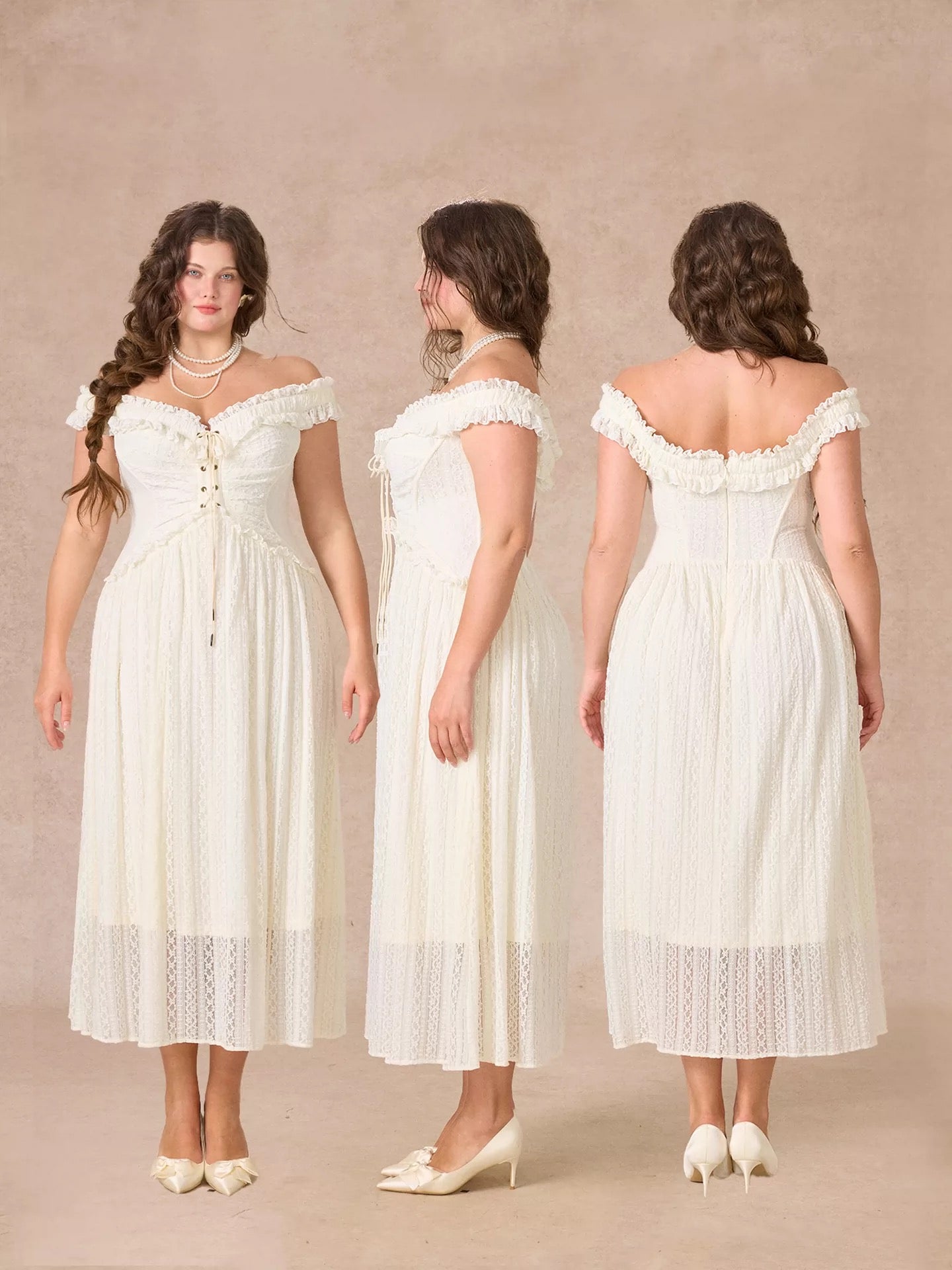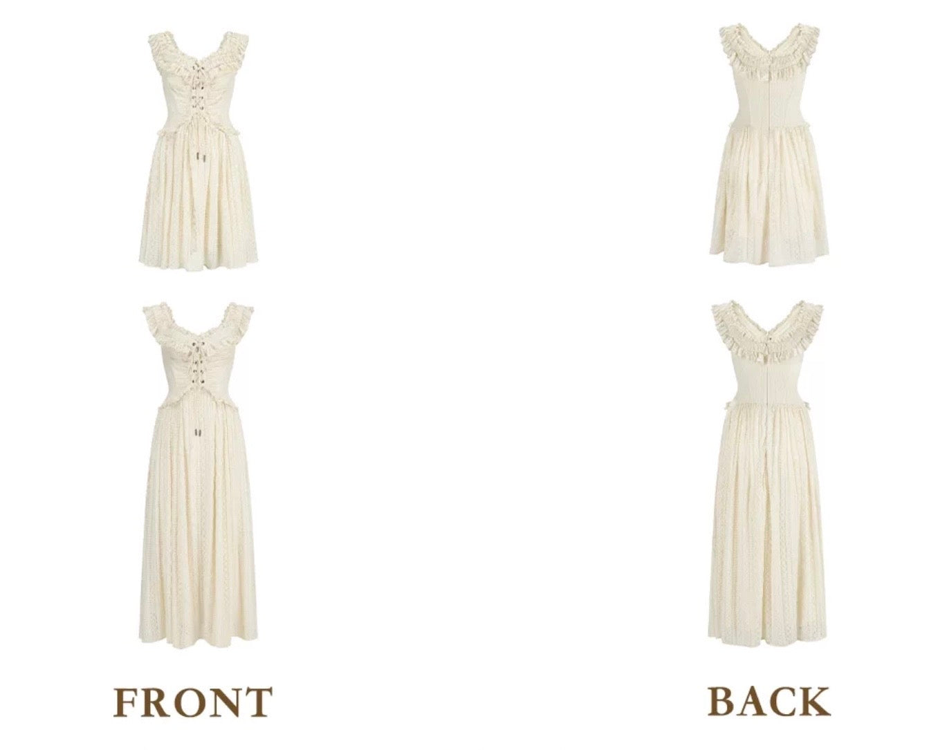 A discreet back zip keeps dressing effortless, and those dainty lettuce edge ruffles flutter with every step. Style ‘Caterina’ with ribboned heels for garden teas or layer delicate knits for sunset strolls, she’s ready for every dreamy plan you have lined up.