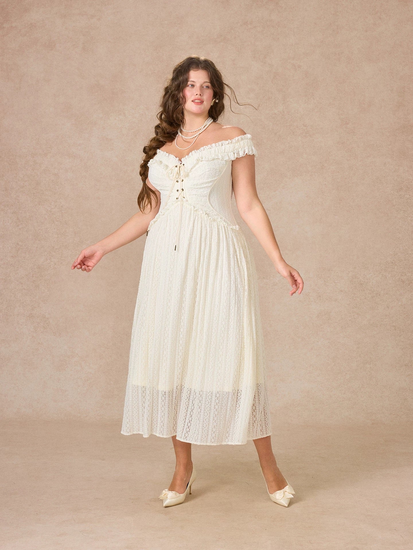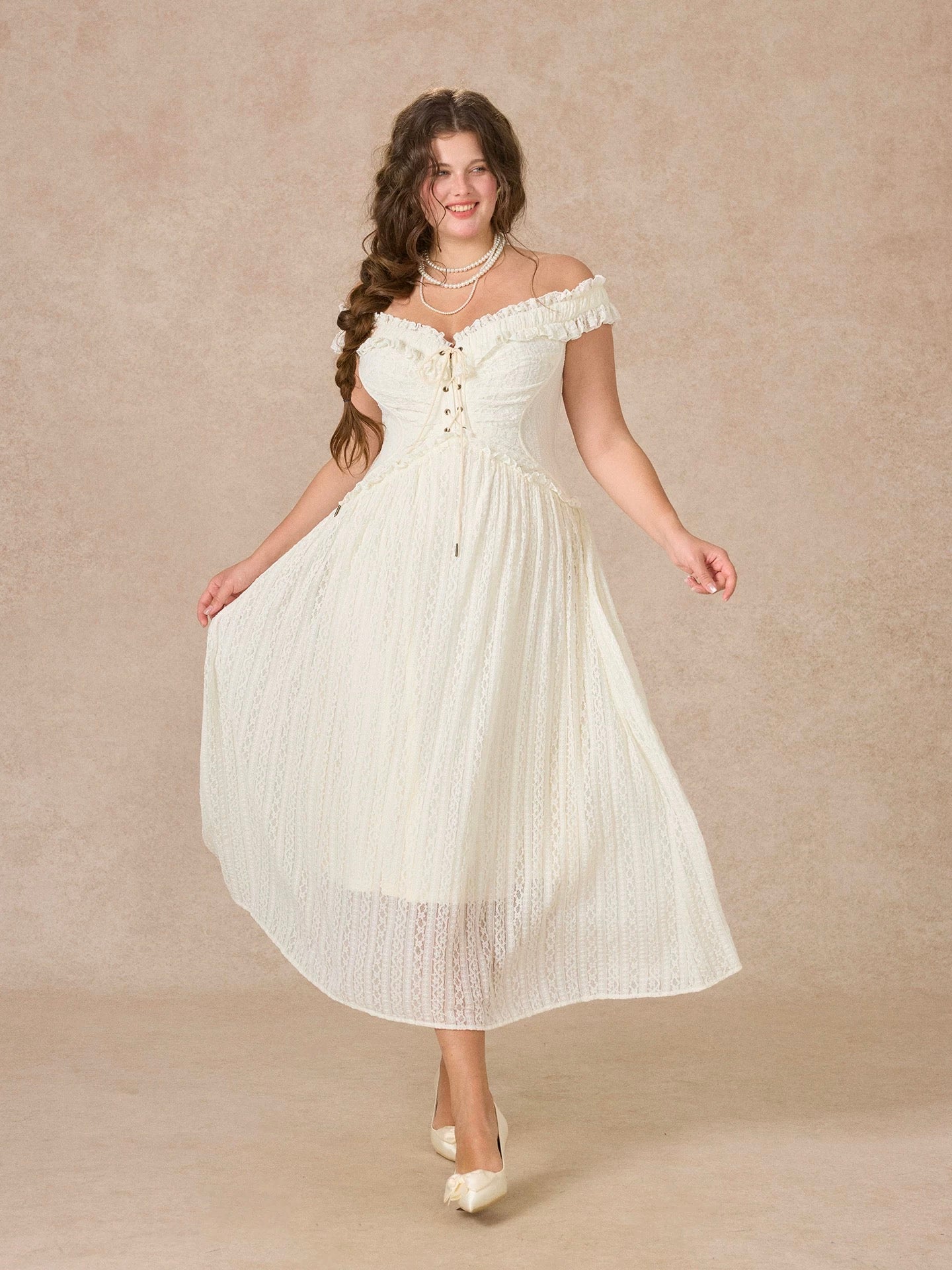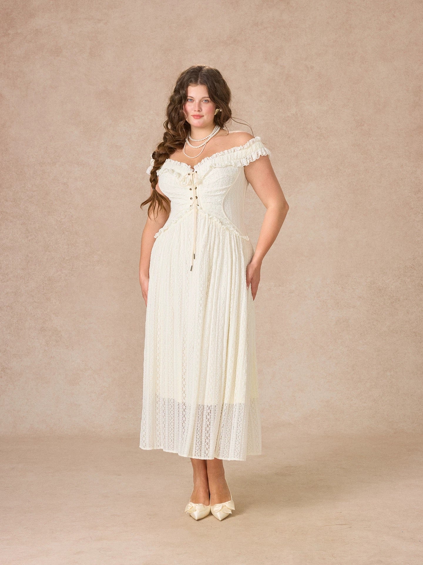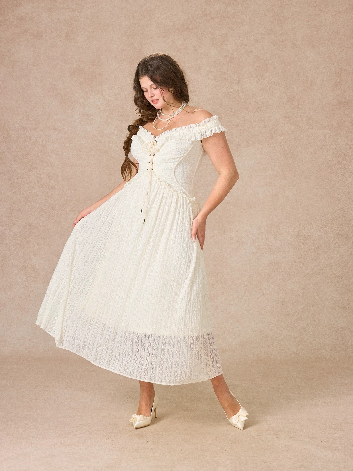 We picked airy stretch lace and lined it in whisper light polyester so you feel secure yet beautifully free to move. Our design team sculpted the bodice into a subtle butterfly curve, threading a lace up through antique eyelets for that signature waist snatching finish.
