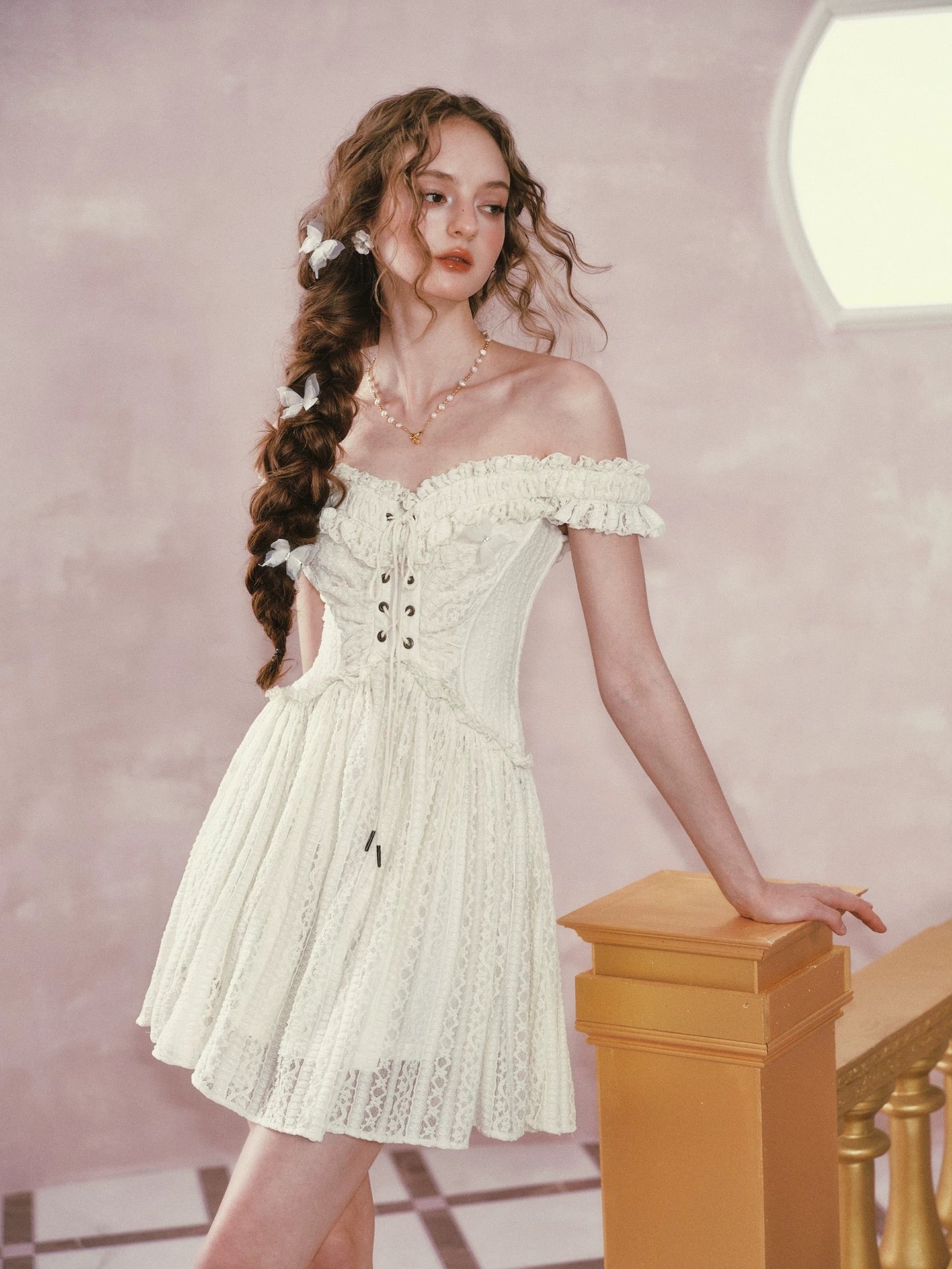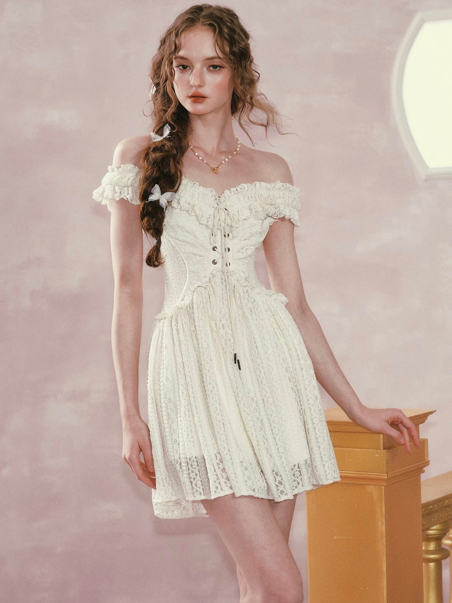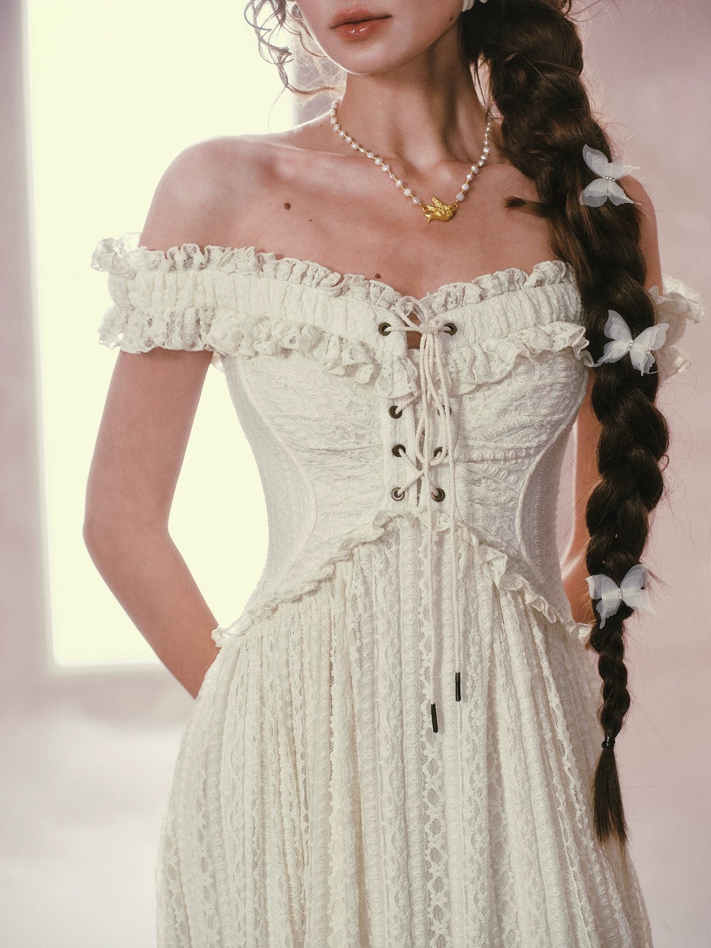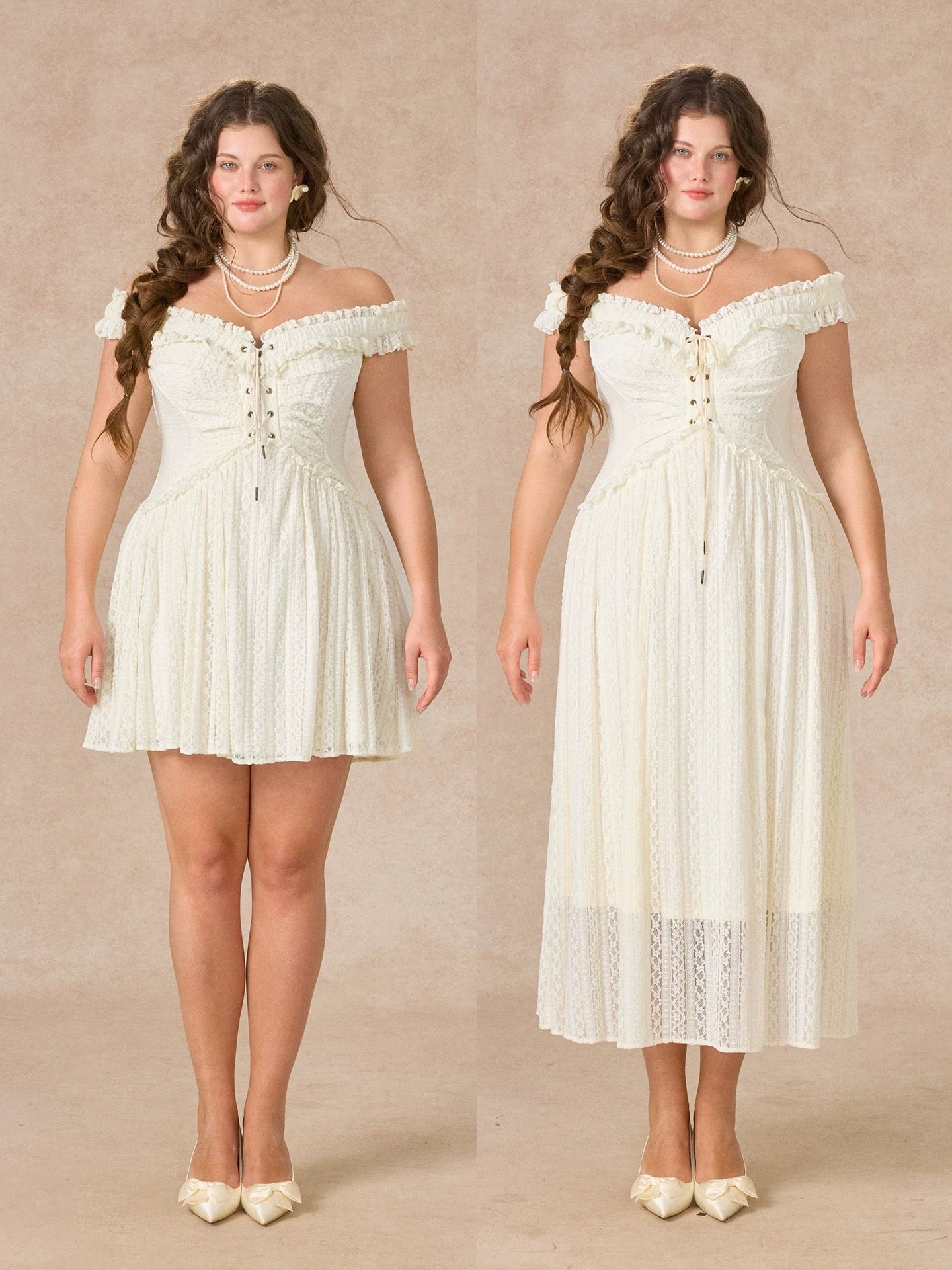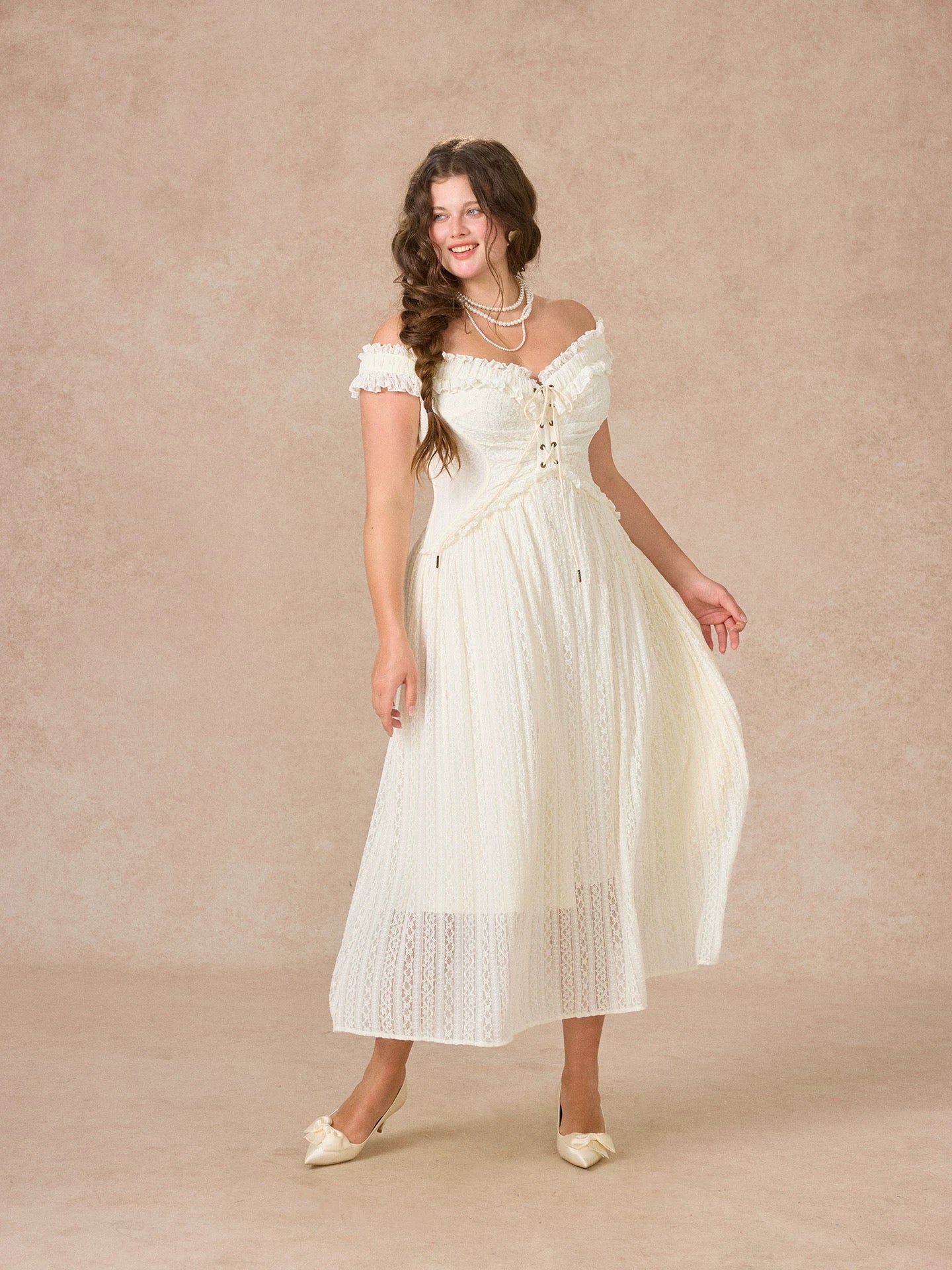 We picked airy stretch lace and lined it in whisper light polyester so you feel secure yet beautifully free to move. Our design team sculpted the bodice into a subtle butterfly curve, threading a lace up through antique eyelets for that signature waist snatching finish.