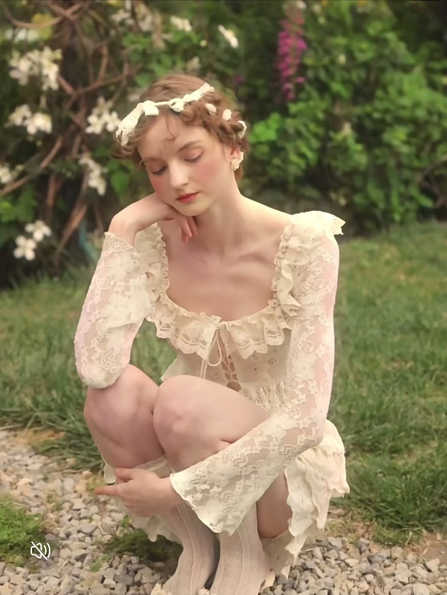 A square neckline edged in dainty lace frames the collarbones beautifully while the front tie lets you cinch the waist exactly how you like it. The sheer cotton voile lining keeps things breezy yet covered, because we know you love a look that’s both flirty and fuss-free.