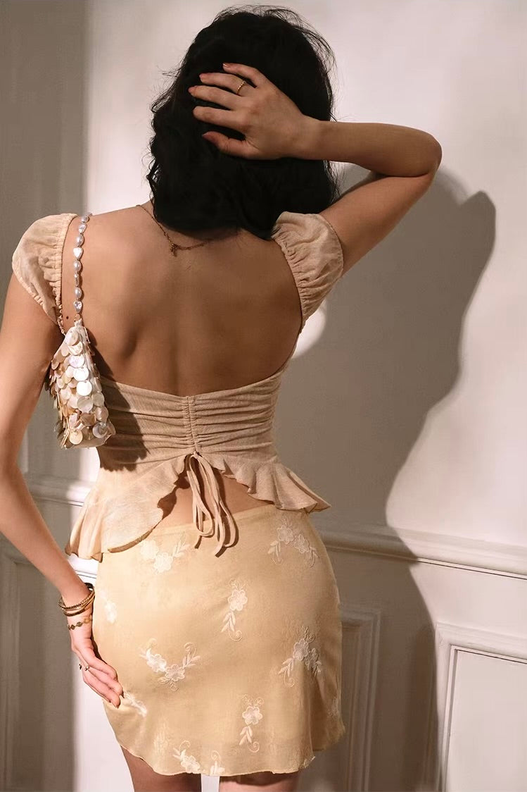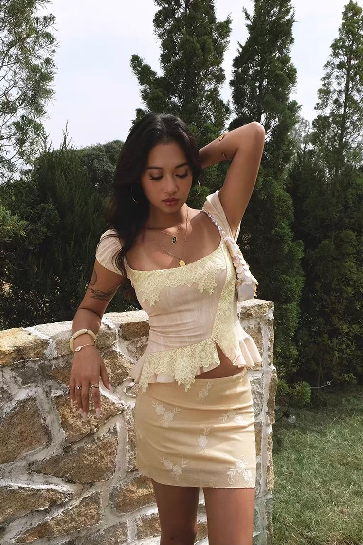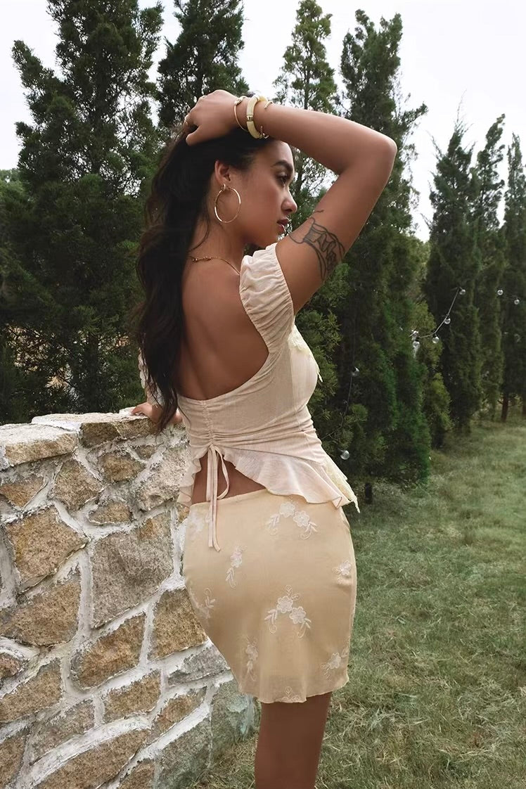 Our lace detailing is placed to flatter, soften, and make the silhouette look even more feminine, and the back ruching tie lets you adjust the fit to hug your waist just how you like it. And that subtly flared hem? It’s giving tiny fishtail, and we’re obsessed.