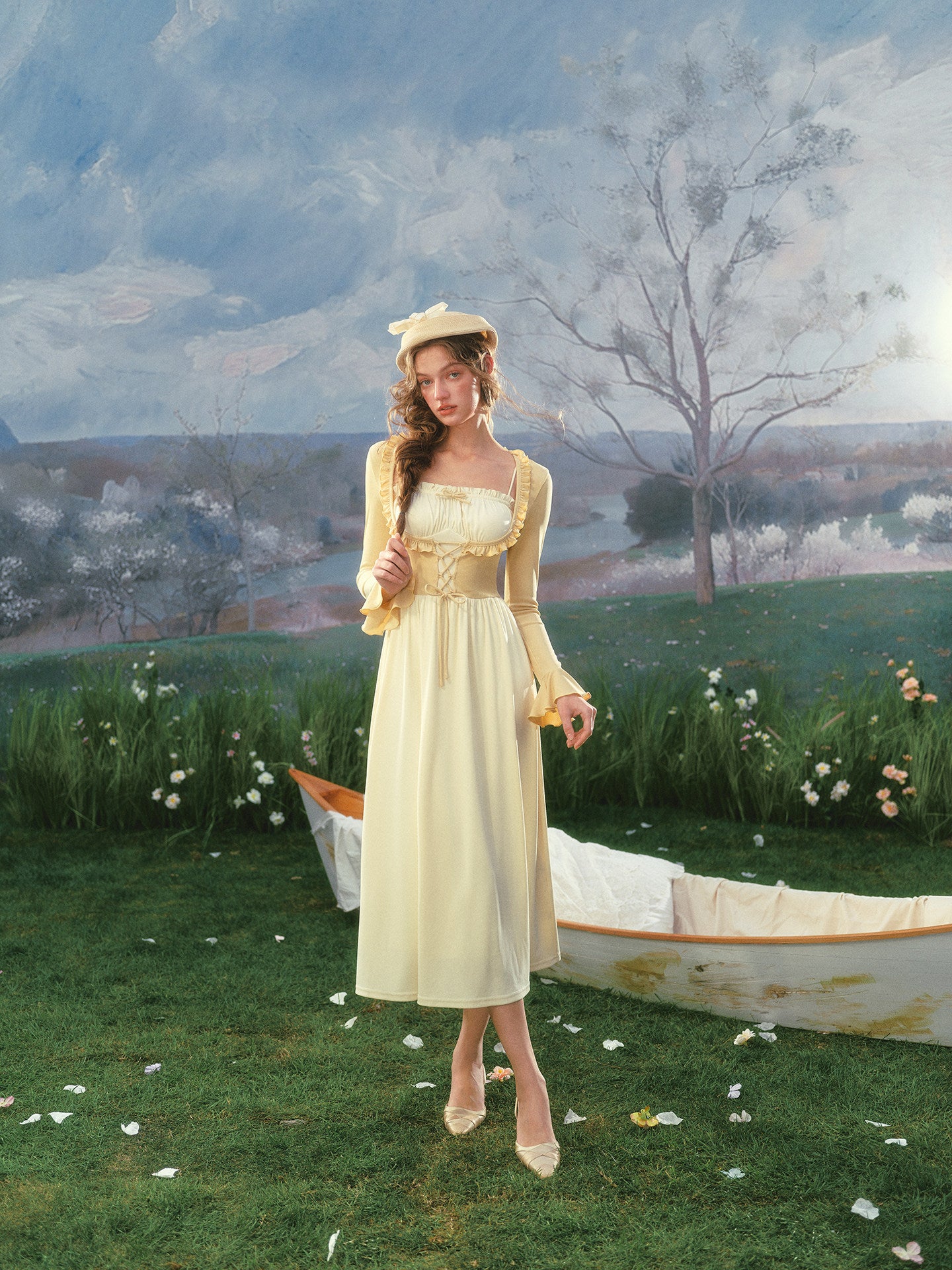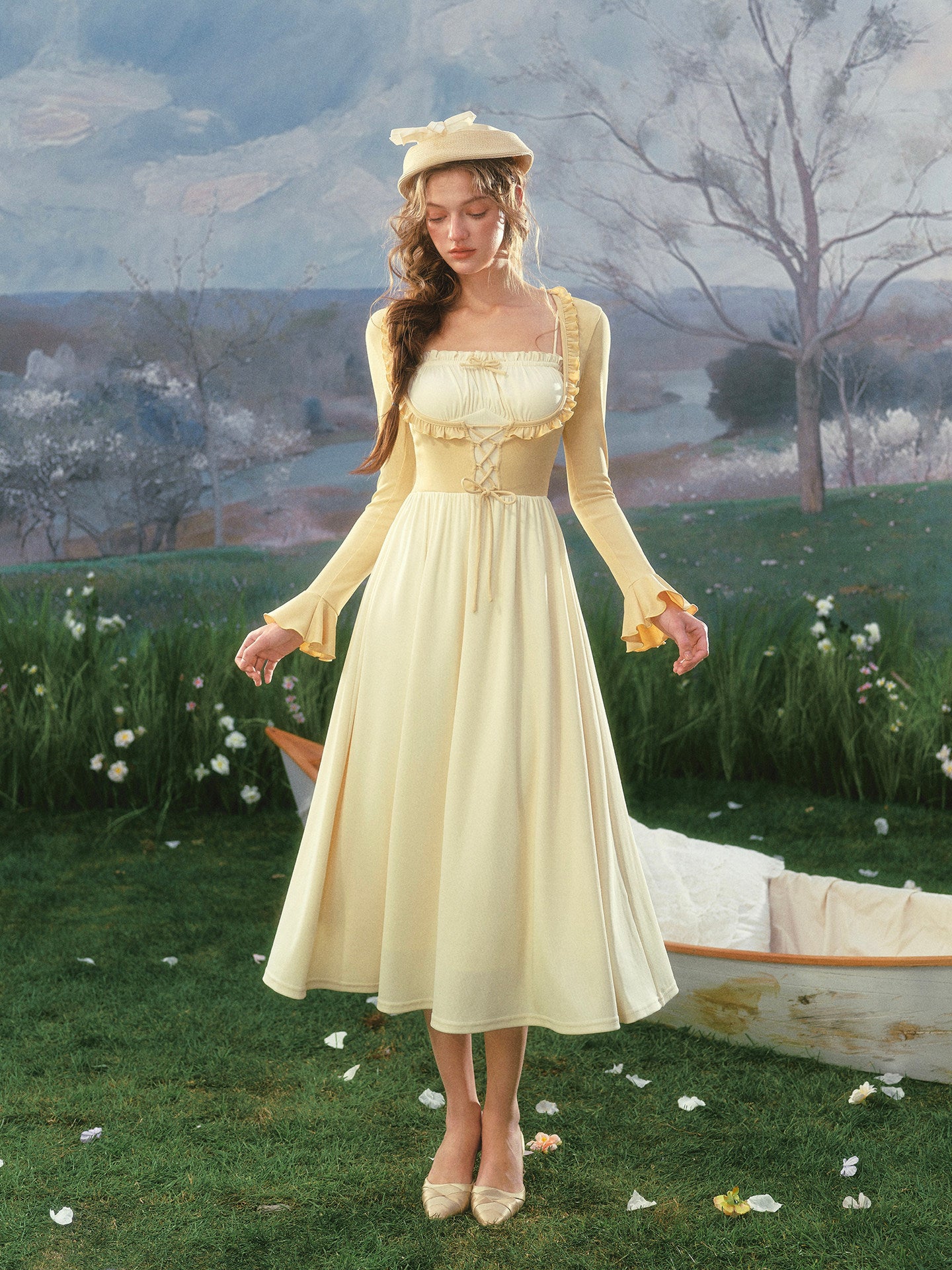 Soft sunshine in dress form, meet ‘Mademoiselle Buttercup’, our ode to countryside picnics and old-fashioned charm.
