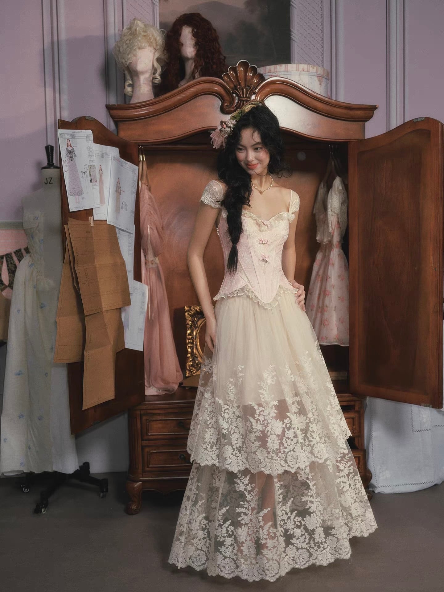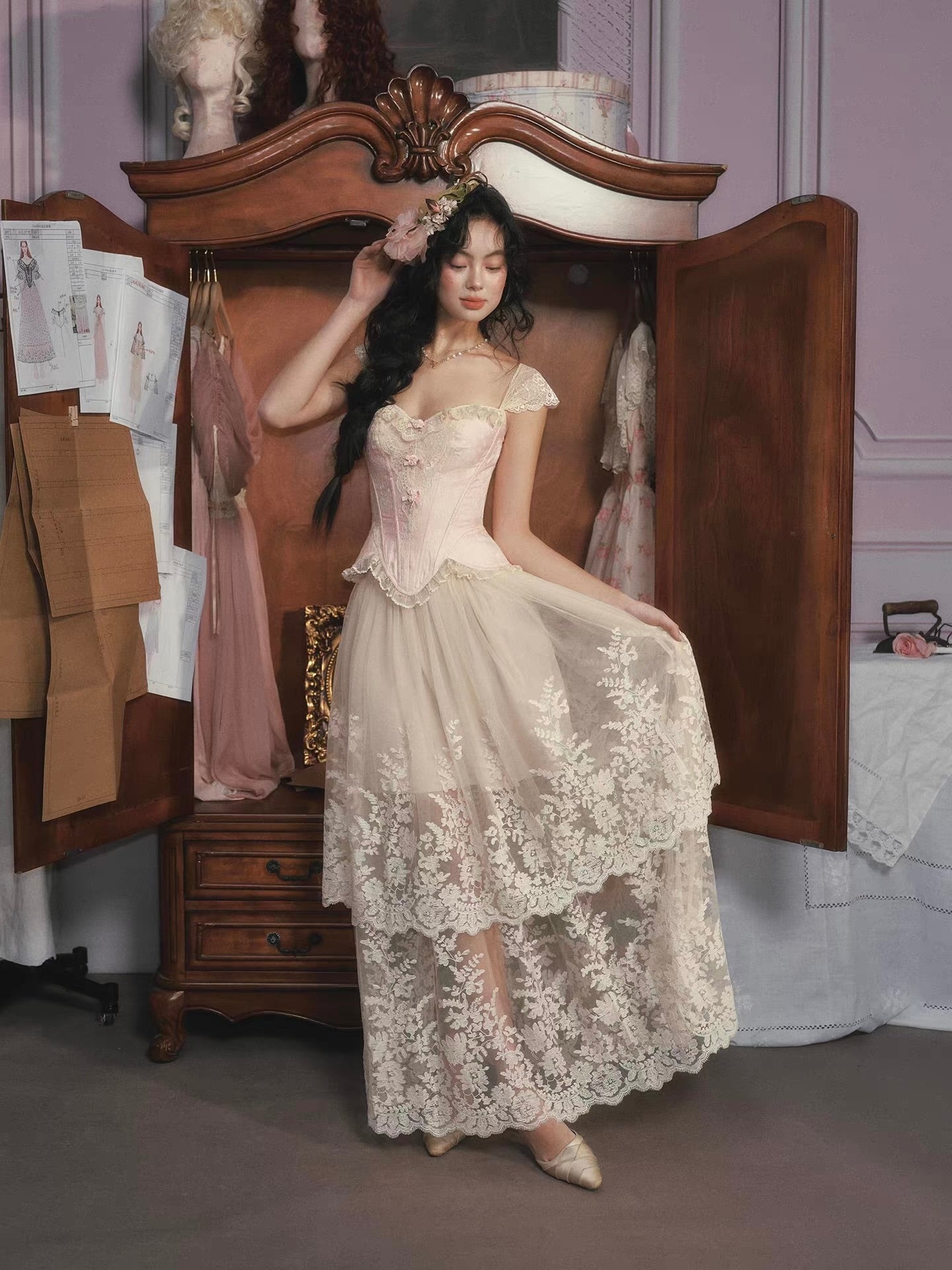 Style ‘Petite Rococo’ with our ‘Moonlight Waltz’ skirt for a look that feels straight out of a rococo painting, dreamy, feminine, and endlessly enchanting.