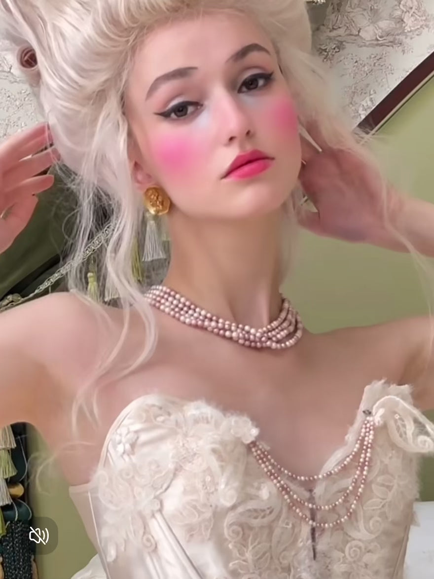 Each lace applique was custom-dyed and hand-stitched with care, while the pearl wing brooch and hand-strung chains bring in that couture-level finish we’re known for.