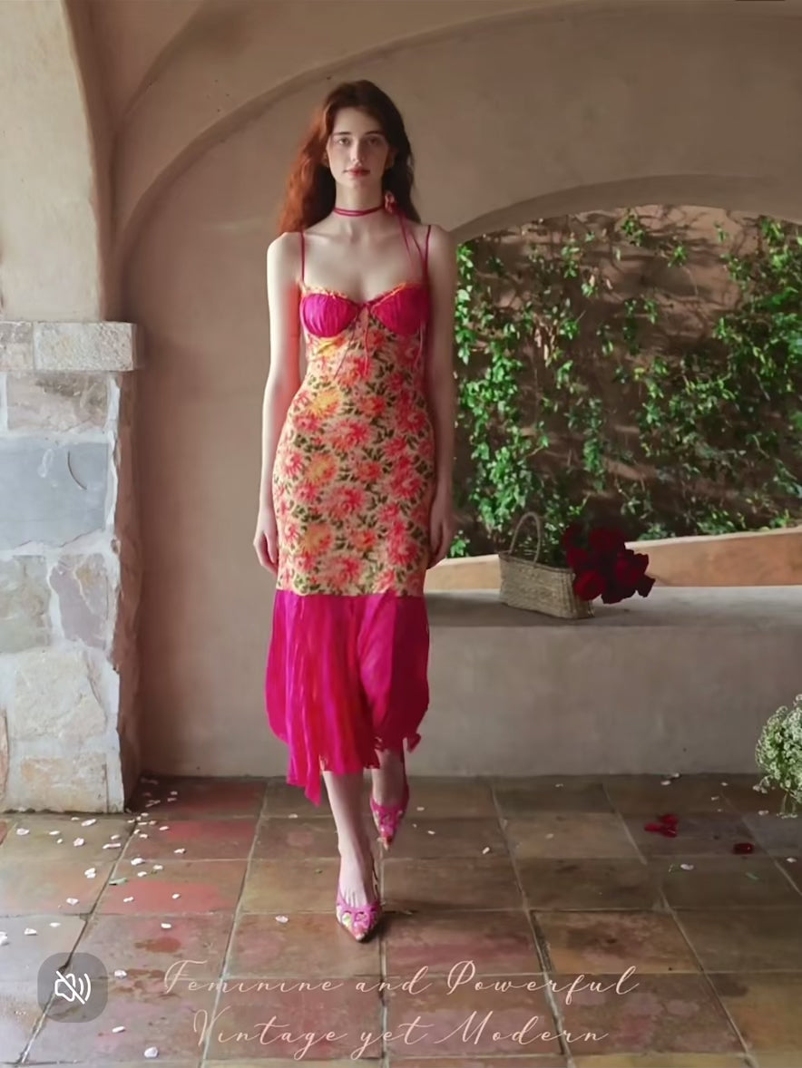 A sweet, eye-catching flower choker completes the look, adding a charming detail that elevates the entire ensemble.
