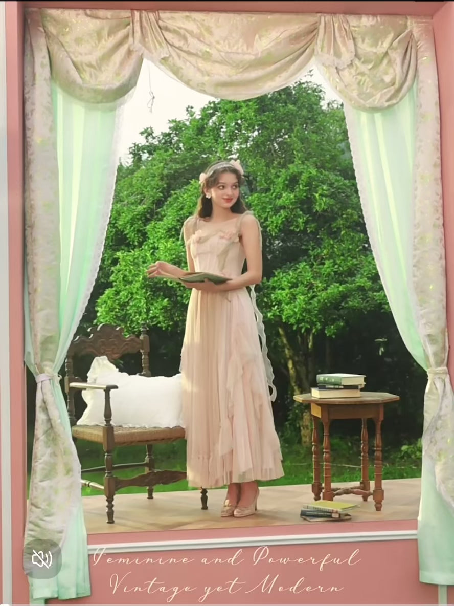 And there’s more – the neckline twists into a floral vine-inspired shape that’s soft, floaty, and totally enchanting. A voluminous three-layered skirt adds just the right amount of drama, trimmed at the waist with delicate tassel lace for that extra-special touch.
