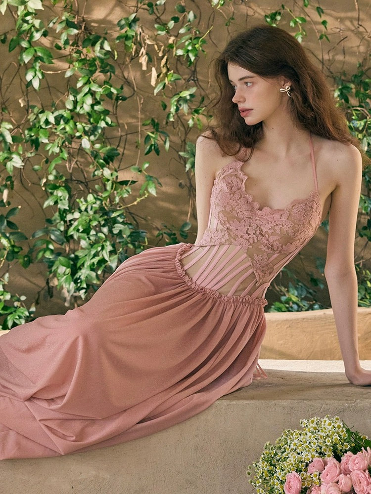 Crafted from soft, skin-tone mesh for an ultra-comfortable fit, the bodice is both breathable and chic, while the luxurious silky knit skirt drapes beautifully for that perfect vertical flow.