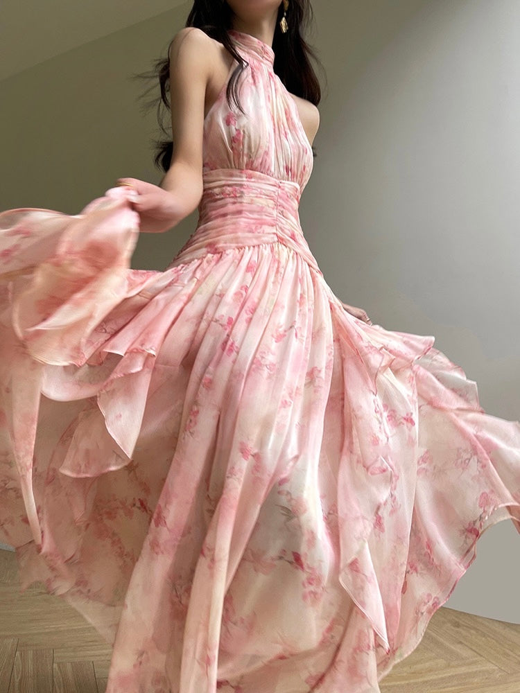 The begonia flowers are in full bloom, with trees adorned in blossoms that capture the essence of an early summer breeze. This dress is crafted from a soft, light imitation silk chiffon yarn, giving it a delicate, airy texture. Its graceful design evokes a gentle, ethereal charm, with a dreamy, almost fairy-like quality that feels as light as a whisper.