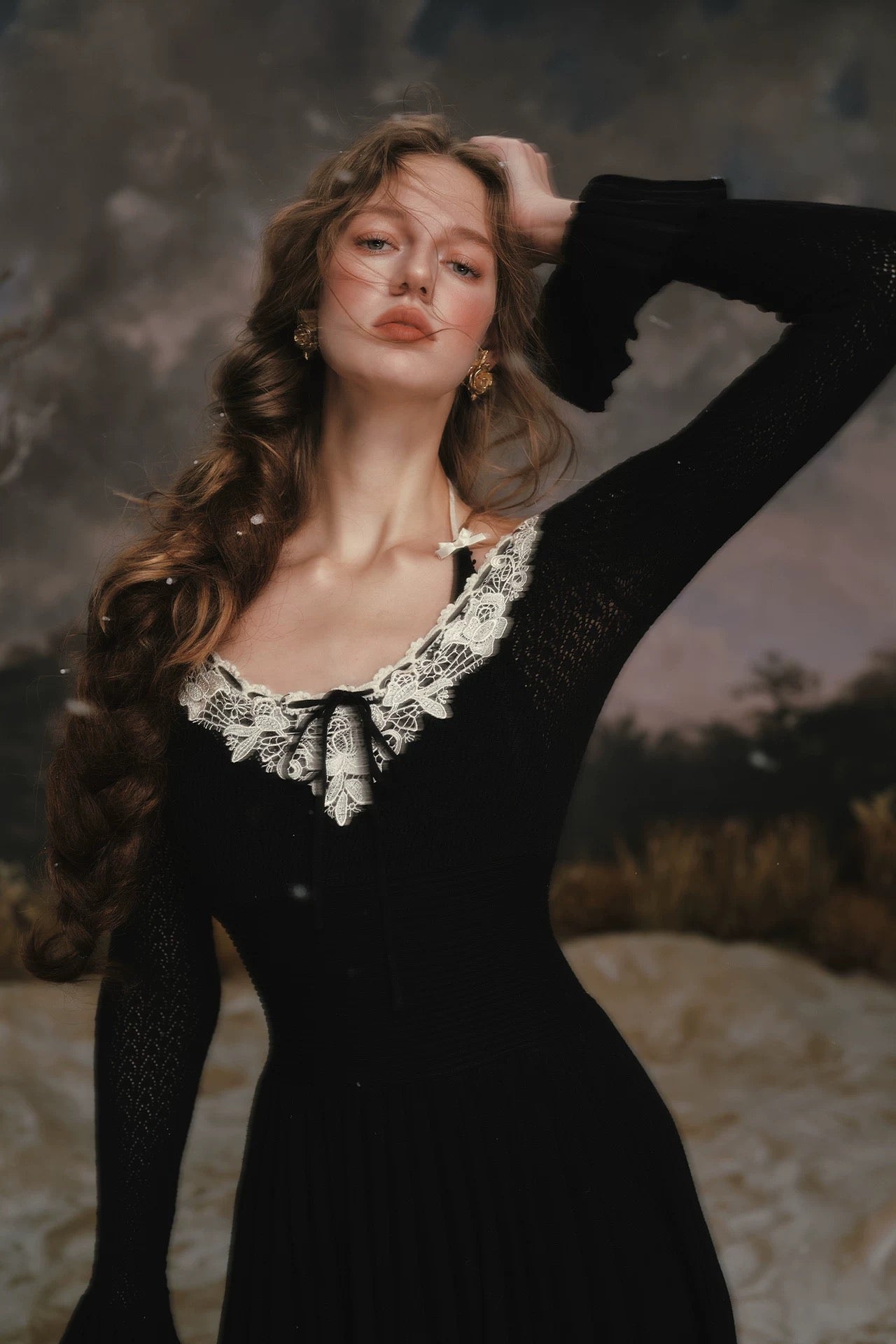 The halter-style neckline adds a layered, modern touch to the faux two-piece design, while delicate lace appliqué at the collar brings in that vintage charm we can’t get enough of. Isn’t that blend of old and new just perfect?