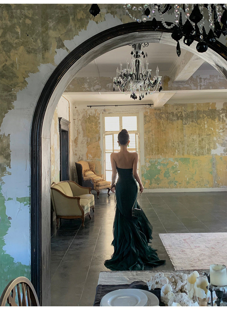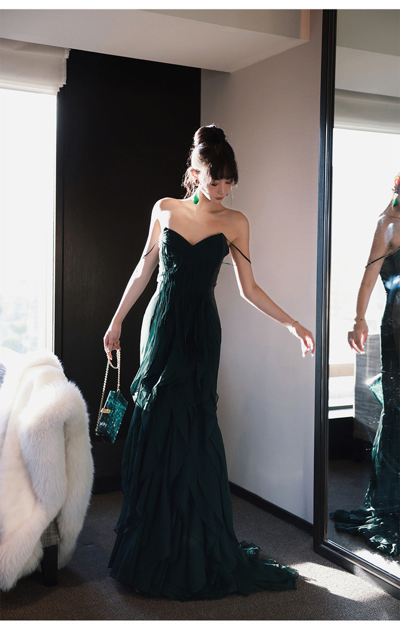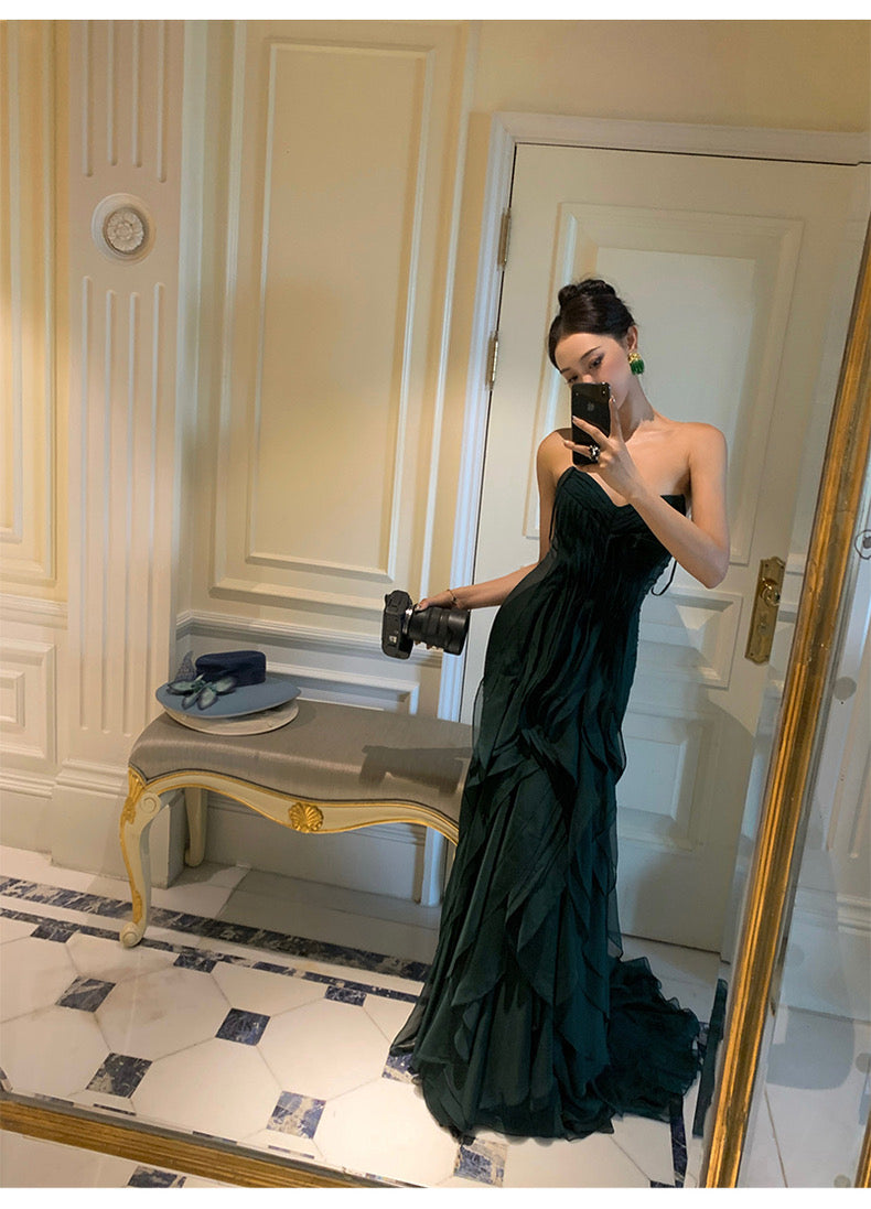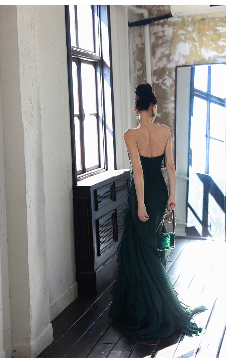 To enhance your comfort, we've added built-in padded cups and non-slip strips along the inner neckline, ensuring everything stays perfectly in place. The structured bodice features hidden boning for support, creating a stunning hourglass shape.