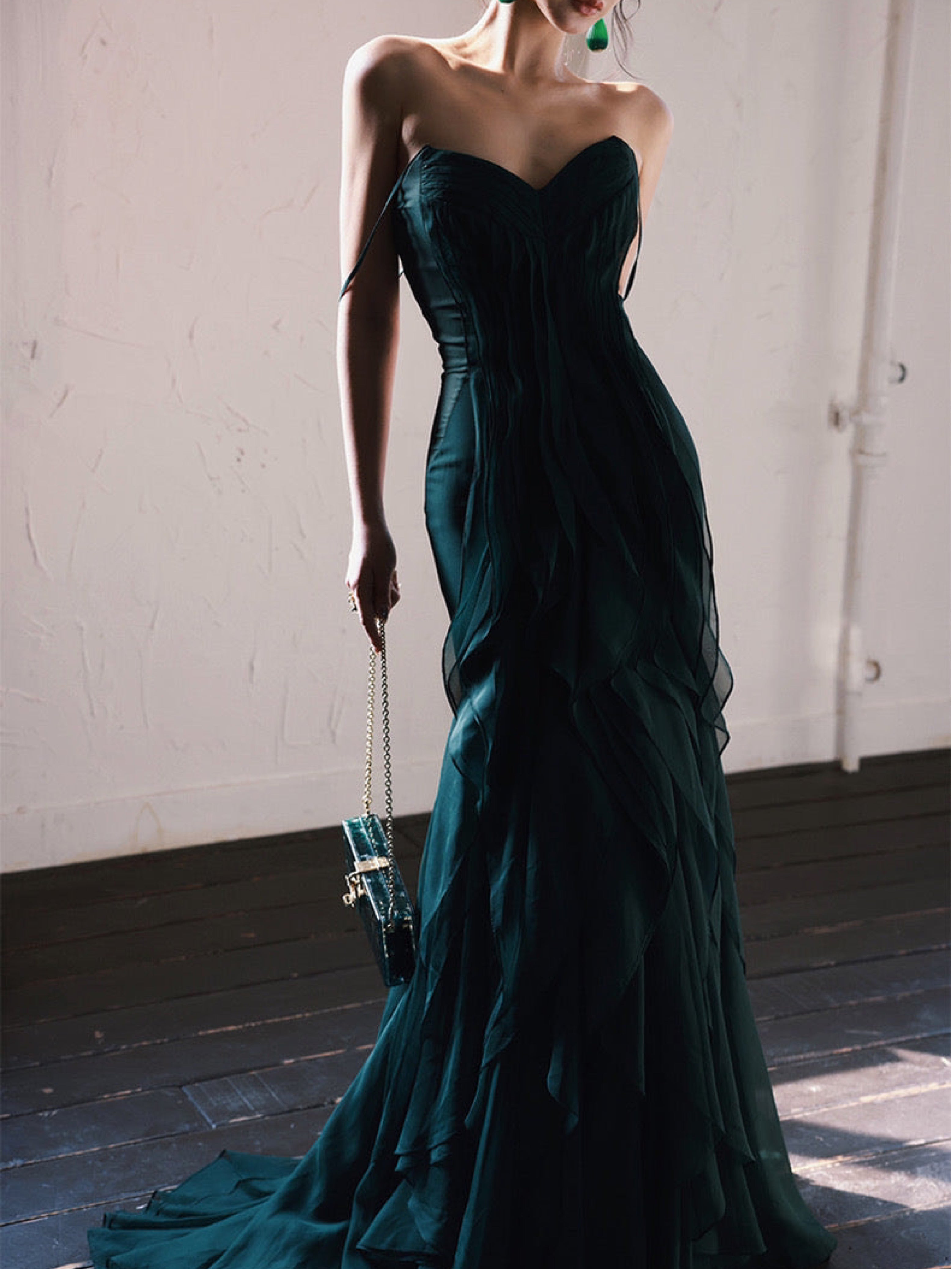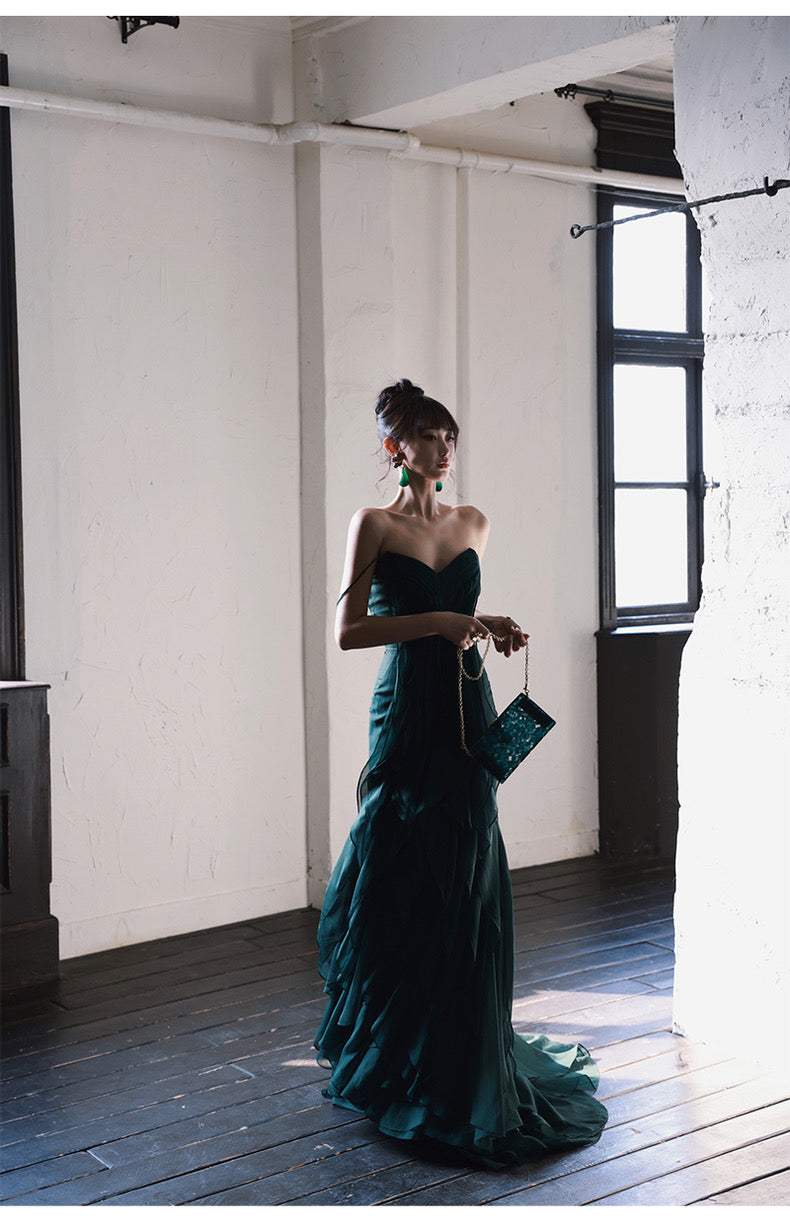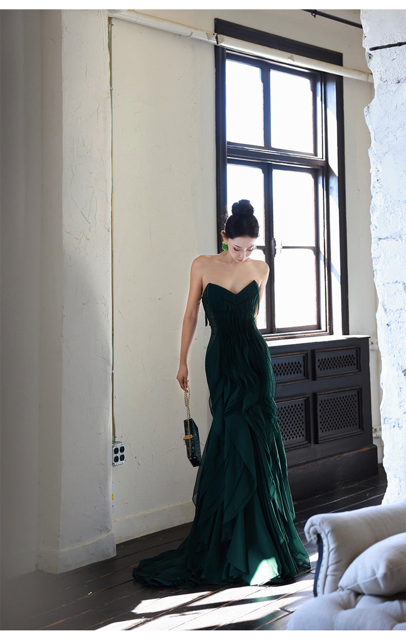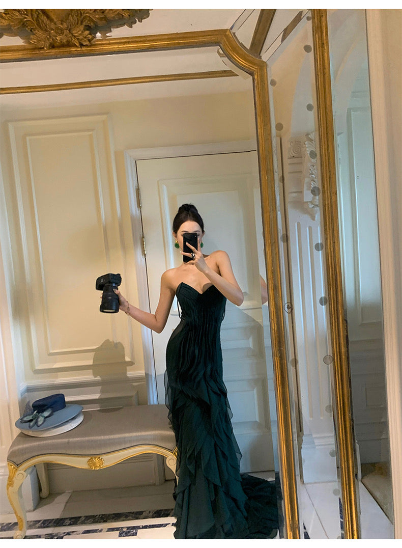 To enhance your comfort, we've added built-in padded cups and non-slip strips along the inner neckline, ensuring everything stays perfectly in place. The structured bodice features hidden boning for support, creating a stunning hourglass shape.