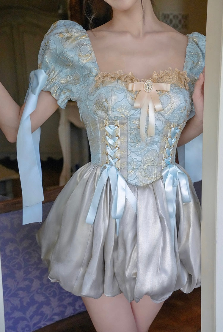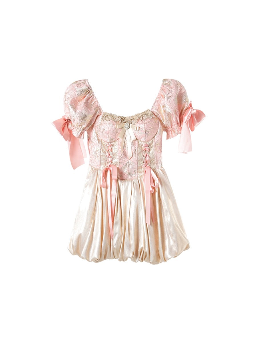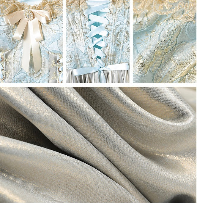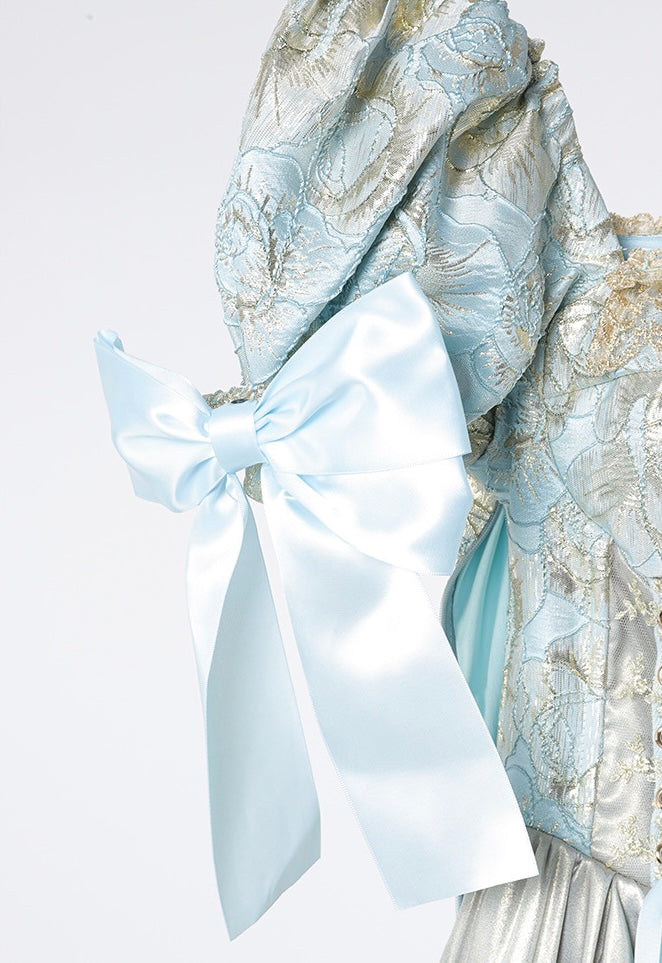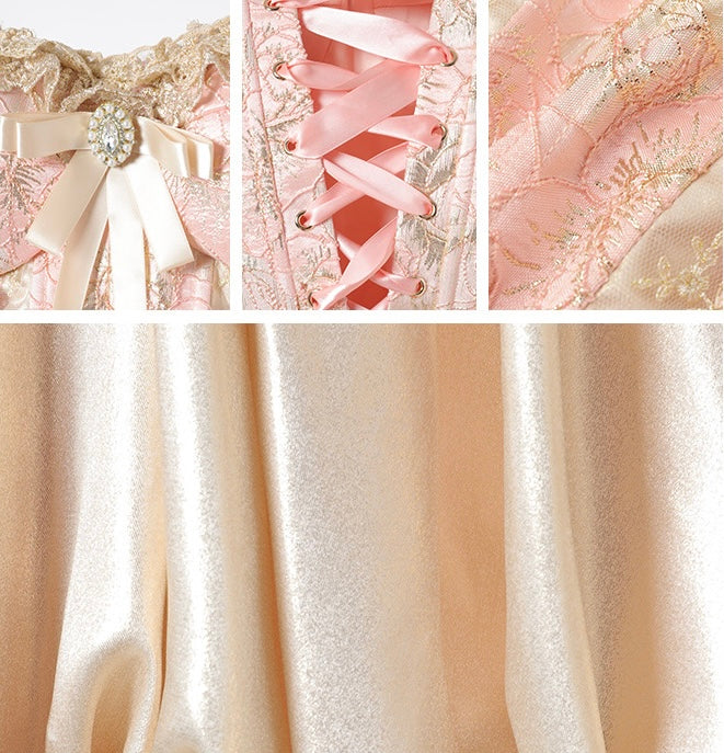 The Federica dress showcases a stunning upper body crafted from rose gold jacquard fabric, featuring intricate weaving techniques that deliver a rich texture and a three-dimensional effect. This structured fabric offers a beautifully sculpted silhouette that exudes sophistication.