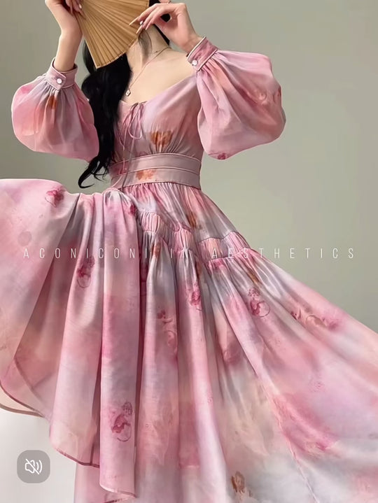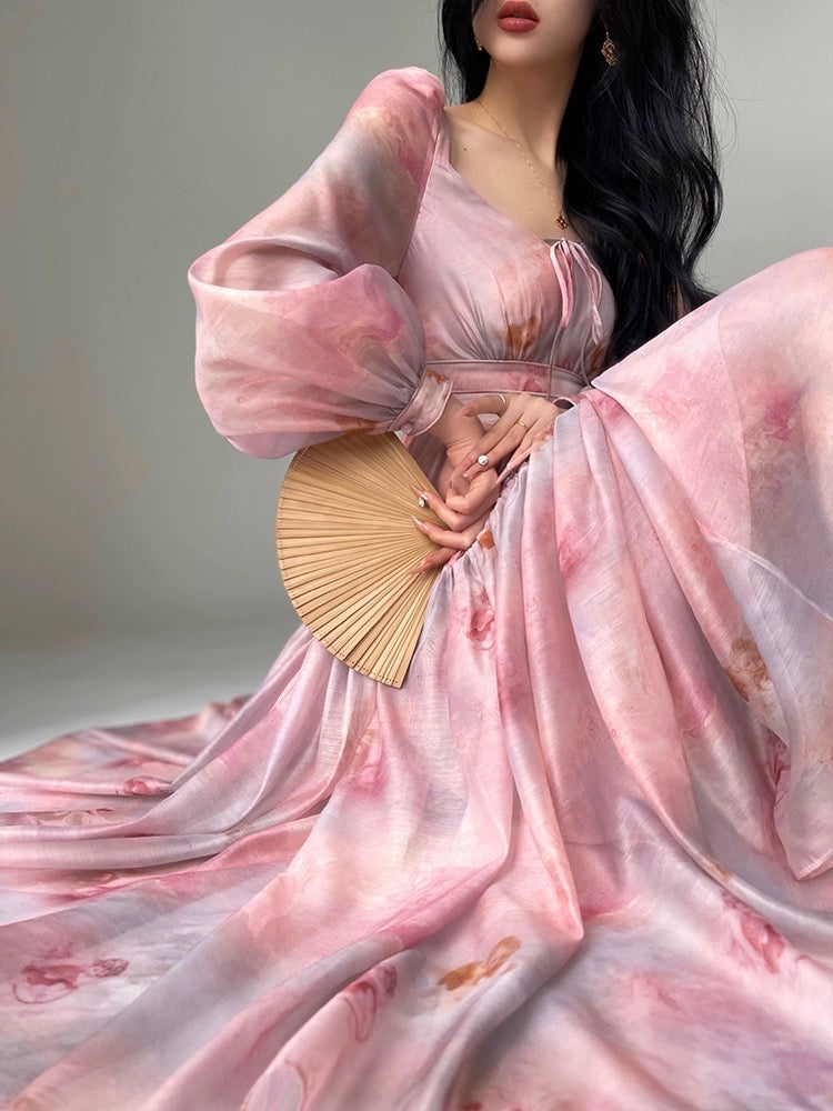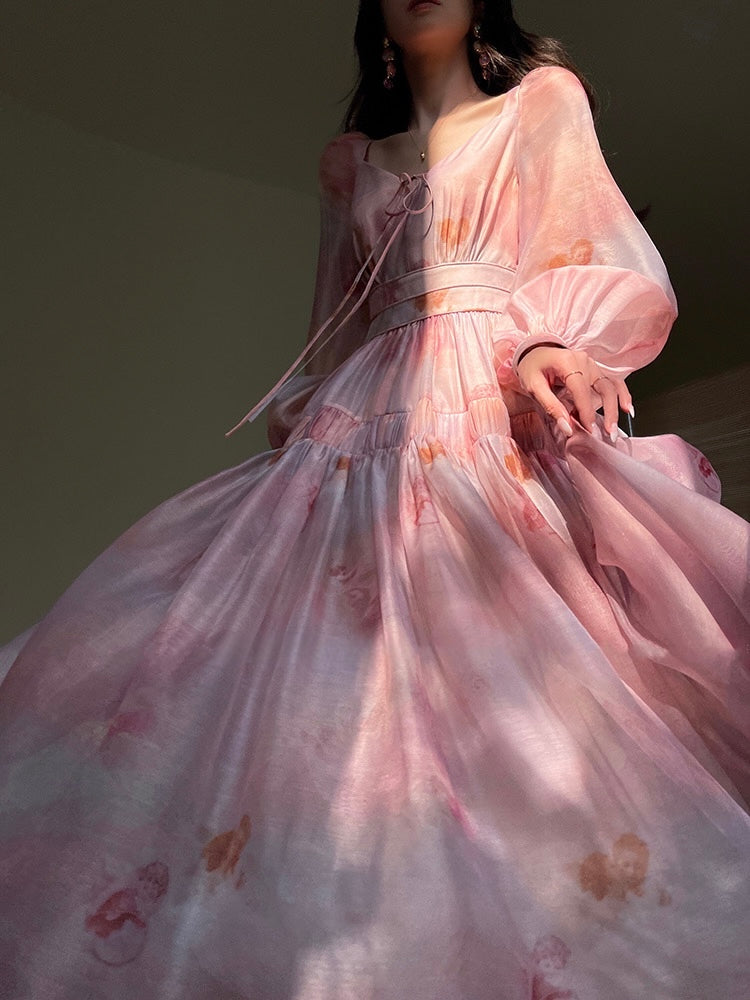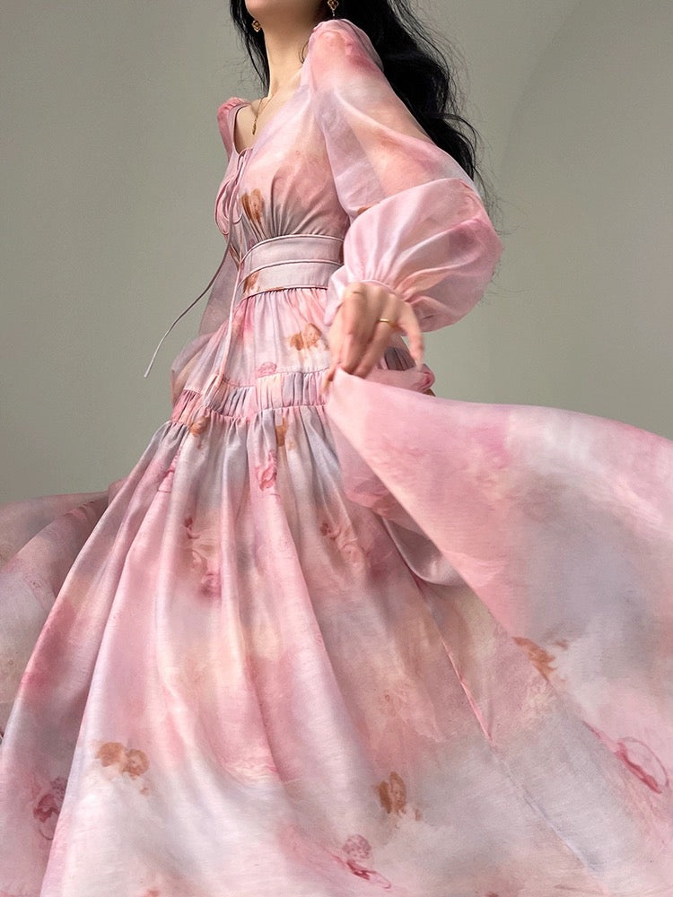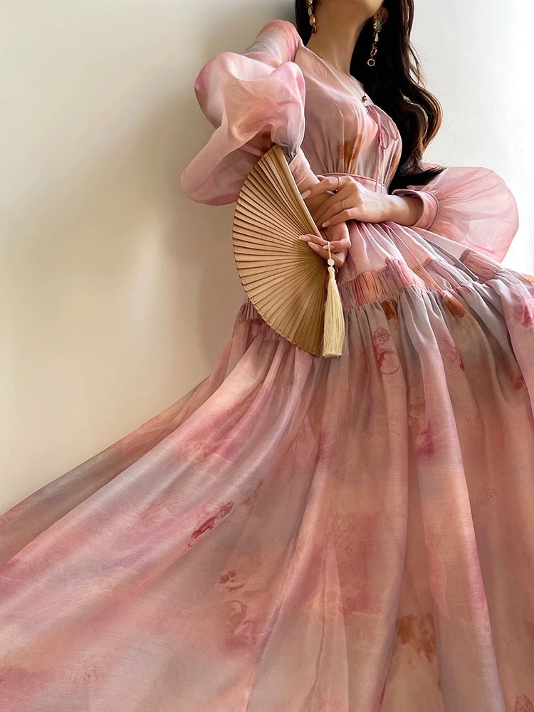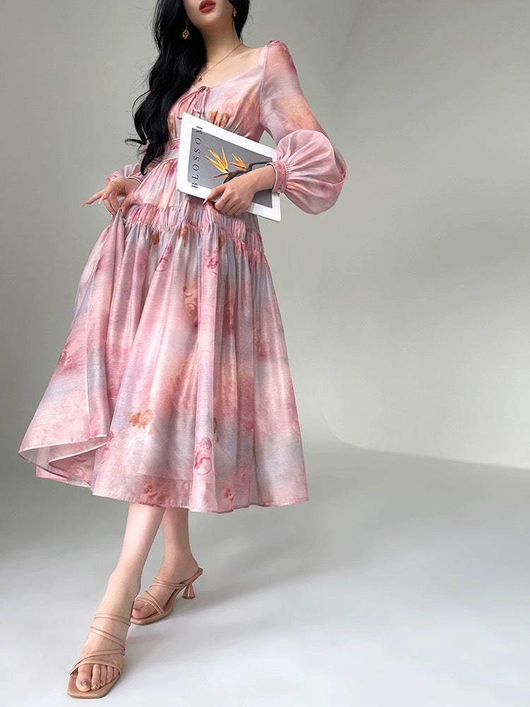 The Mercy dress captures the soft, drifting shadows of flowers, creating a dreamy outline that feels like stepping into a fantasy. Crafted from carefully chosen imitation Tencel fabric, 'Mercy’ boasts a delicate smooth texture and a subtle pearl-like sheen, while the powder mist print evokes an ethereal beauty that exudes lightness and elegance.
