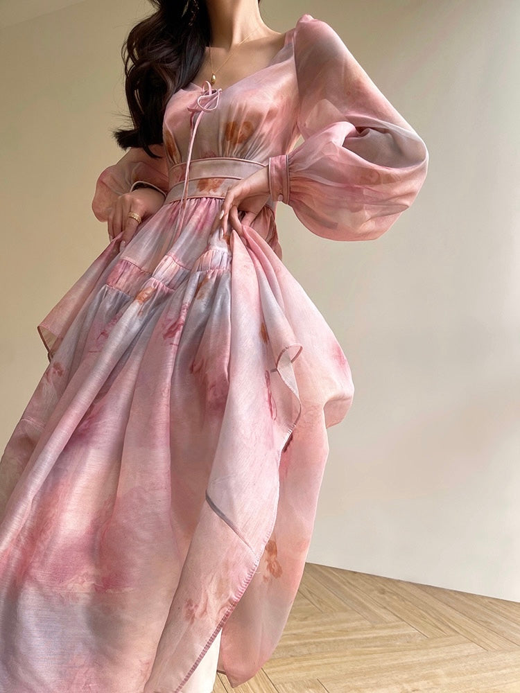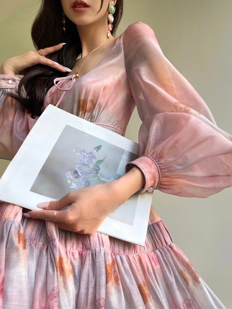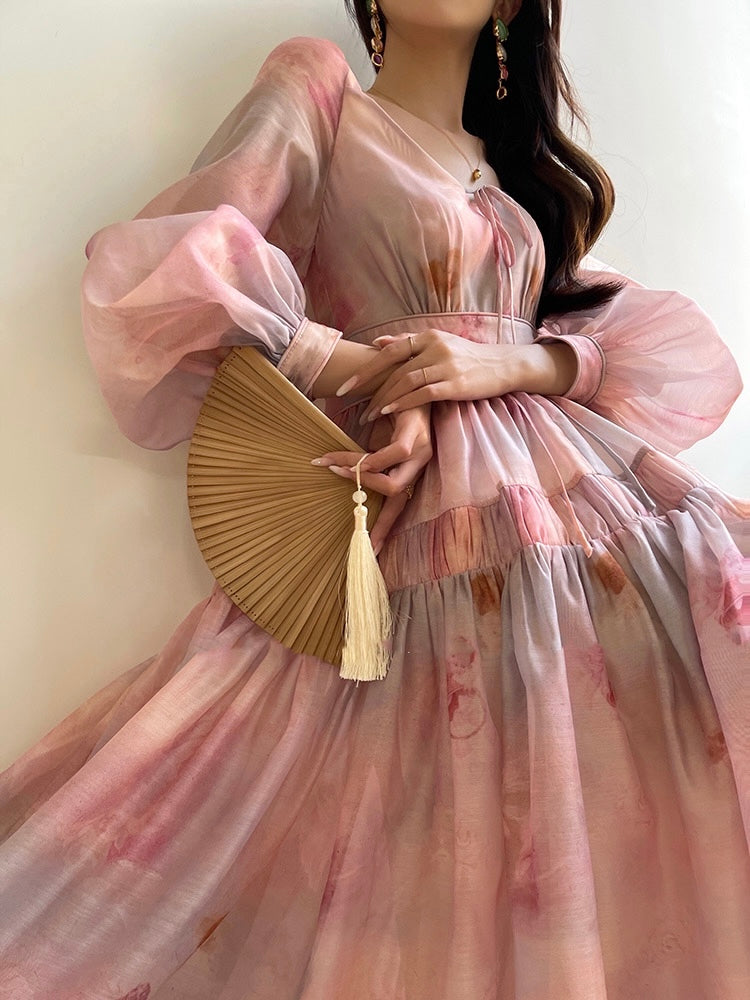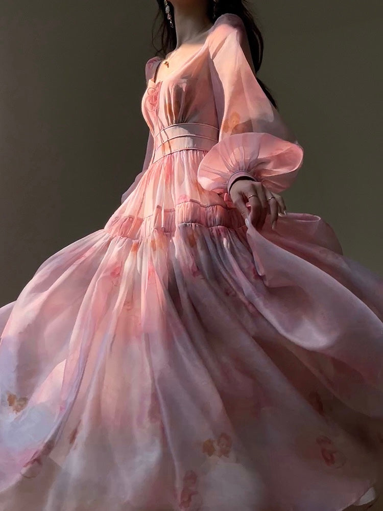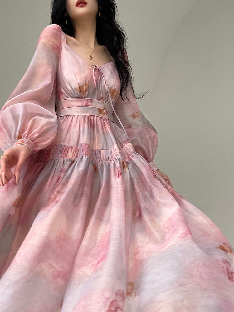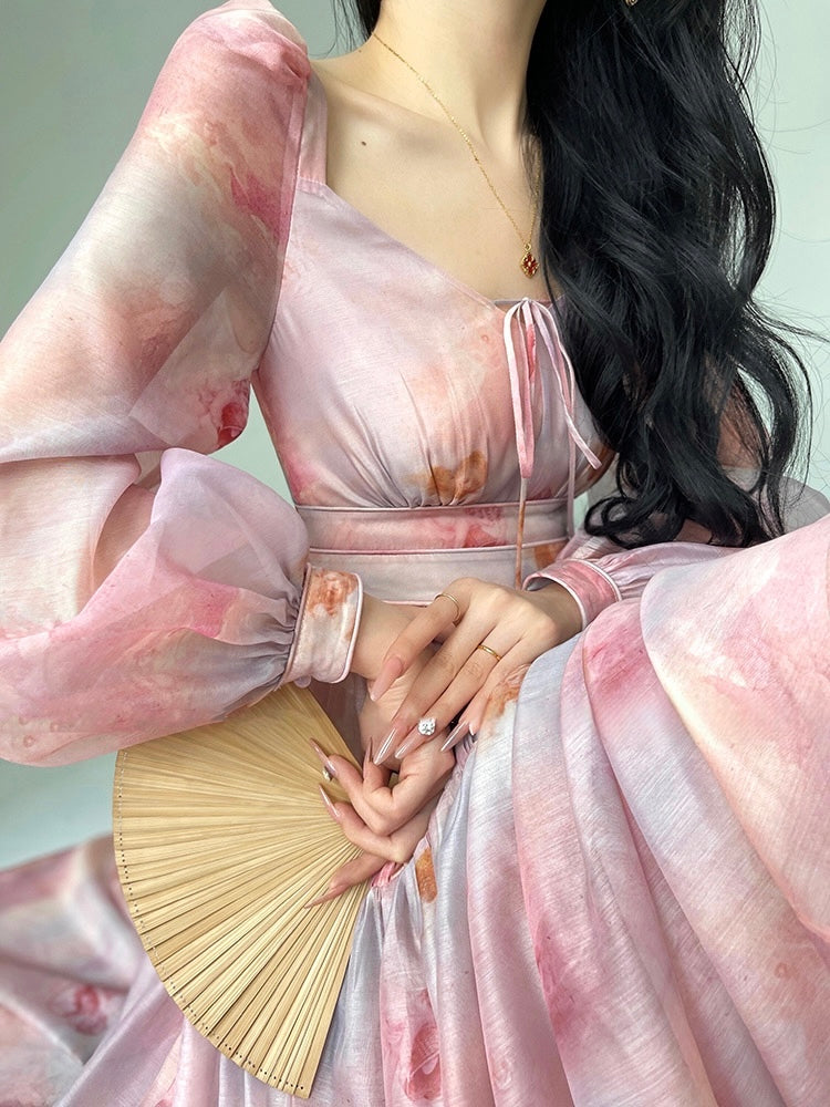 The Mercy dress captures the soft, drifting shadows of flowers, creating a dreamy outline that feels like stepping into a fantasy. Crafted from carefully chosen imitation Tencel fabric, 'Mercy’ boasts a delicate smooth texture and a subtle pearl-like sheen, while the powder mist print evokes an ethereal beauty that exudes lightness and elegance.