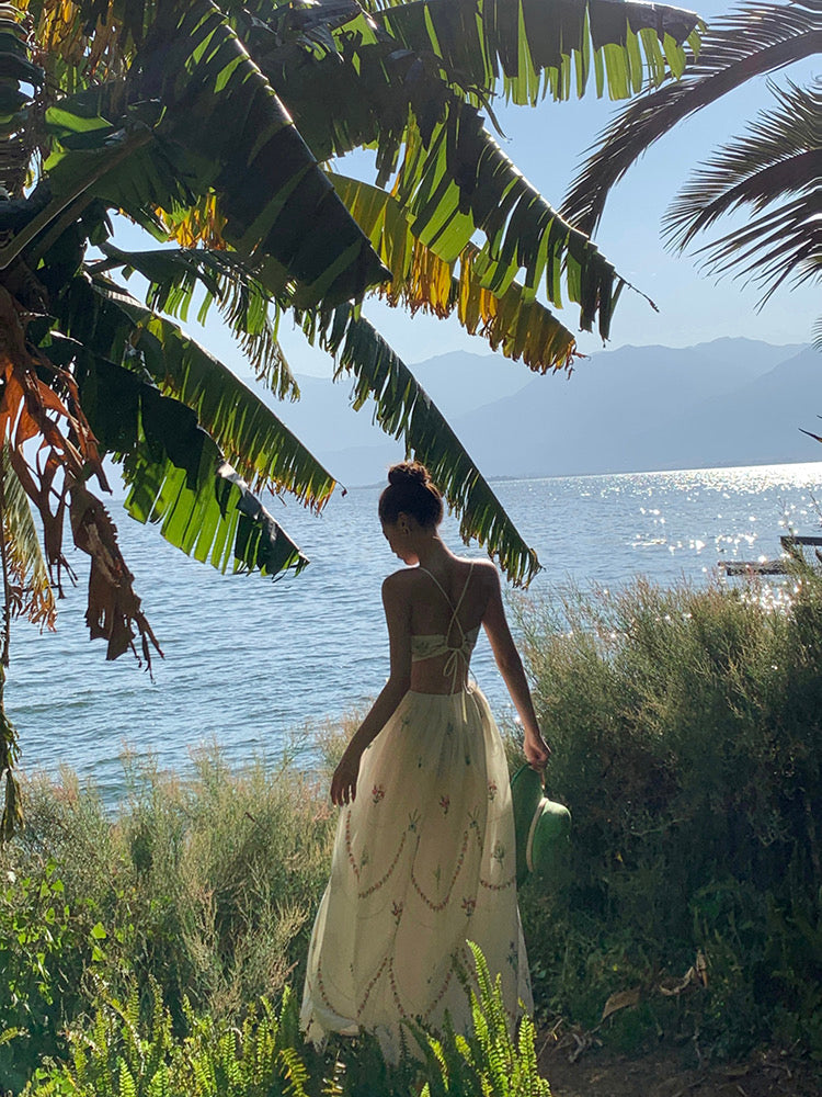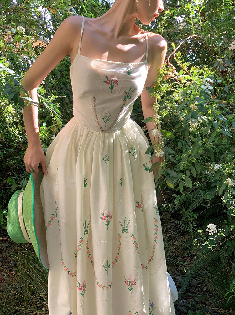 The charming Nini dress brings a touch of Southern French elegance to your wardrobe. With suspenders that beautifully highlight your shoulders and neck, the adjustable back design adds a subtle allure, showcasing your back gracefully. Using full-piece positioning technology, the skirt achieves a refined, three-dimensional look that sets it apart from ordinary embroidered styles.