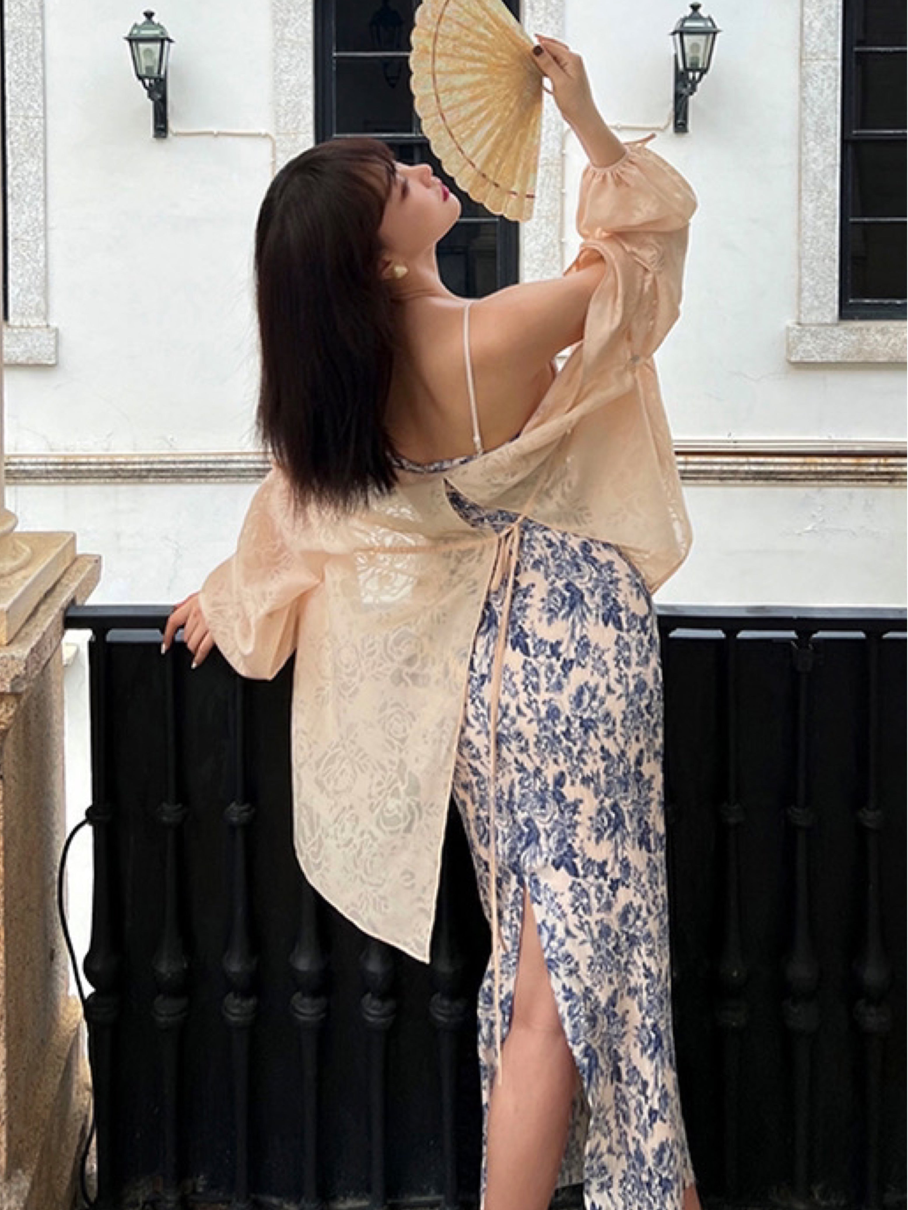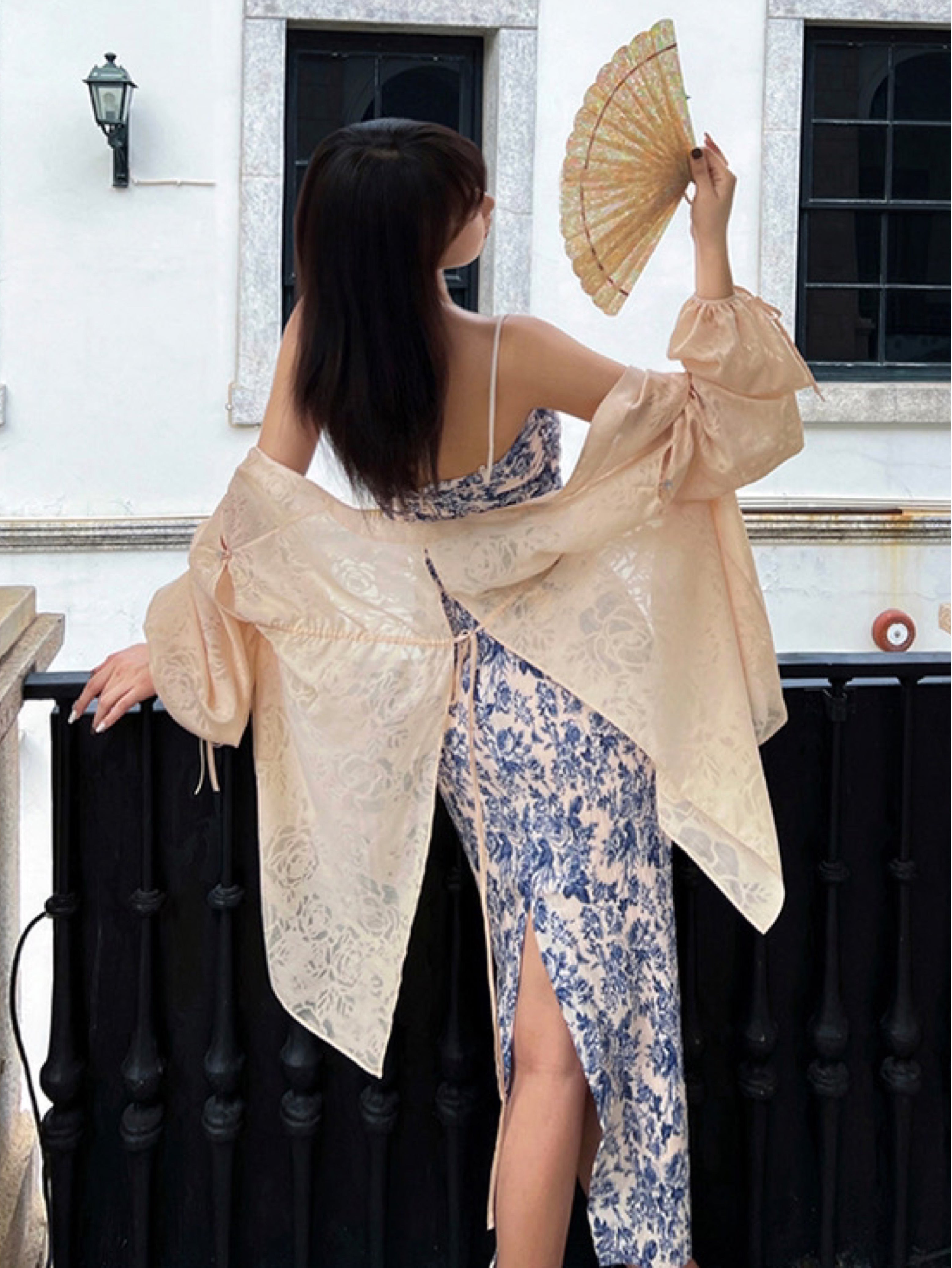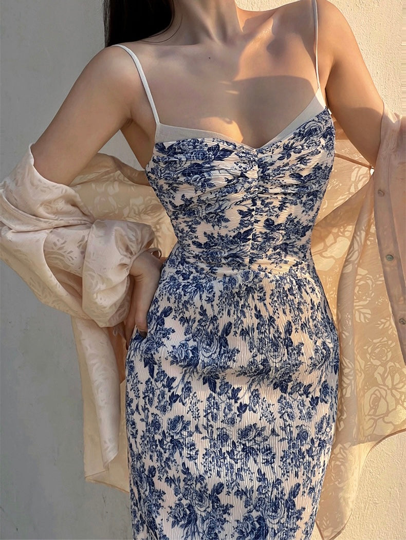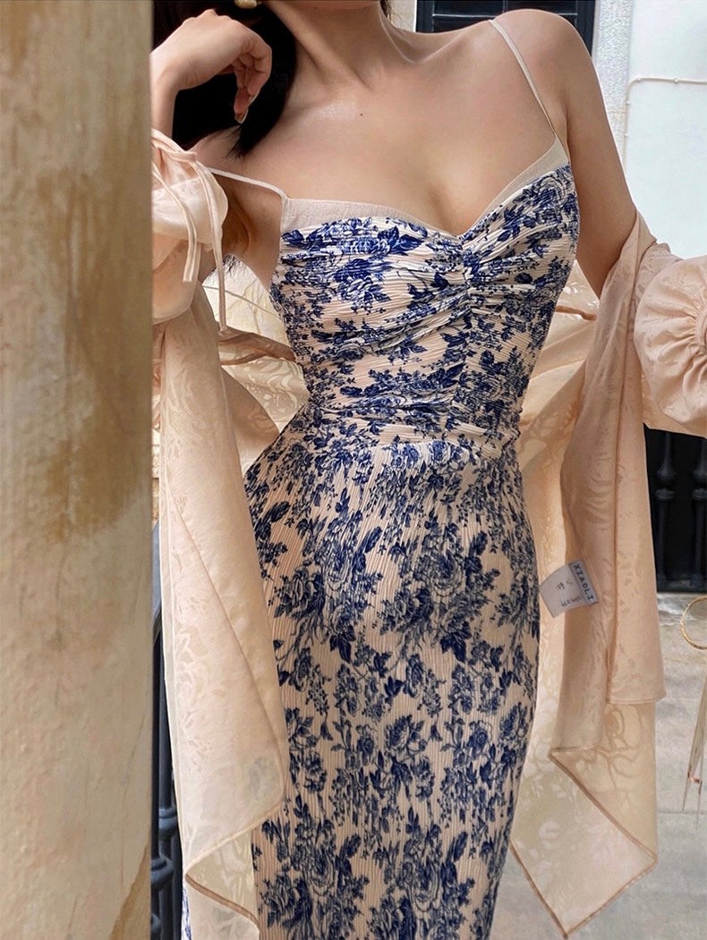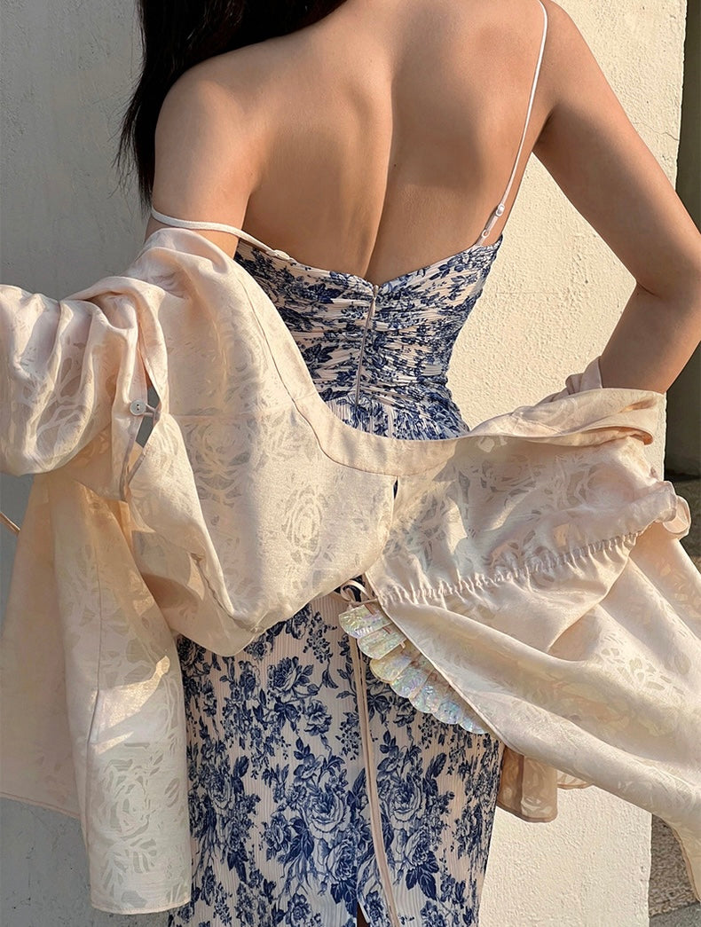 The Ronaldette dress beautifully fuses traditional elegance with modern flair. Its vibrant colors and intricate patterns flow gracefully across the fabric, evoking the serene charm of a Chinese pavilion steeped in romance. Crafted from a custom material, we proudly utilize a dual-process technique of printing and pleating, inspired by the timeless beauty of blue-and-white porcelain.
