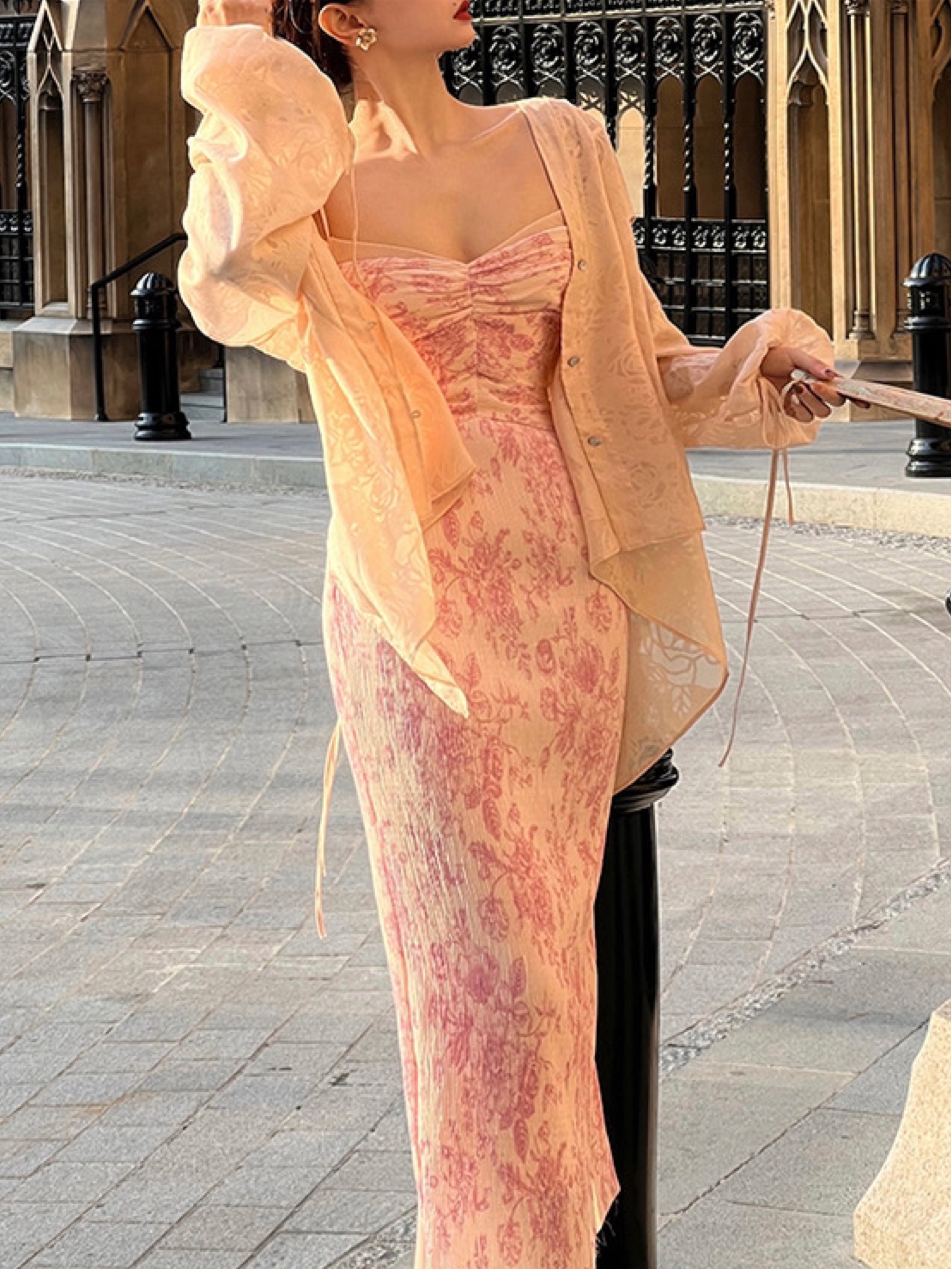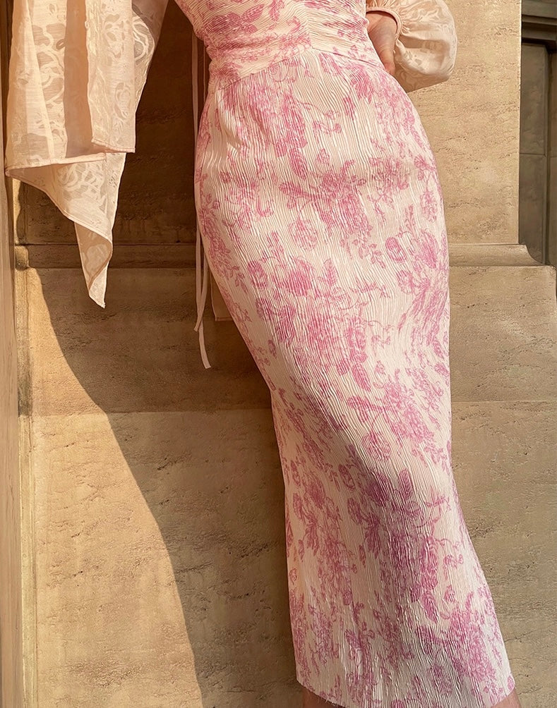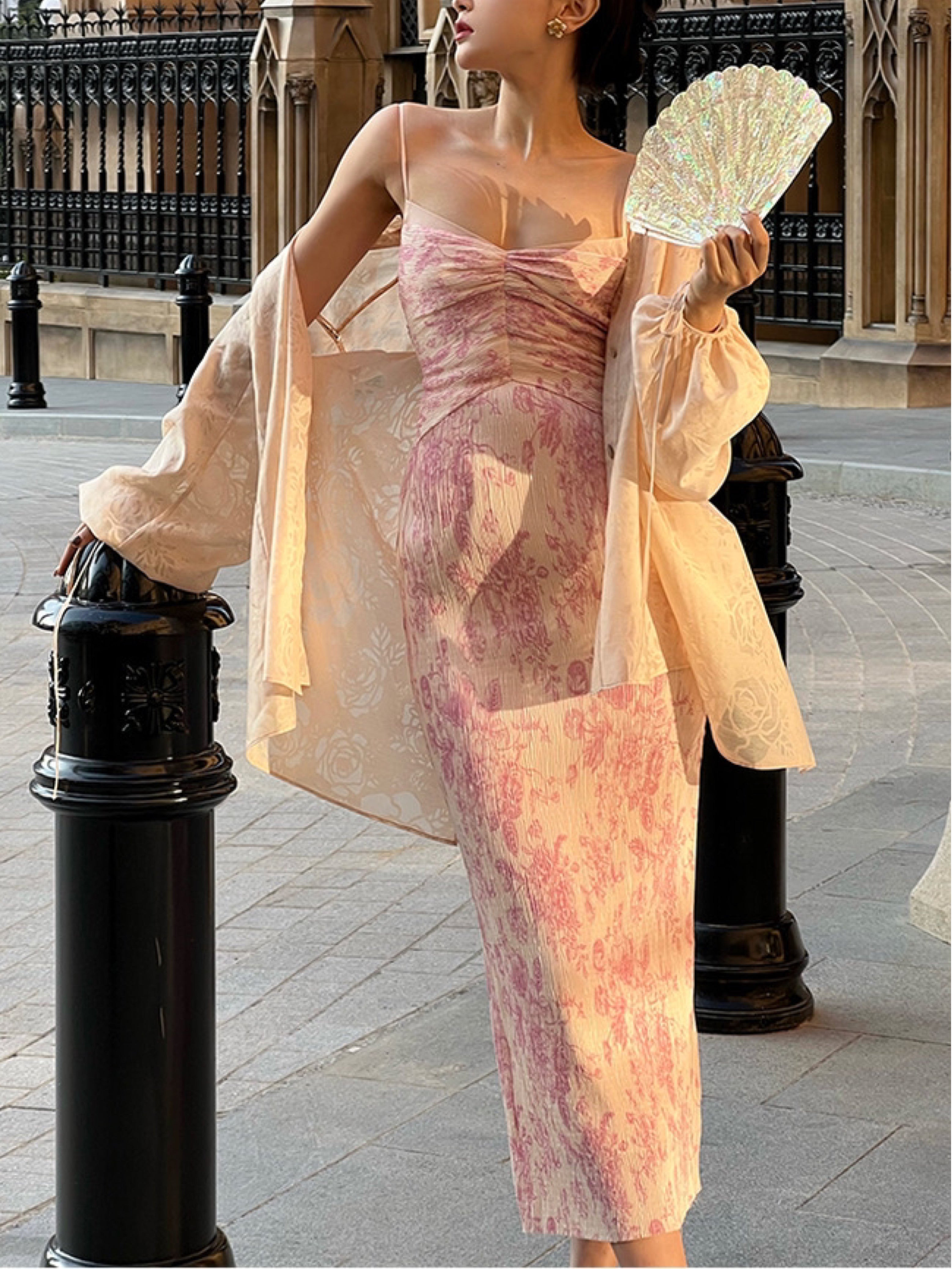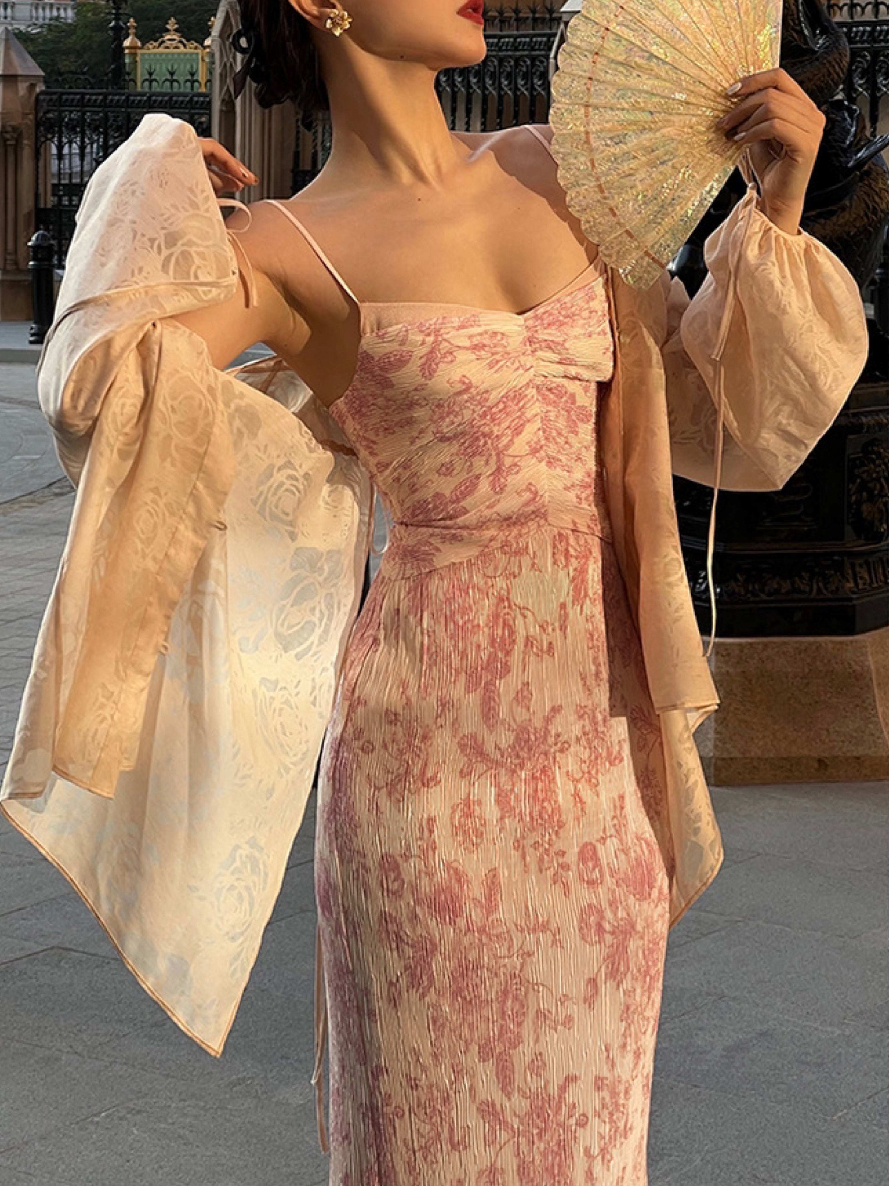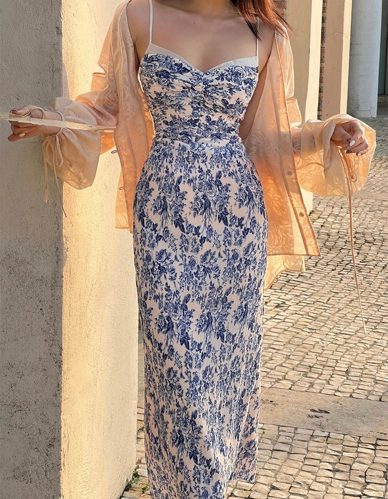 The Ronaldette dress beautifully fuses traditional elegance with modern flair. Its vibrant colors and intricate patterns flow gracefully across the fabric, evoking the serene charm of a Chinese pavilion steeped in romance. Crafted from a custom material, we proudly utilize a dual-process technique of printing and pleating, inspired by the timeless beauty of blue-and-white porcelain.
