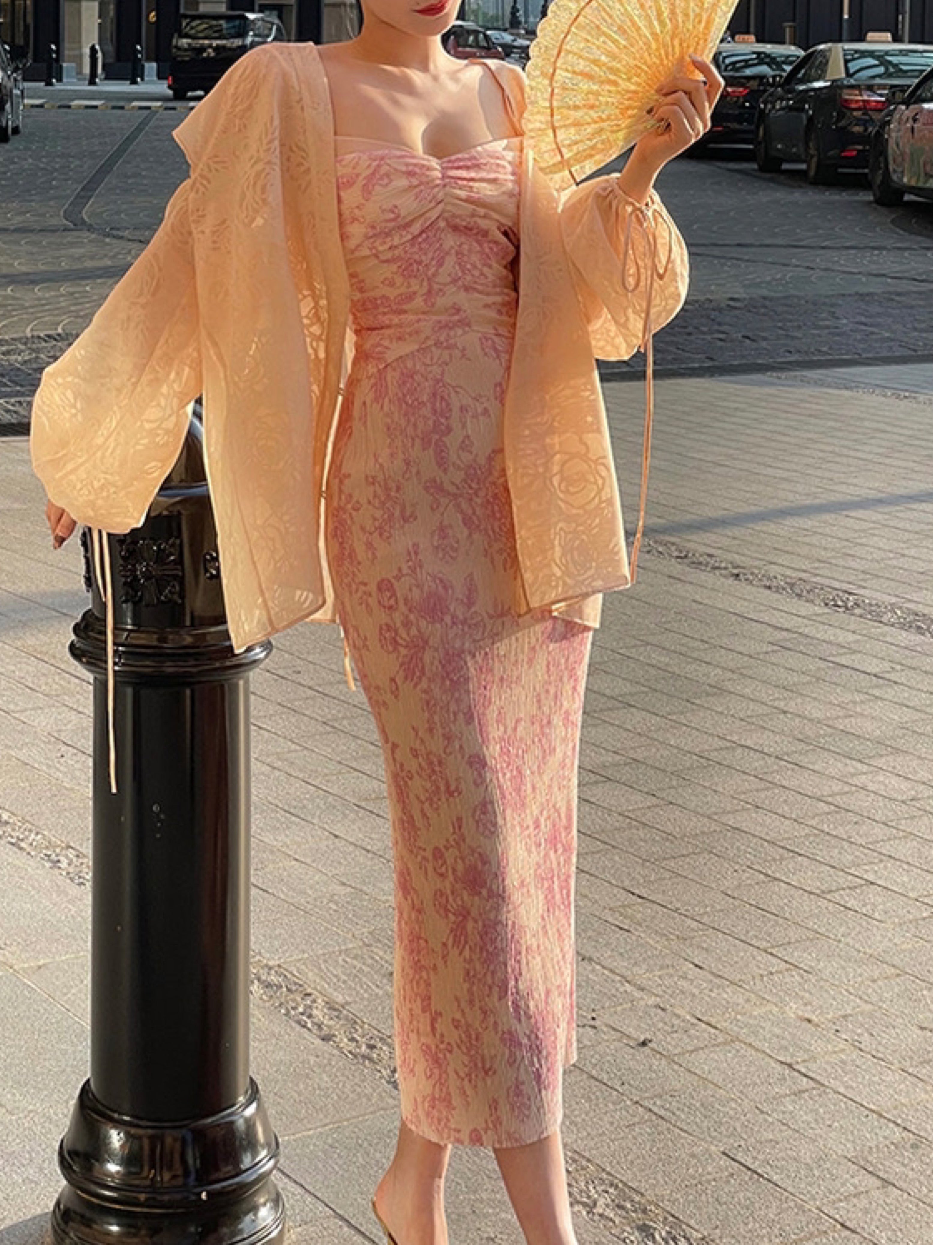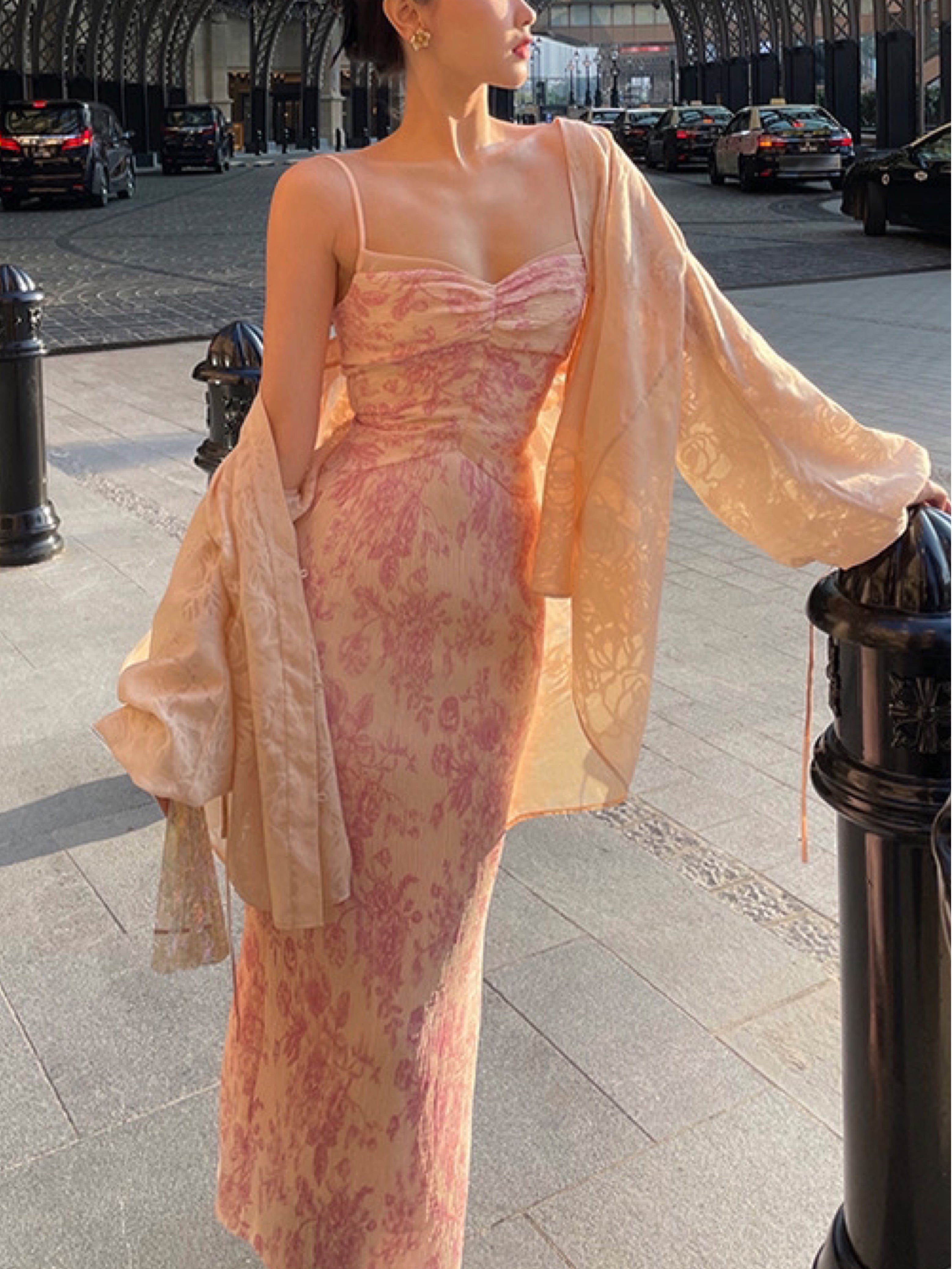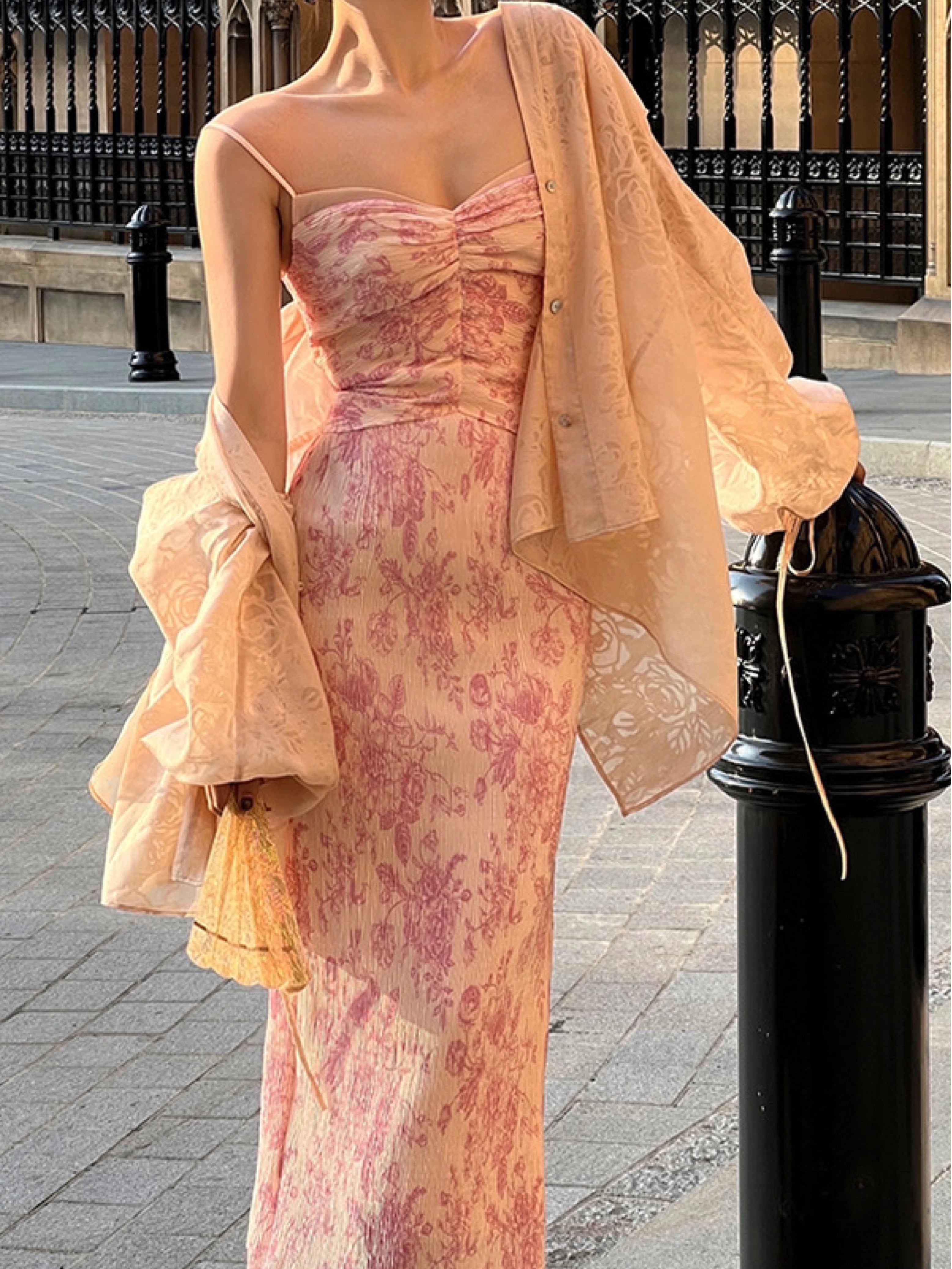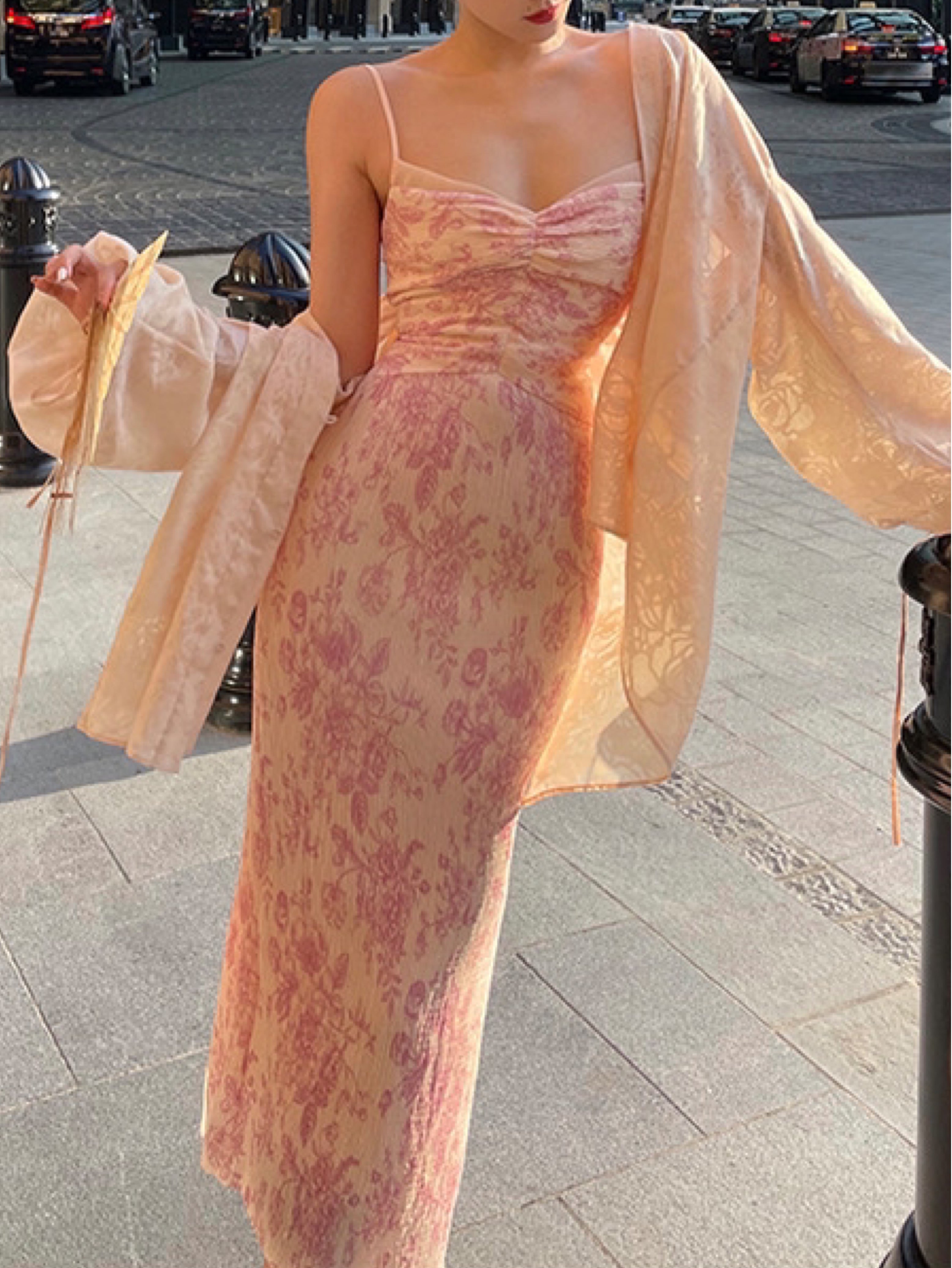The Ronaldette dress beautifully fuses traditional elegance with modern flair. Its vibrant colors and intricate patterns flow gracefully across the fabric, evoking the serene charm of a Chinese pavilion steeped in romance. Crafted from a custom material, we proudly utilize a dual-process technique of printing and pleating, inspired by the timeless beauty of blue-and-white porcelain.