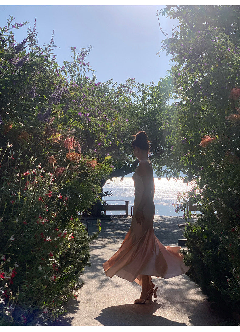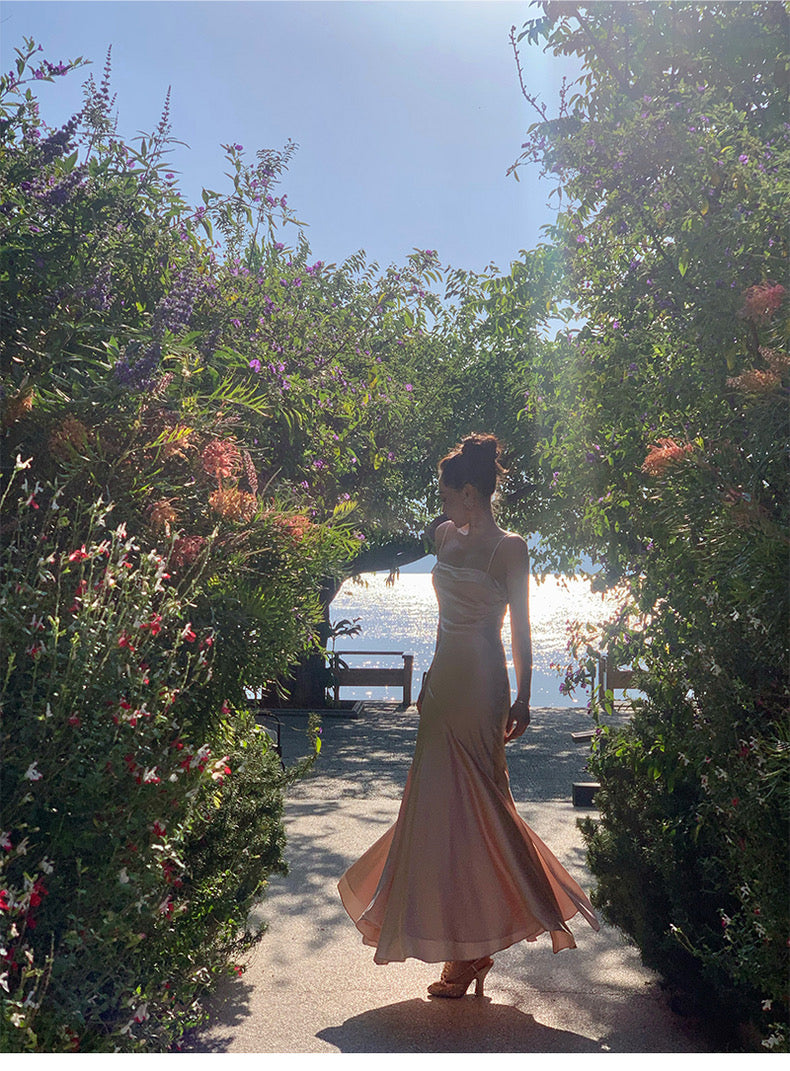 Cut entirely on the bias for that seamless, curve-skimming fit, Vitani feels weightless yet polished, with no puffiness or tension—just a sleek, second-skin fit that move with you. Twelve symmetrical seams contour the body, enhancing the silk’s light-and-shadow play for a sculptural effect.