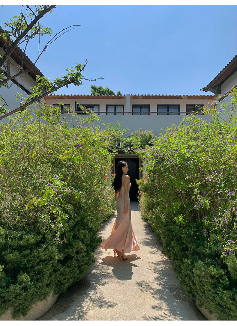 Available in two luxe versions: the silk version is crafted in 19 momme stretch satin—slightly thicker, richer, more textured than 16 momme, and more luminous—softly elastic and quietly luxe? The polyester version? Light, smooth, and breathable, with a fluid drape and skin-like touch.