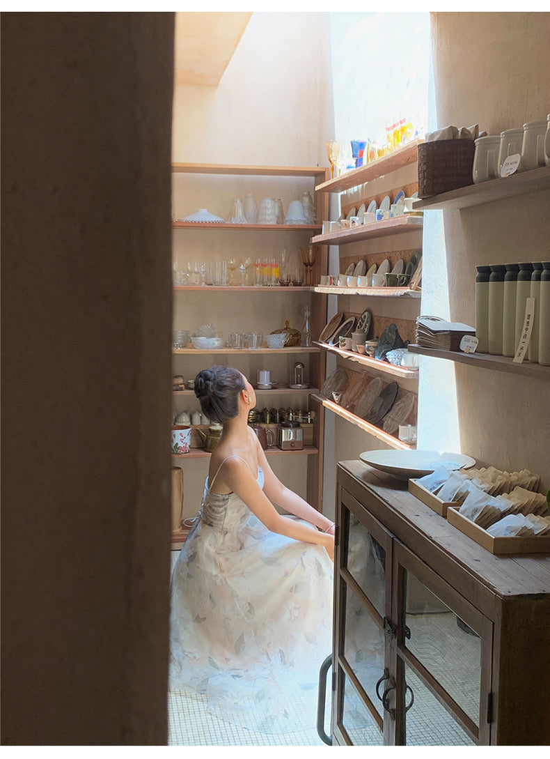 We gave it an A-line silhouette for that cinched-but-comfy charm, and layered airy floral fabric over delicate tulle for soft volume and movement. The exclusive jasmine print feels almost scented—light, dreamy, and quietly romantic. Each bloom seems to whisper a little story, don’t you think? Our team developed this floral exclusively and we loved it so much, it’s a ÀMonBelAmour signature.
