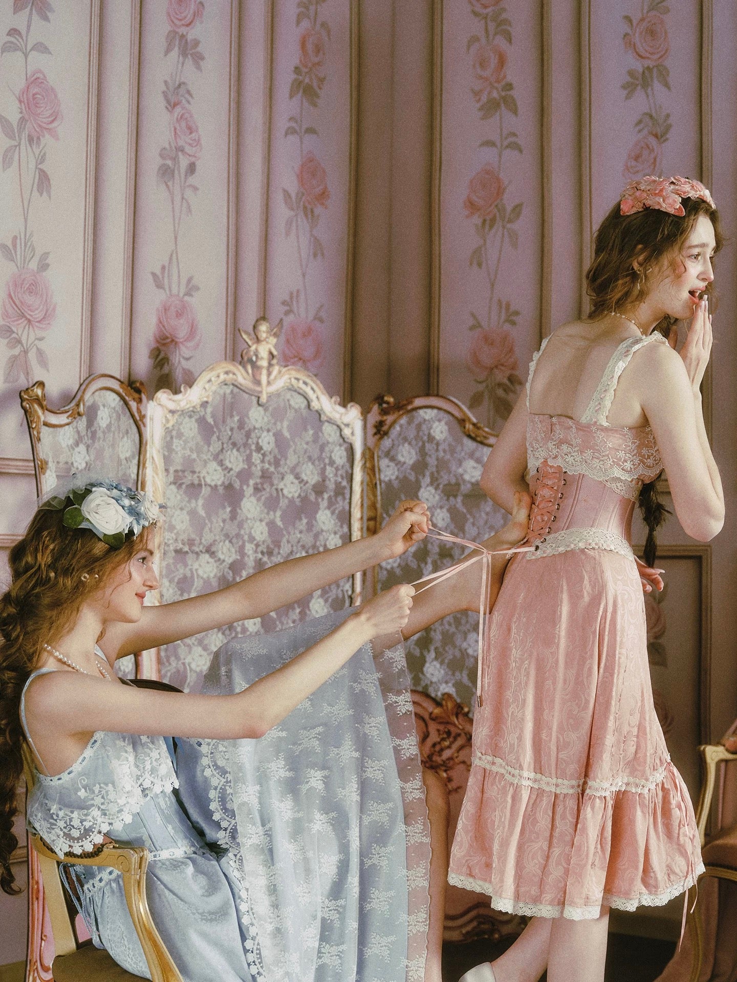 The set features a high density cotton lace dress paired with a classic corset style waist cincher, carefully designed to capture the elegance of vintage structure without sacrificing comfort. The original Victorian inspired corset used whalebone and metal wire for shaping, ours? Soft yet structured with modern resin boning that flatters the figure while letting you breathe and move with ease.